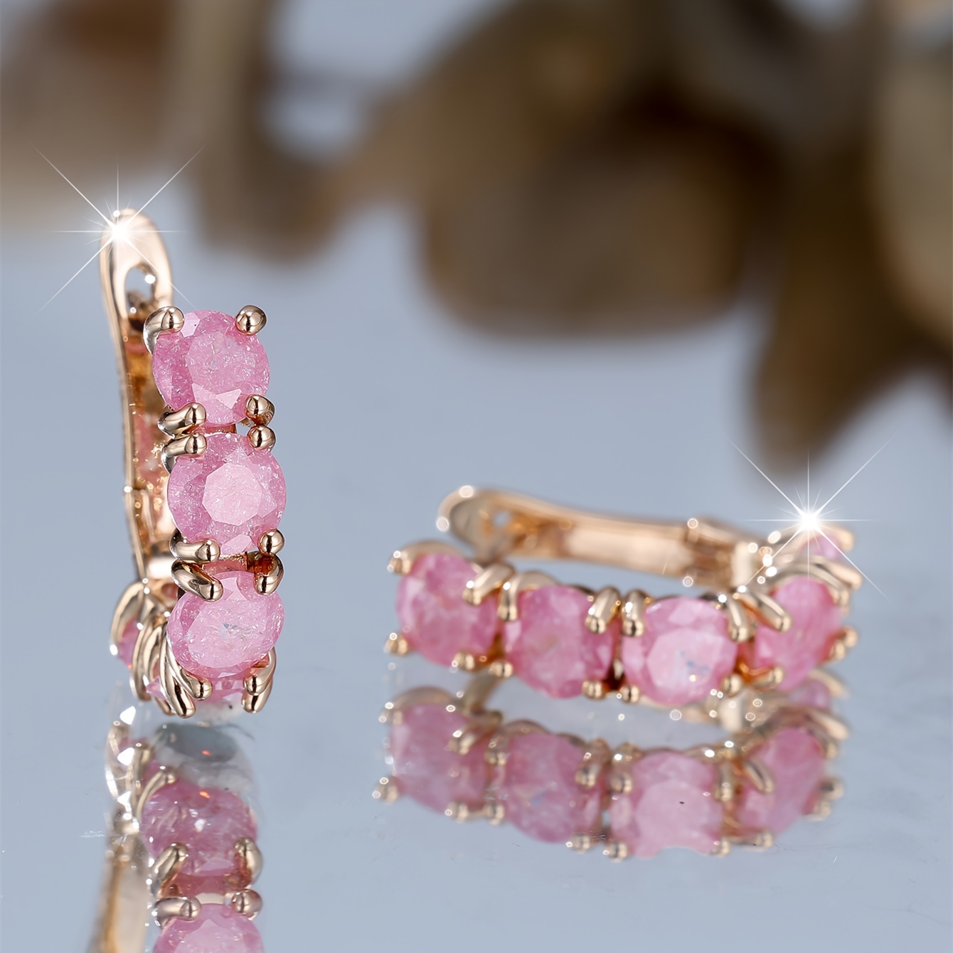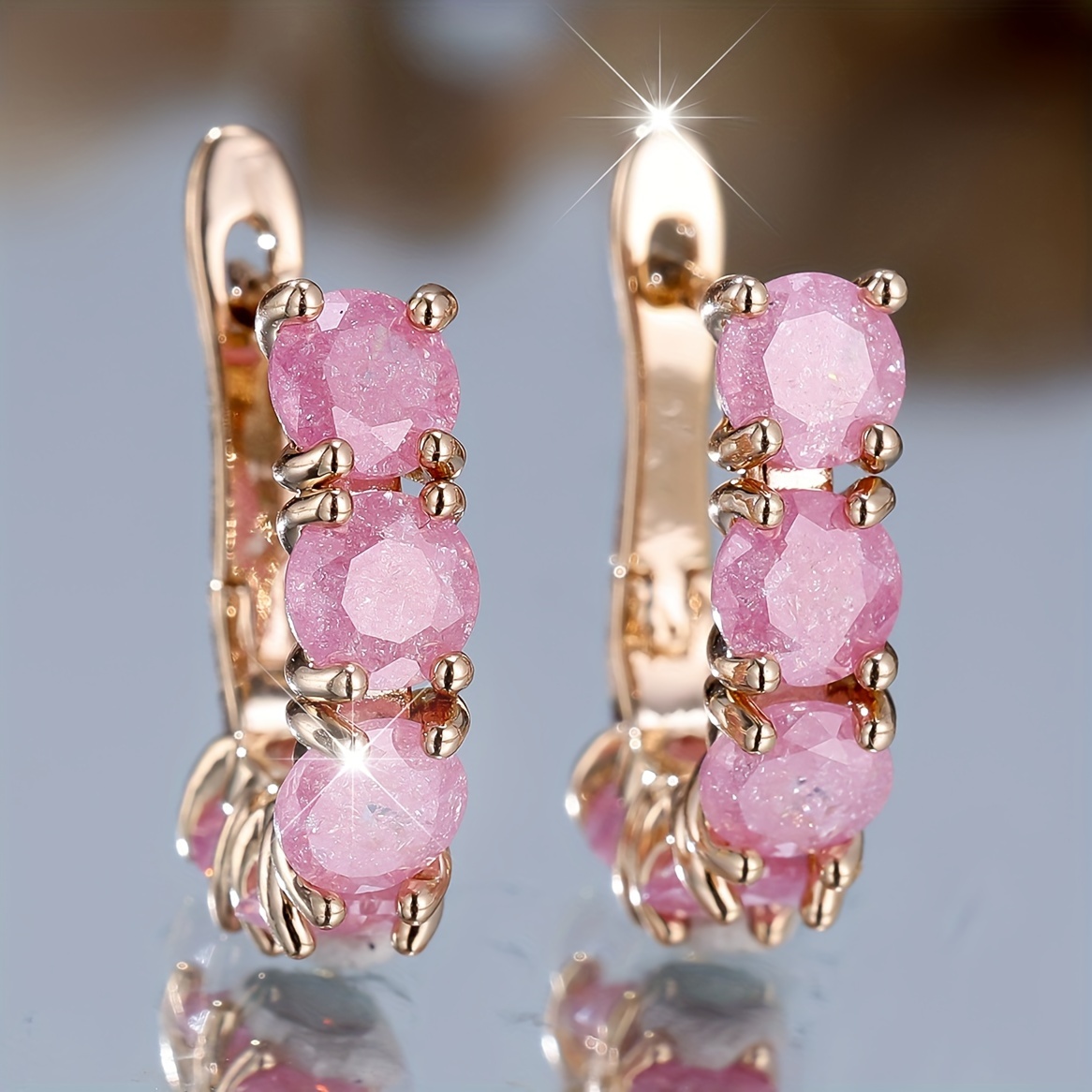 Ladies Elegant Vintage Round Ring Earrings - Cubic Zirconia and Copper, Perfect for Parties and Gifts