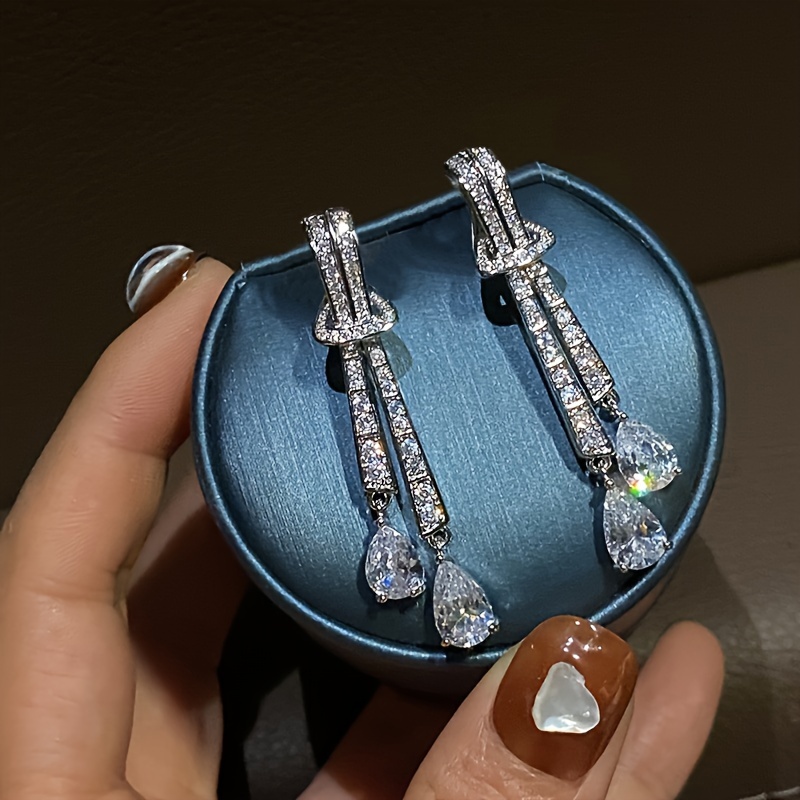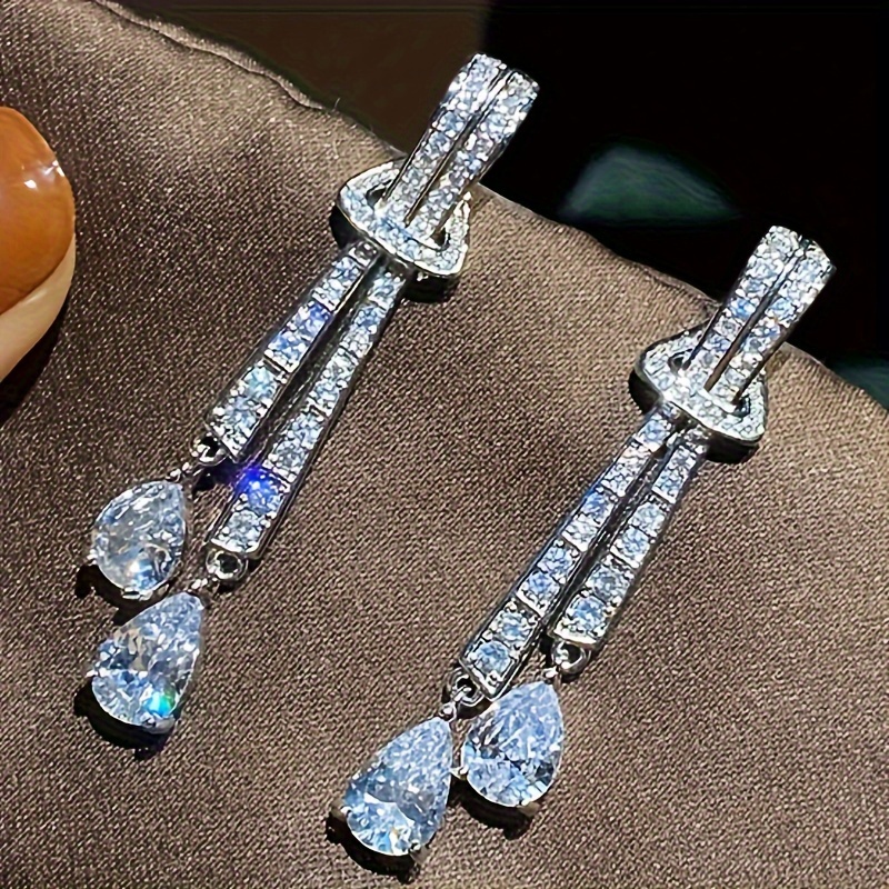 Ladies Elegant Zircon Drop Pendant Earrings - Nickel Free Copper, Perfect for Weddings and Engagements, April Birthday Stone