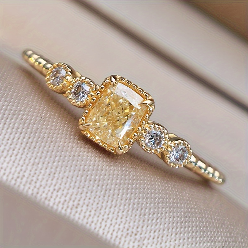Ladies engagement wedding banquet jewelry, beautifully set yellow faux gemstone ring, four-claw design