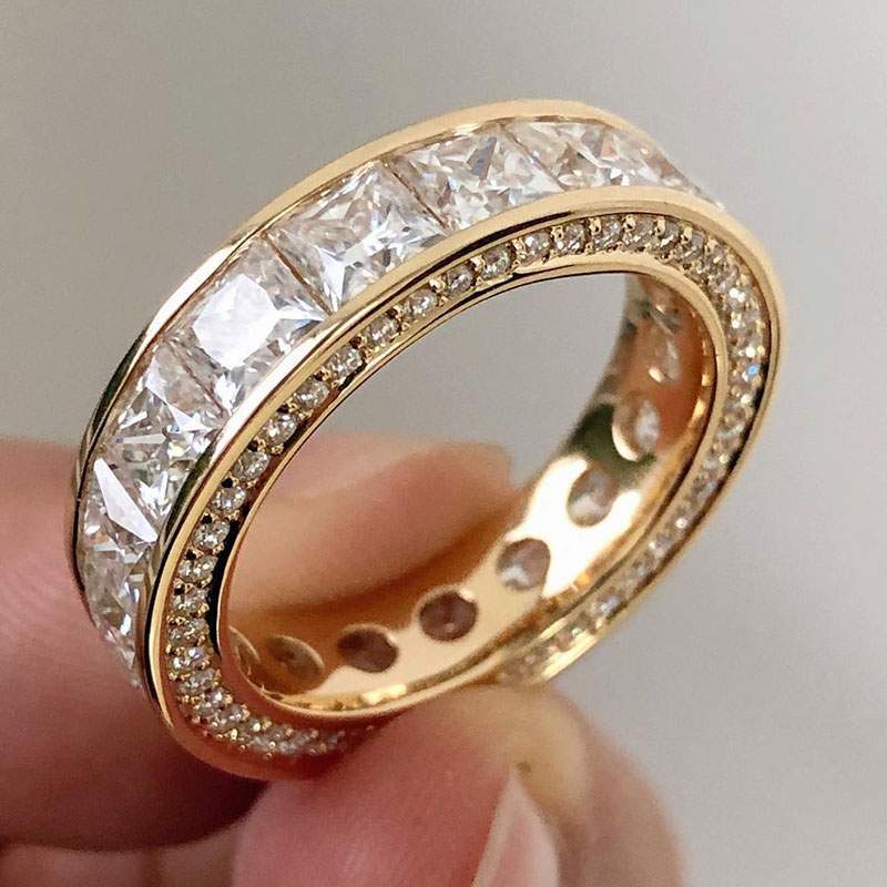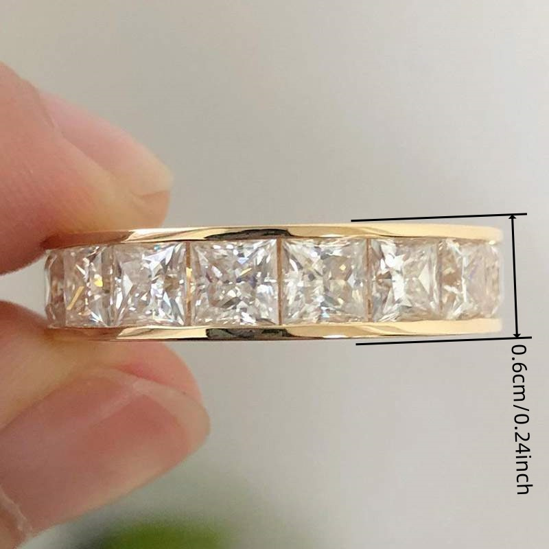 Ladies Eternal Ring, Stylish Single Row Square Cut Shiny Cubic Zirconia Broadband, Everyday Casual Wear, Anniversary Gift, Fine Jewelry, Basic Styles, Minimalist Design, Copper Base, Synthetic Zirconia Inlay, Holiday Theme, April Birthstone