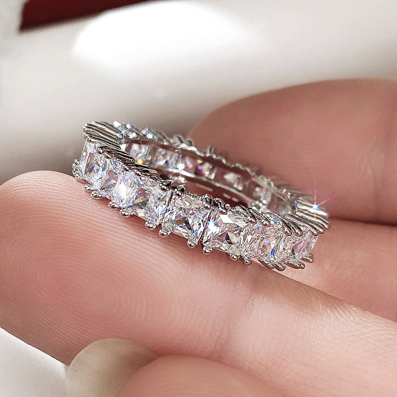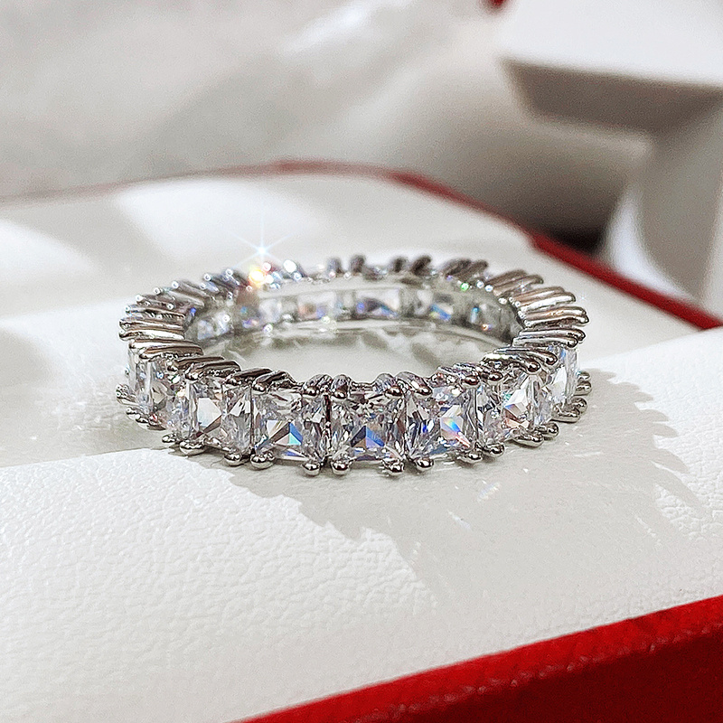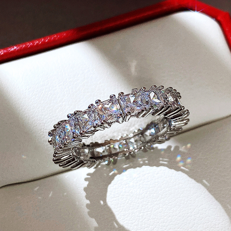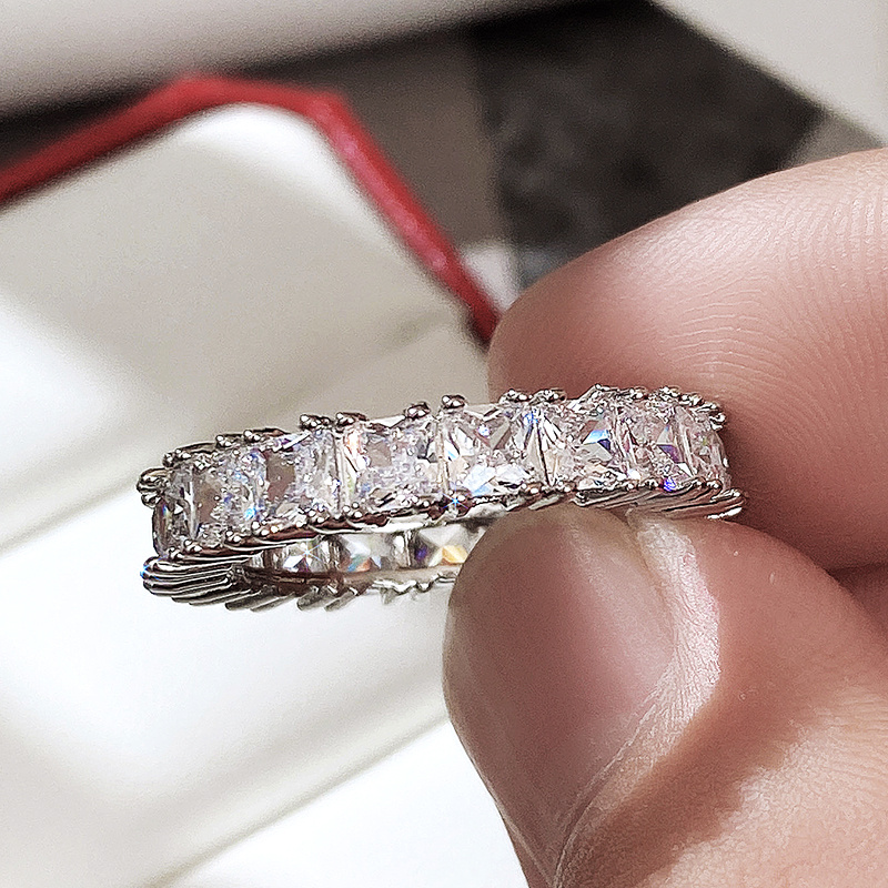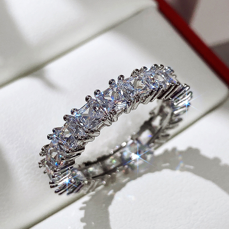 Ladies Fashion Silver Princess Cut White Zircon Eternity Ring