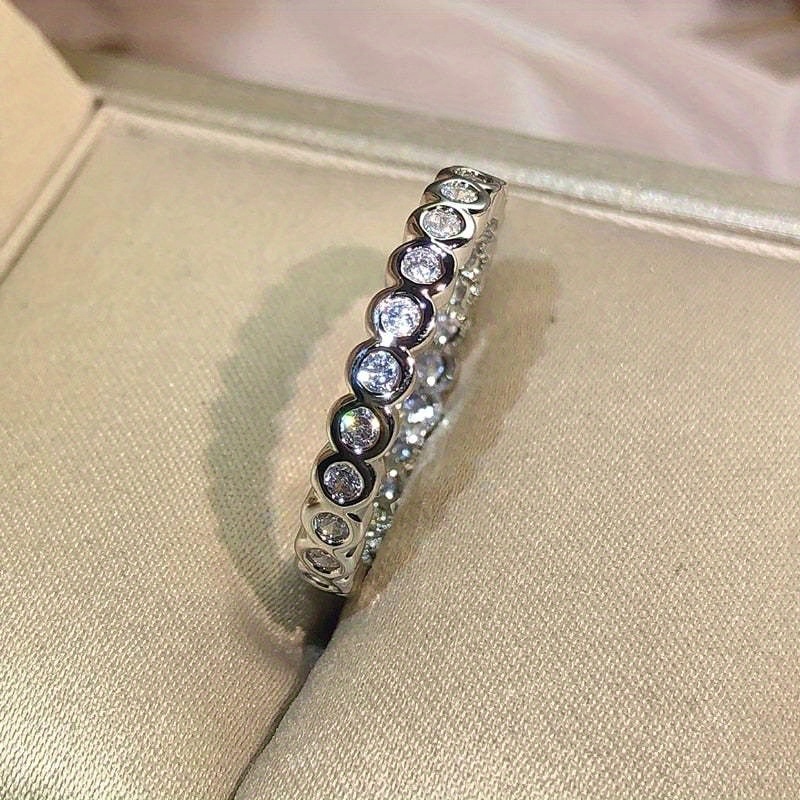 Ladies Promise Ring Silver Plated Round Zircon Engagement Jewelry Girls Party Accessories