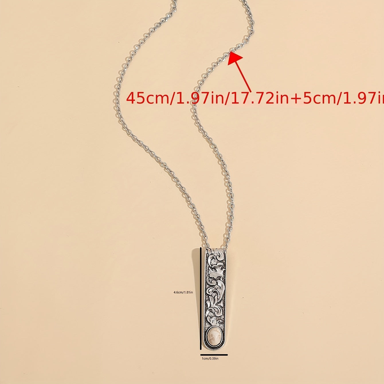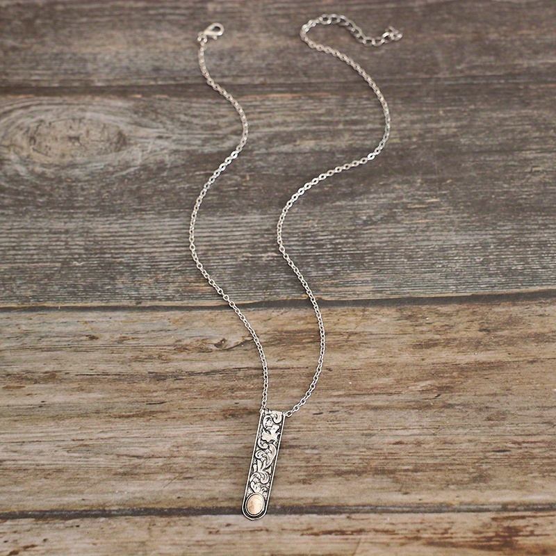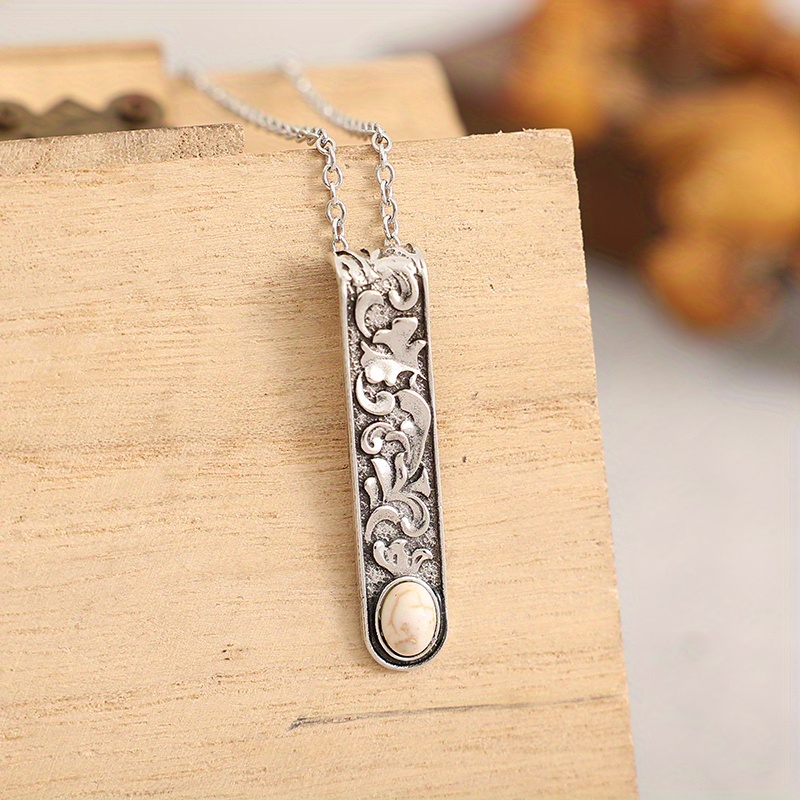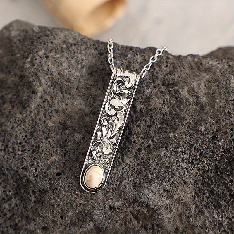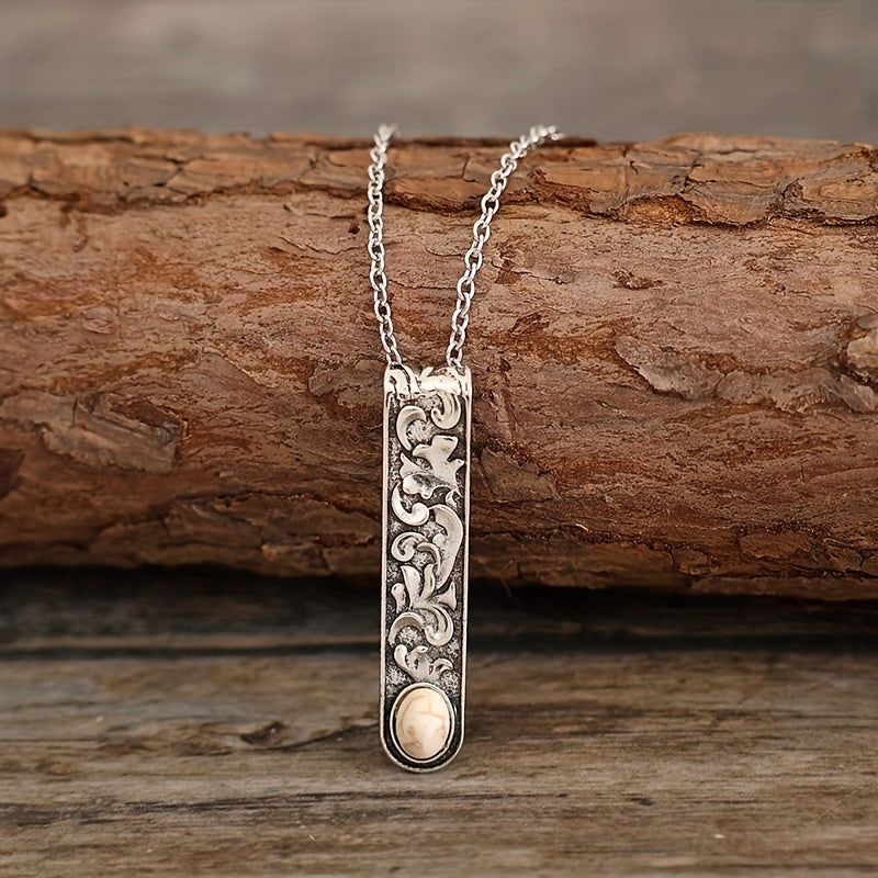 Ladies Quaint Strip Carved Turquoise Pendant Necklace