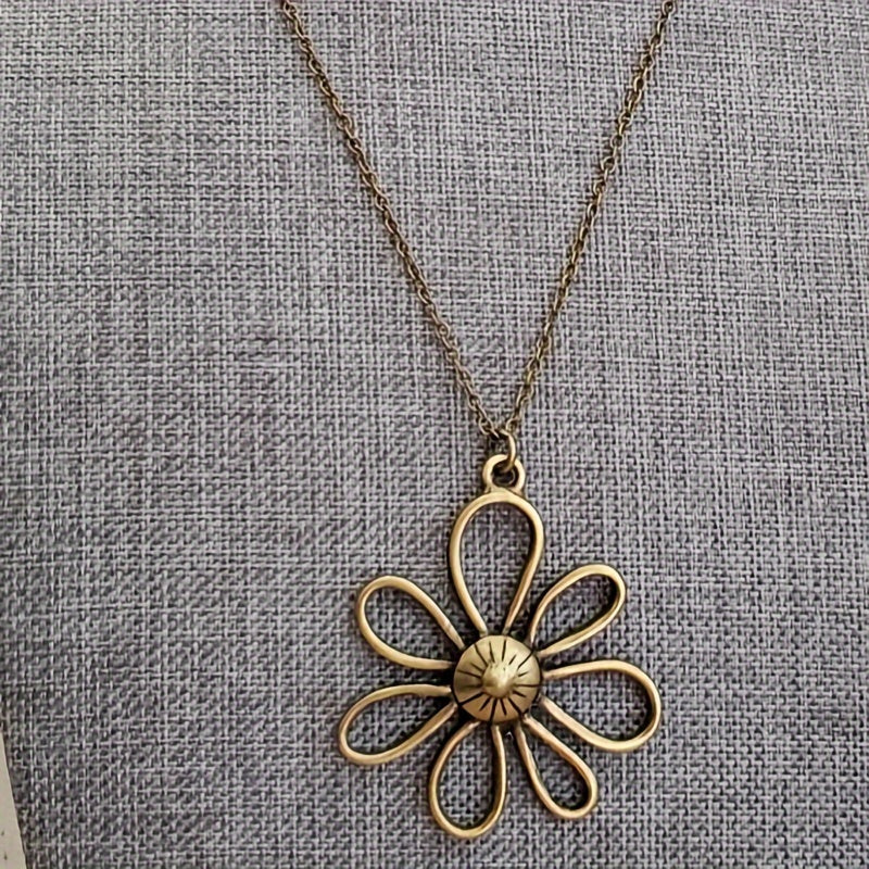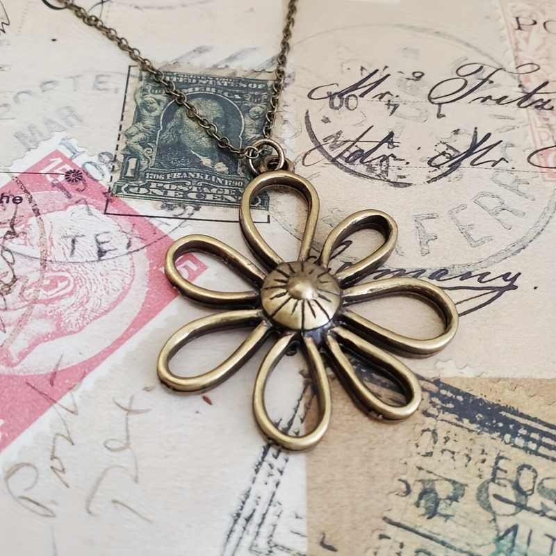 Ladies' retro copper flower pendant necklace, alloy, simple design, exquisite chain, suitable for daily wear, charm necklace