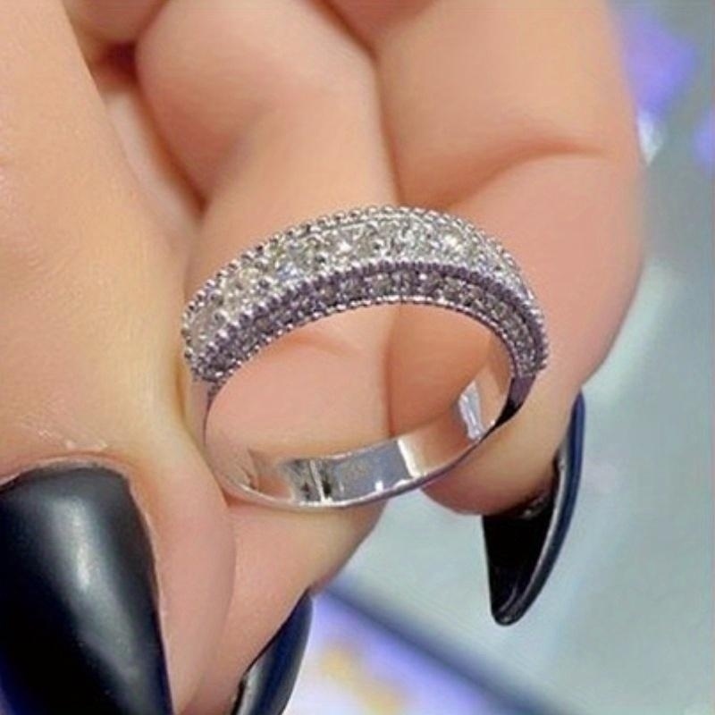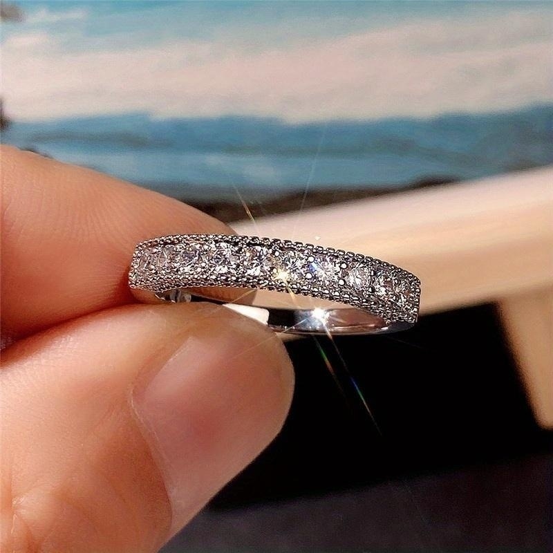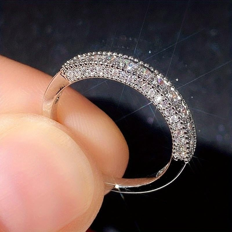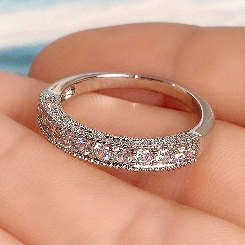 Ladies Ring 925 Silver Plated Miniature Zirconia Ring Bridal Romantic Wedding Eternal Jewelry Anniversary Gift