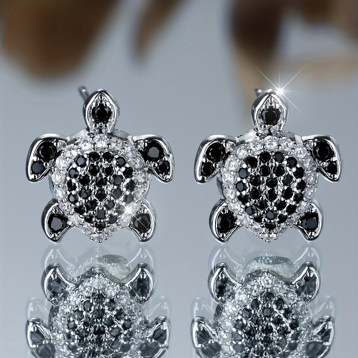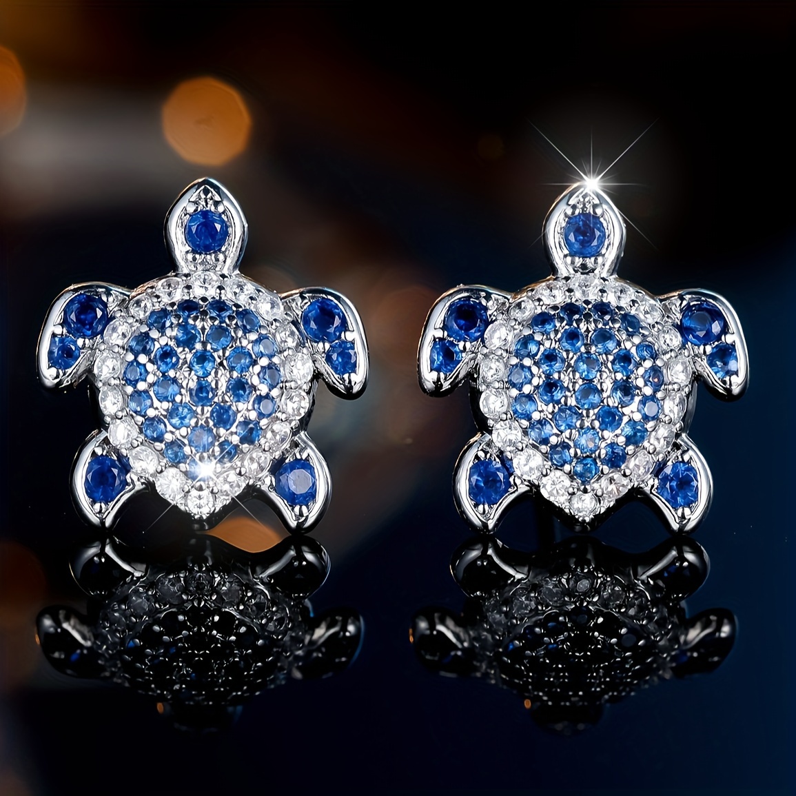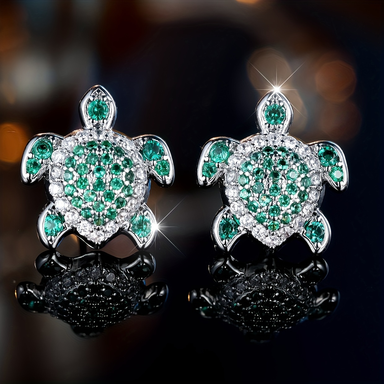 Ladies Vintage Bohemian Style Shine Cubic Zirconia Fashion Turtle Stud Earrings - Perfect for Weddings & Parties