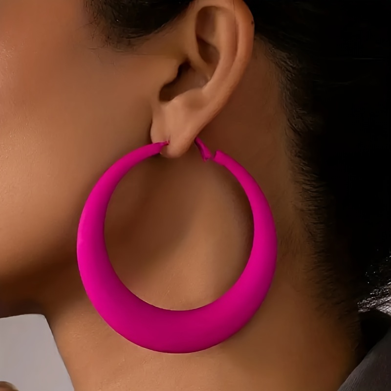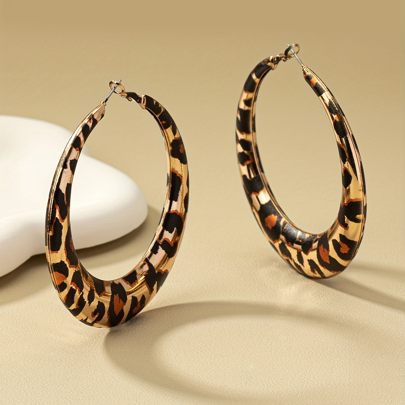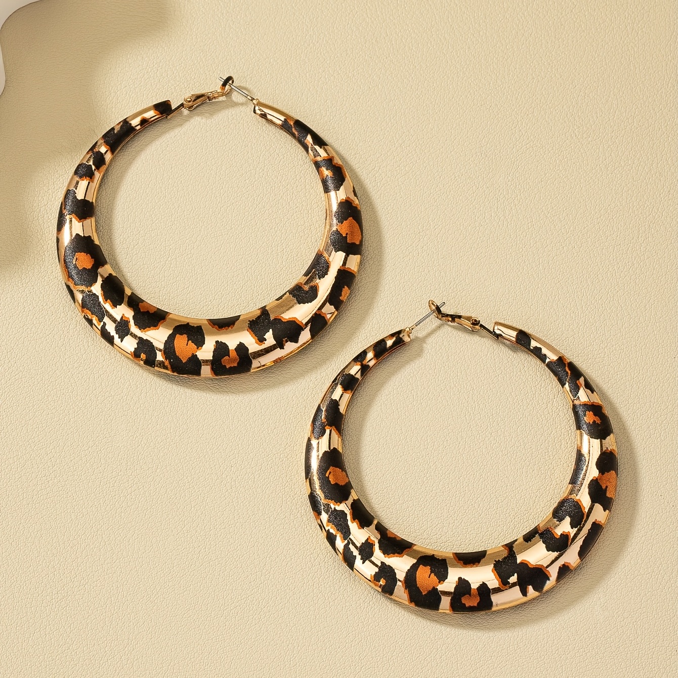 Leopard print pattern thick ring earrings, retro bohemian style alloy jewelry, suitable for daily casual wear