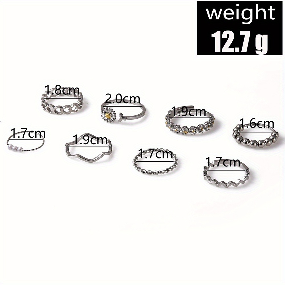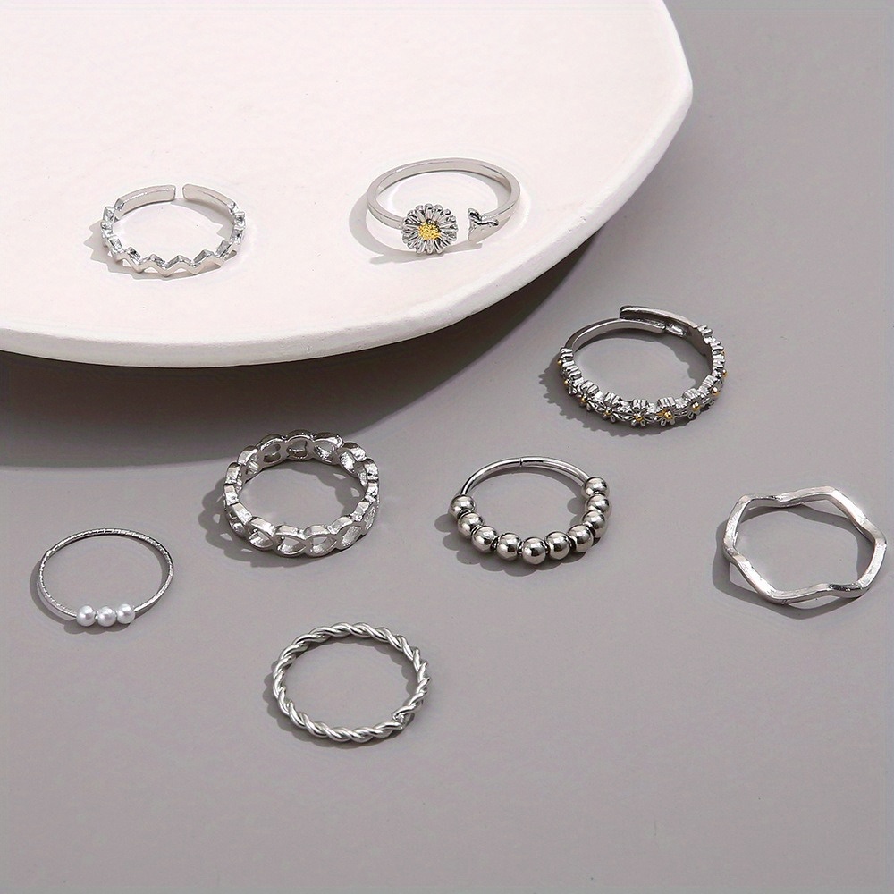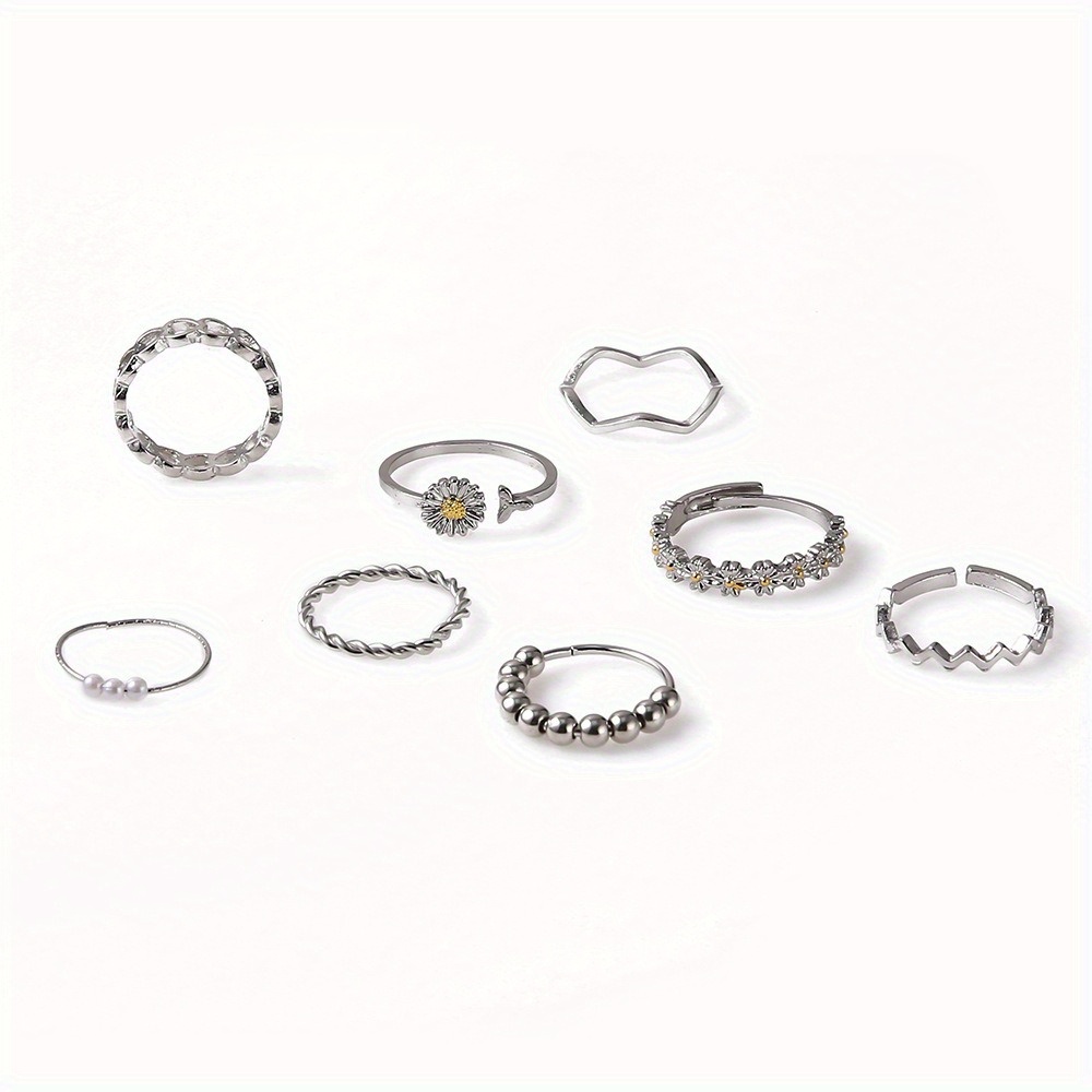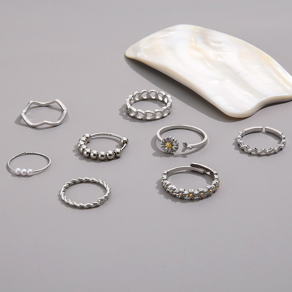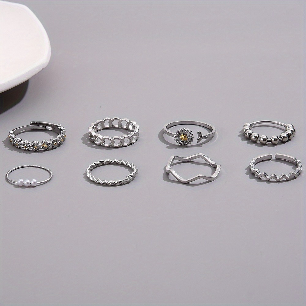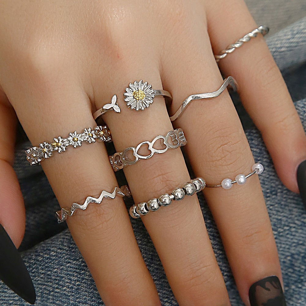 Little Daisy Sunflower Creative Women INS Trend Opening Pearl Love Combination 8-piece Ring Women