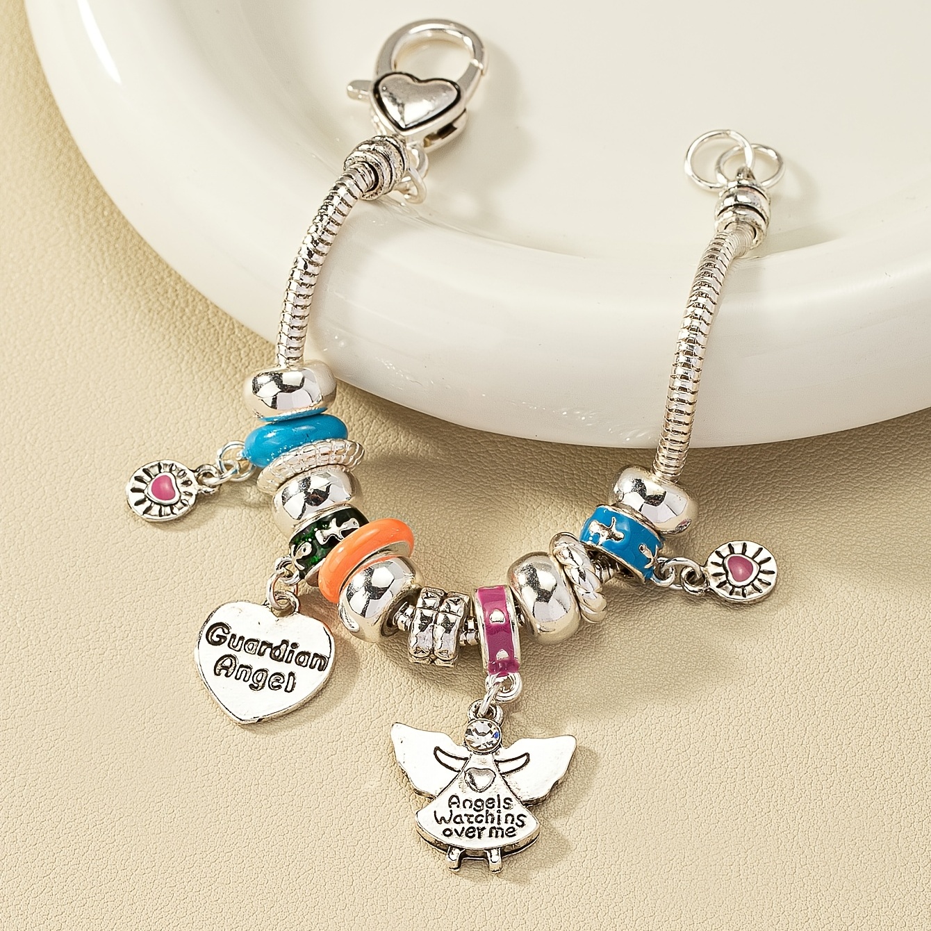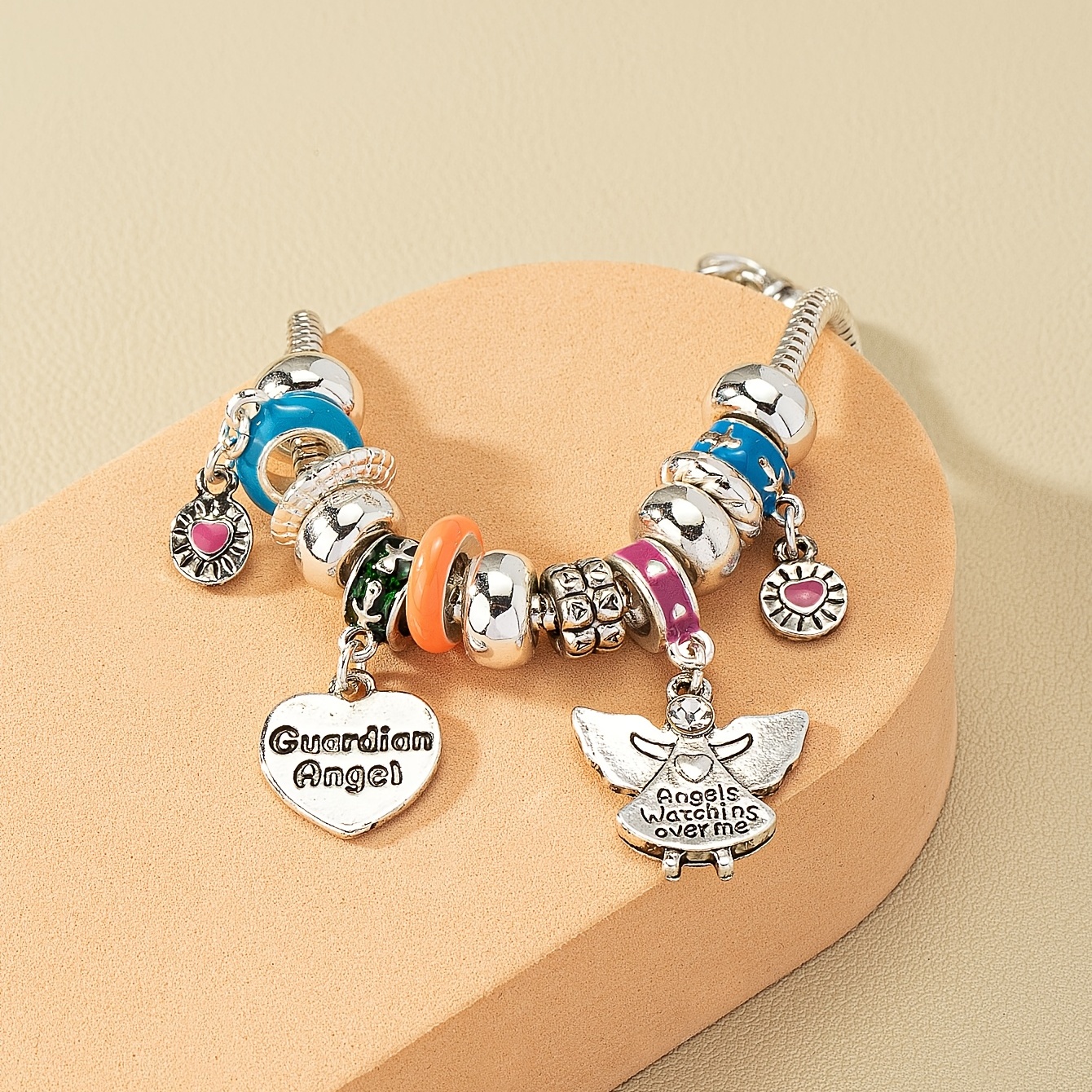 Love Angel Pendant Bracelet With Colorful Beads 14K Plated Alloy Hand Jewelry For Women & Girls