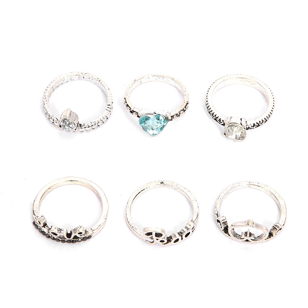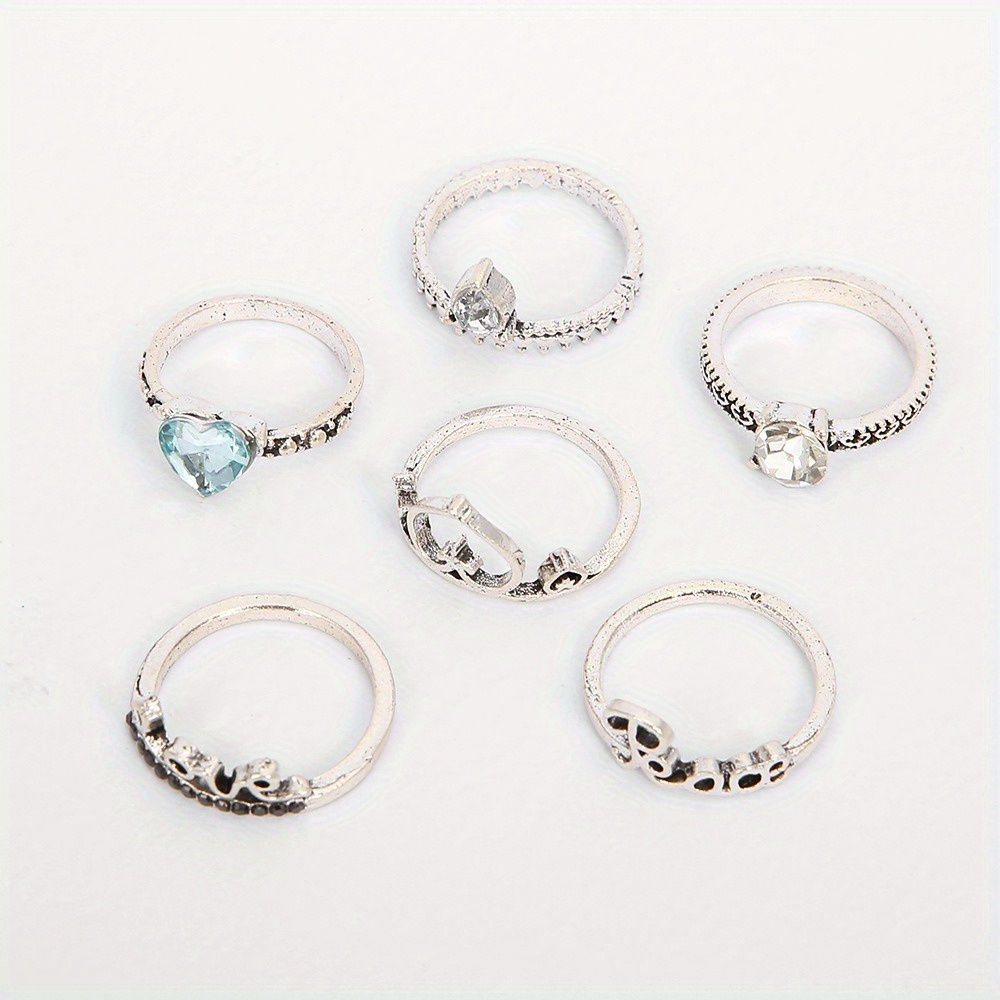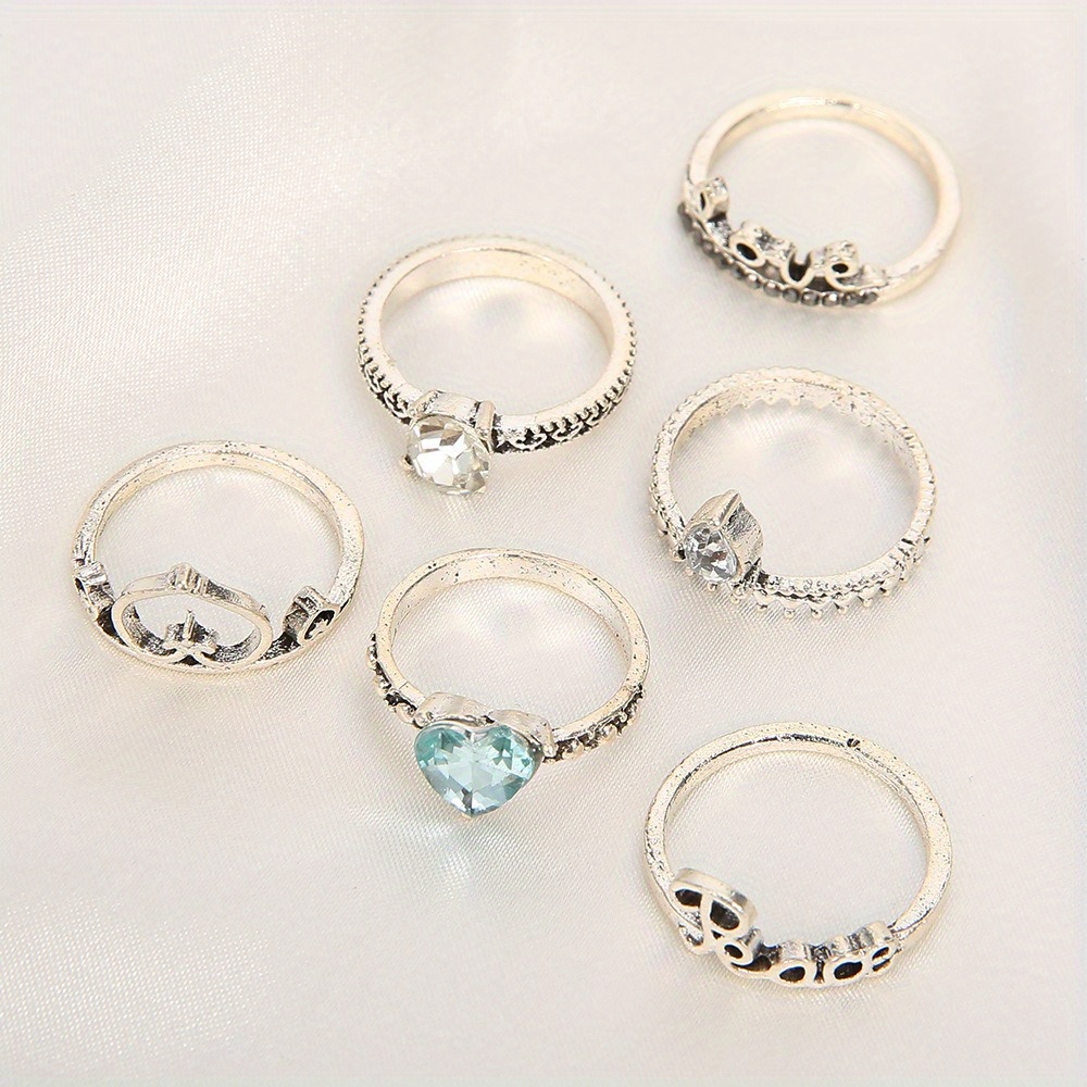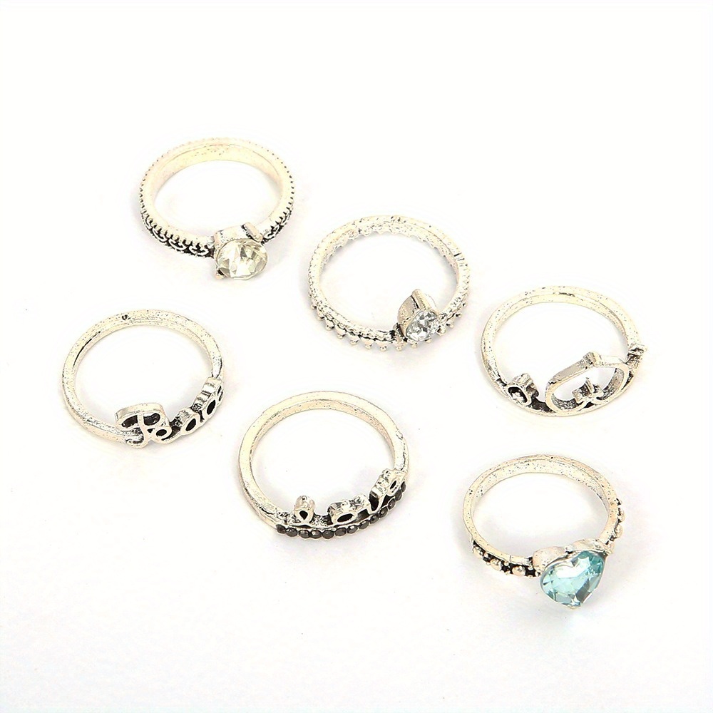 Love clip blue and white zircon ring hot-selling combination 6-piece ring set
