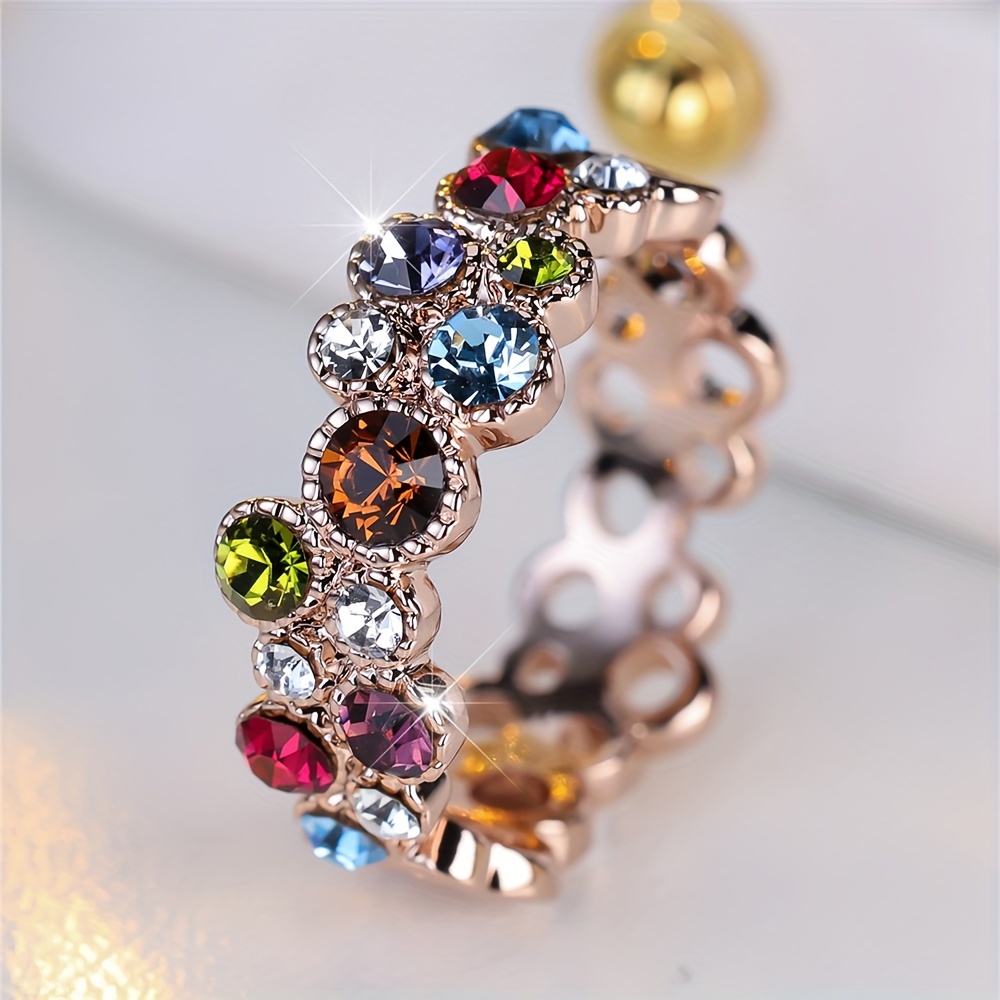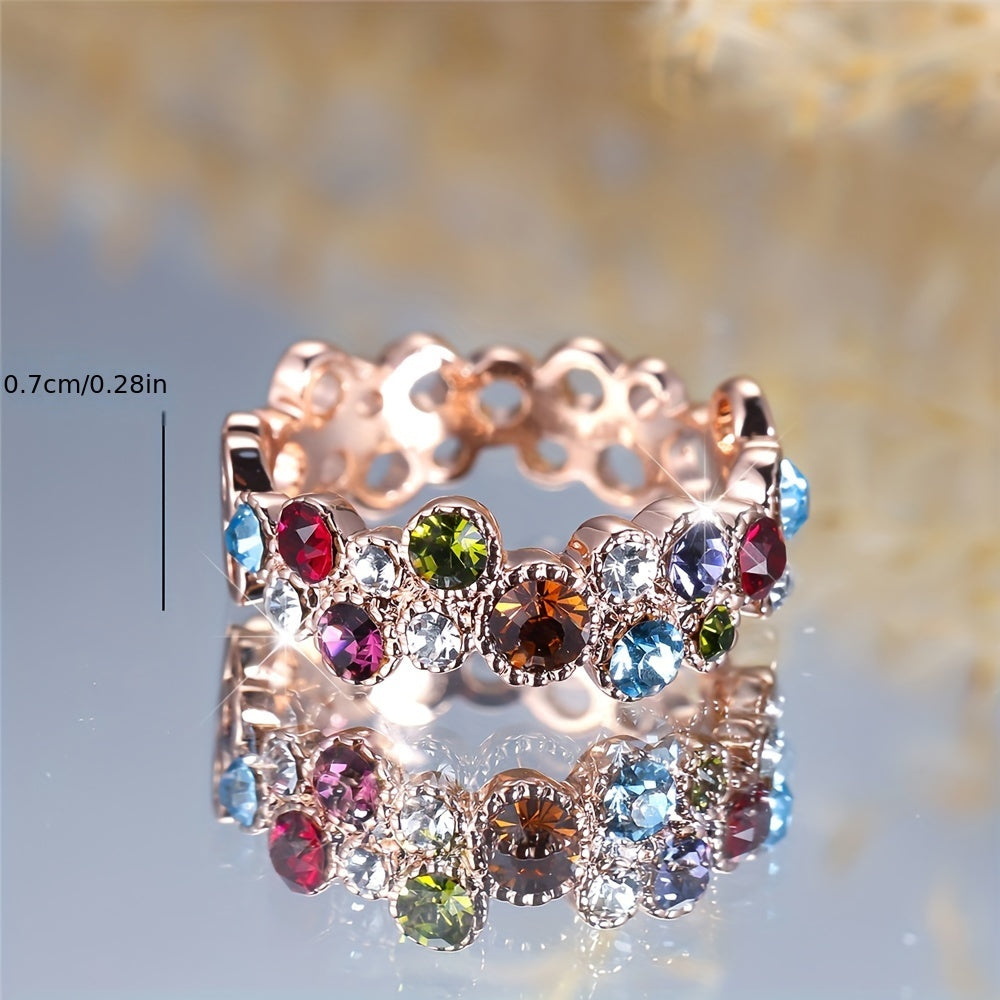 Luxury Bohemian Blue Red Rainbow Cubic Zirconia Ring - Vintage Bridal Jewelry for Weddings and Parties