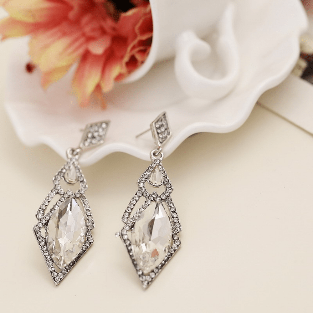 Luxury Crystal Geometric Rhombus Earrings Celebrity Temperament Dress Accessories Stud Earrings