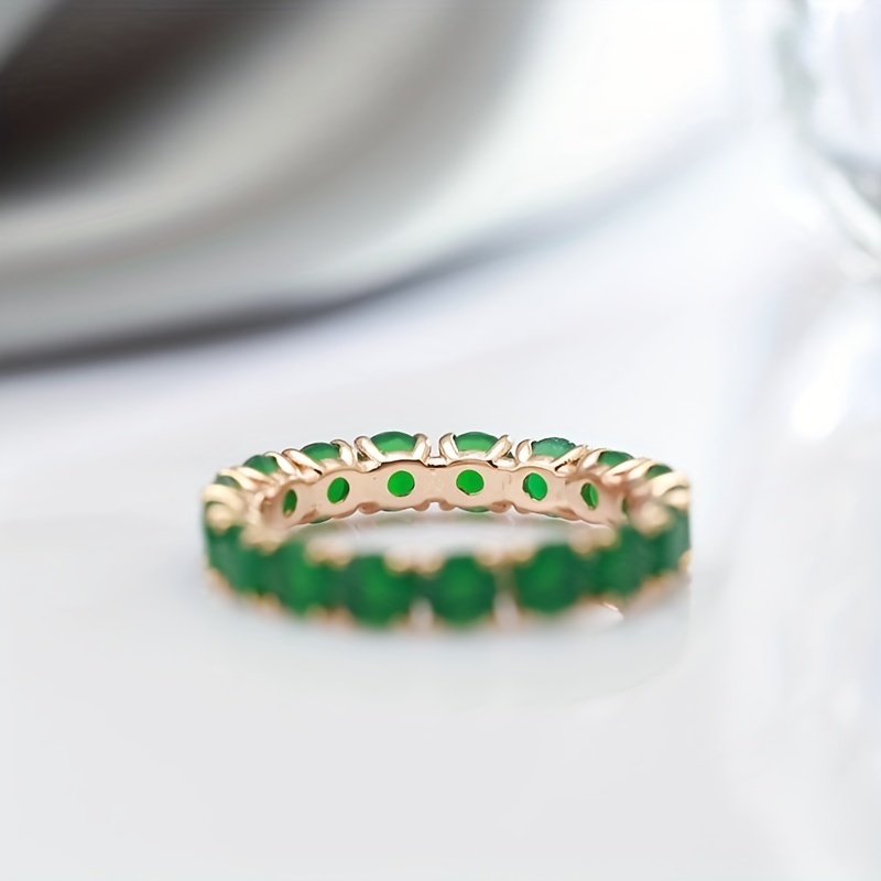 Luxury Green Cubic Zirconia Promise Ring - Ladies Bohemian Gold Wedding Ring, Perfect Valentine's Day Gift