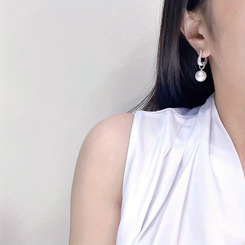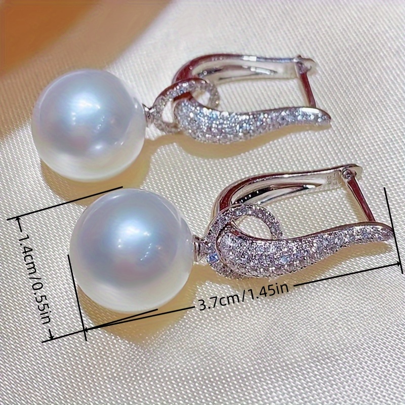 Luxury Ladies Shiny Zircon Earrings 925 Silver Plated Imitation Pearl Pendant, Exquisite Design Accessories, Wedding Ceremony Jewelry Gifts