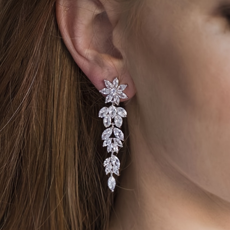 Luxury Sparkling Zircon Flower Bridal Engagement Earrings Elegant Ladies Party Casual Accessories
