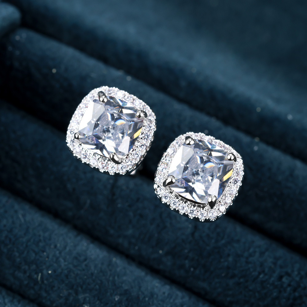 Luxury square zircon stud earrings, wedding party decoration, ladies gift