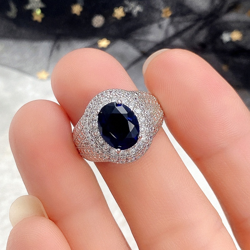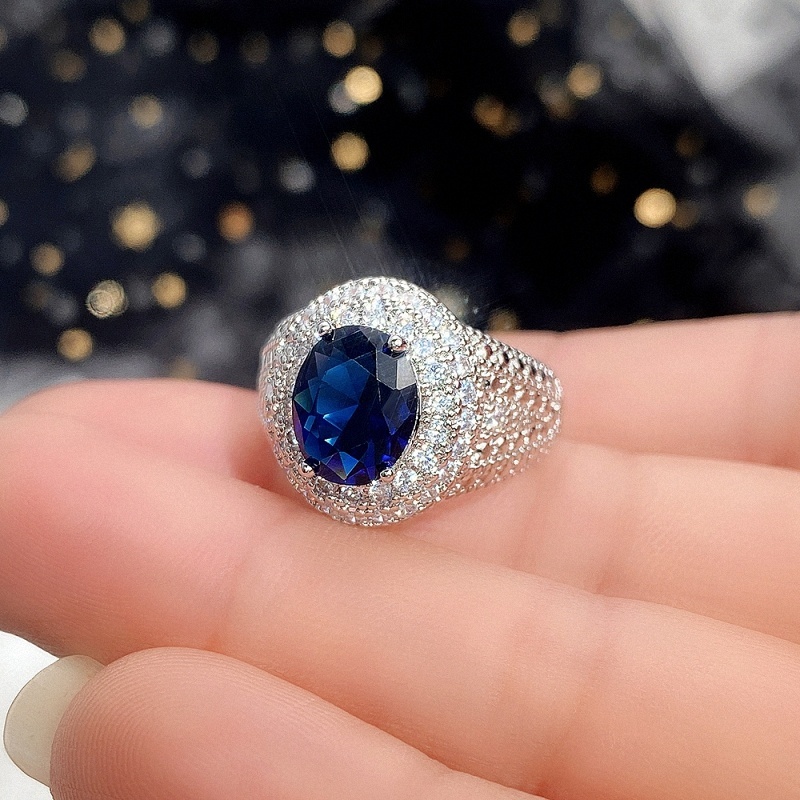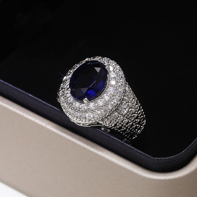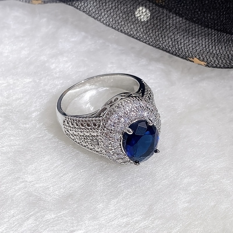 Luxury Vintage 925 Silver Plated Oval Blue Gemstone Ring, Lady Princess Wedding Engagement Banquet Party Set with Zircon Jewelry