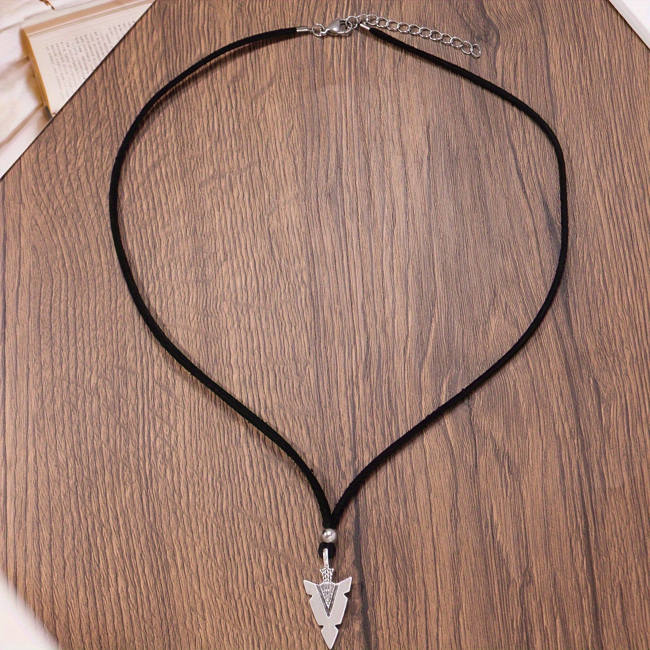 Men's casual accessories, a punk triangular arrow pendant, black rope necklace.