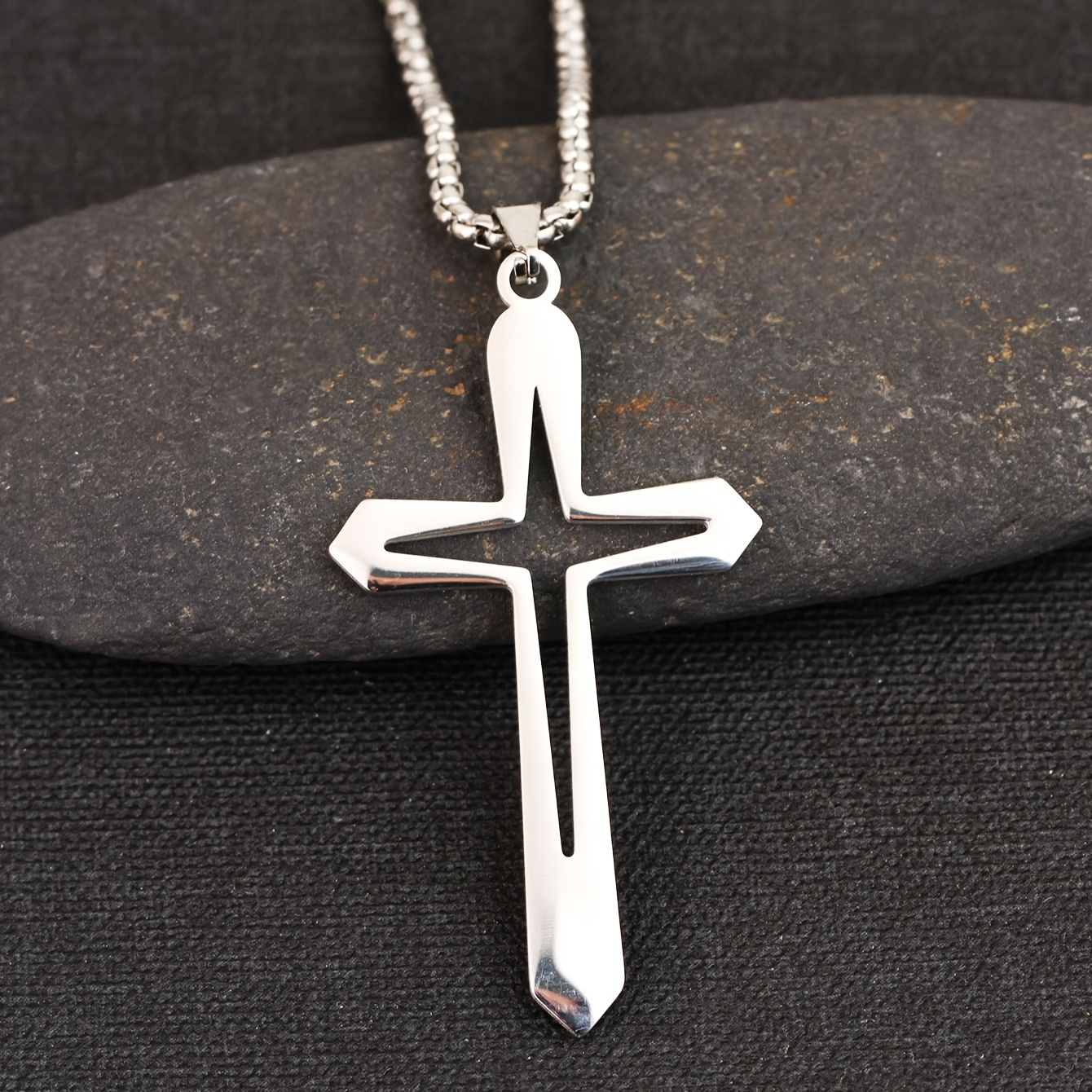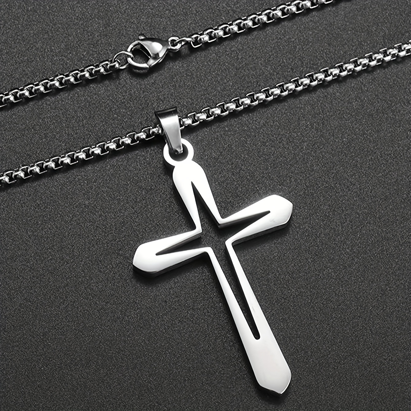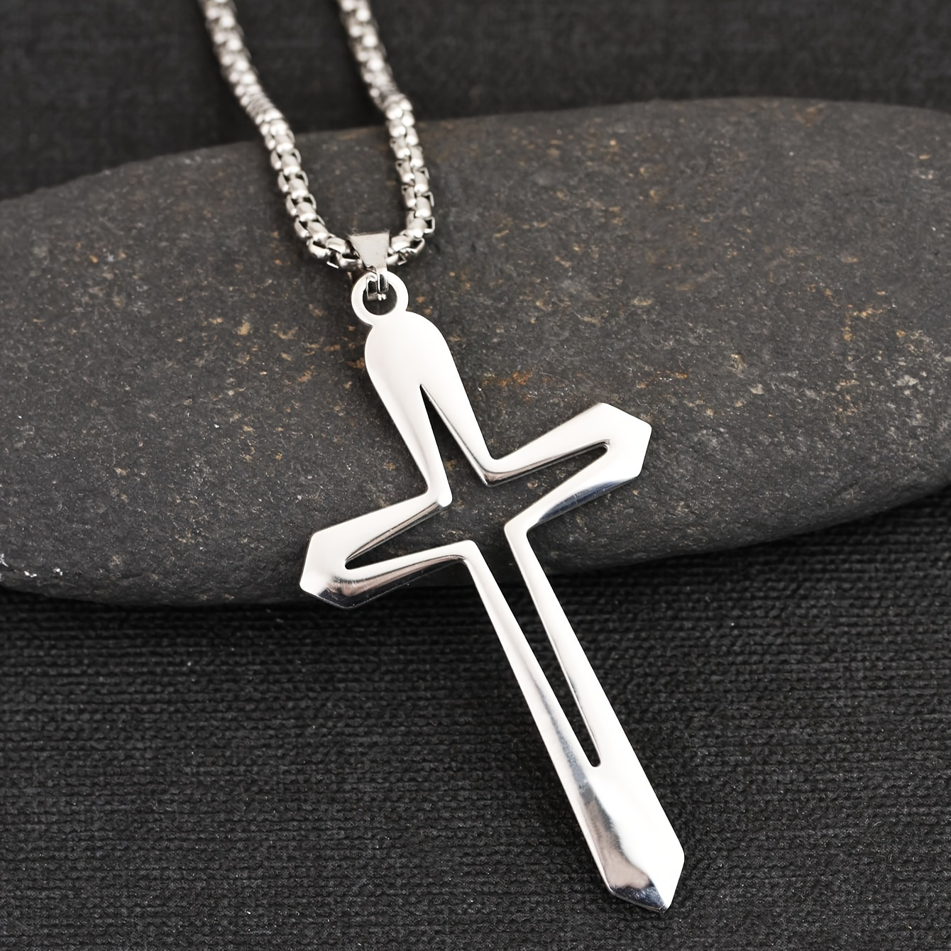 Men's Hip Hop Stainless Steel Cross Pendant Necklace - Stylish, Durable and Hypoallergenic Christian Amulet Jewelry in Elegant Packaging
