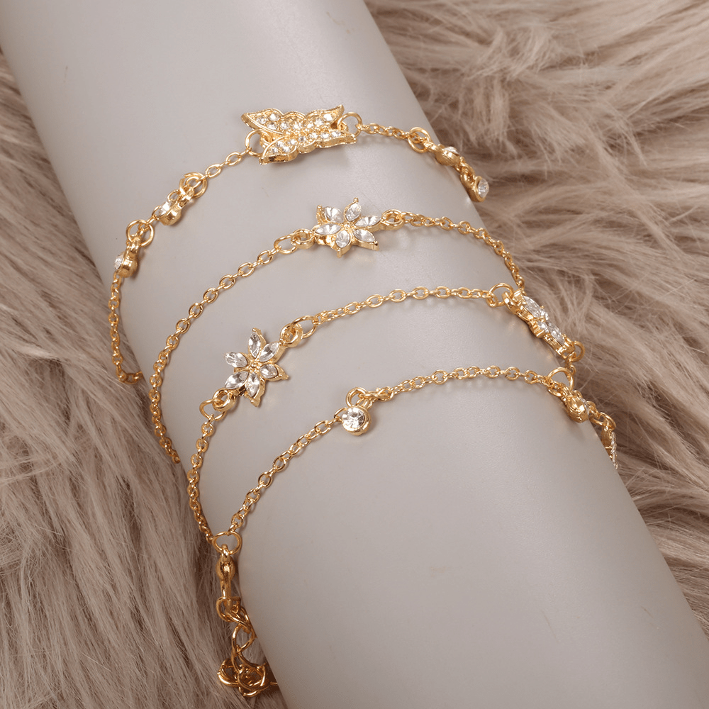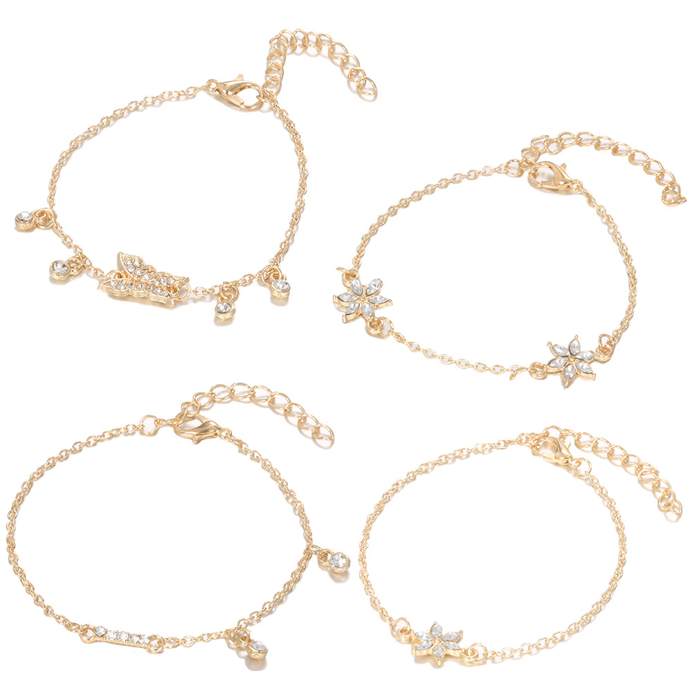 Minimalist Style, Simple Female Personality Butterfly Inlaid with Diamonds, Flower Bracelet 4-piece Set