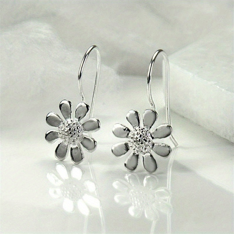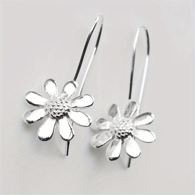 Minimalist Sunflower Pendant 925 Silver Plated Flower Hook Earrings Women's Casual Accessories