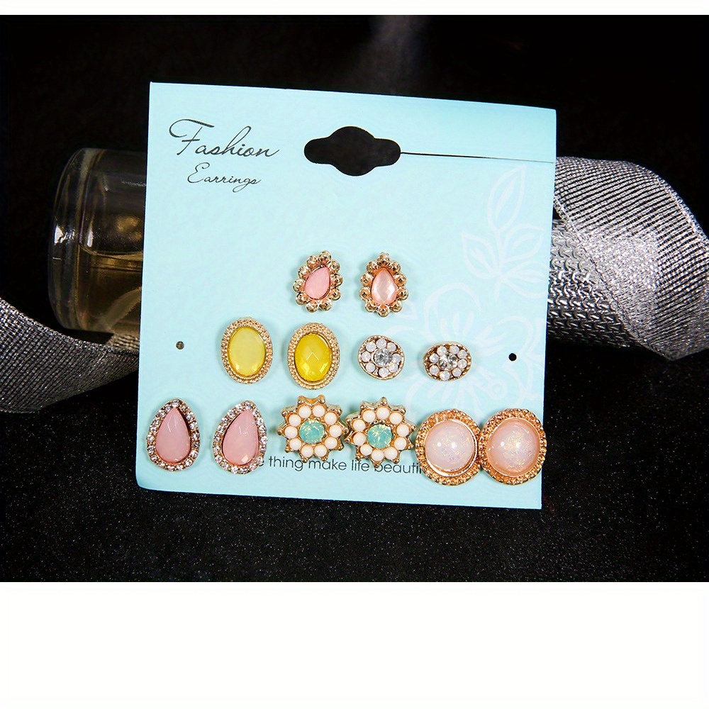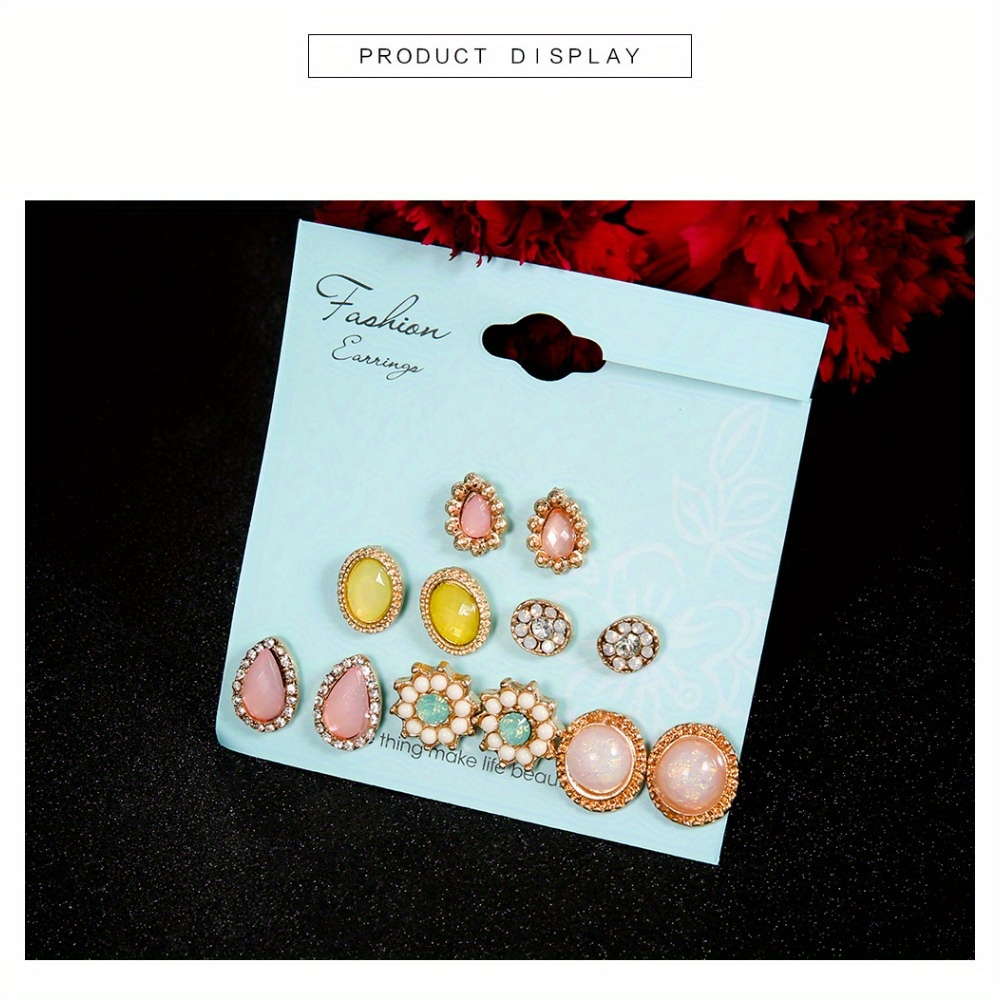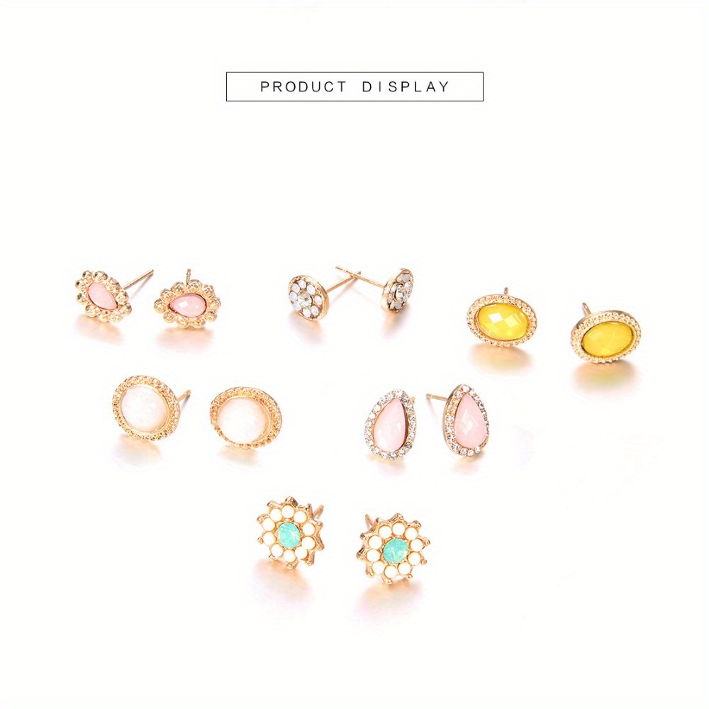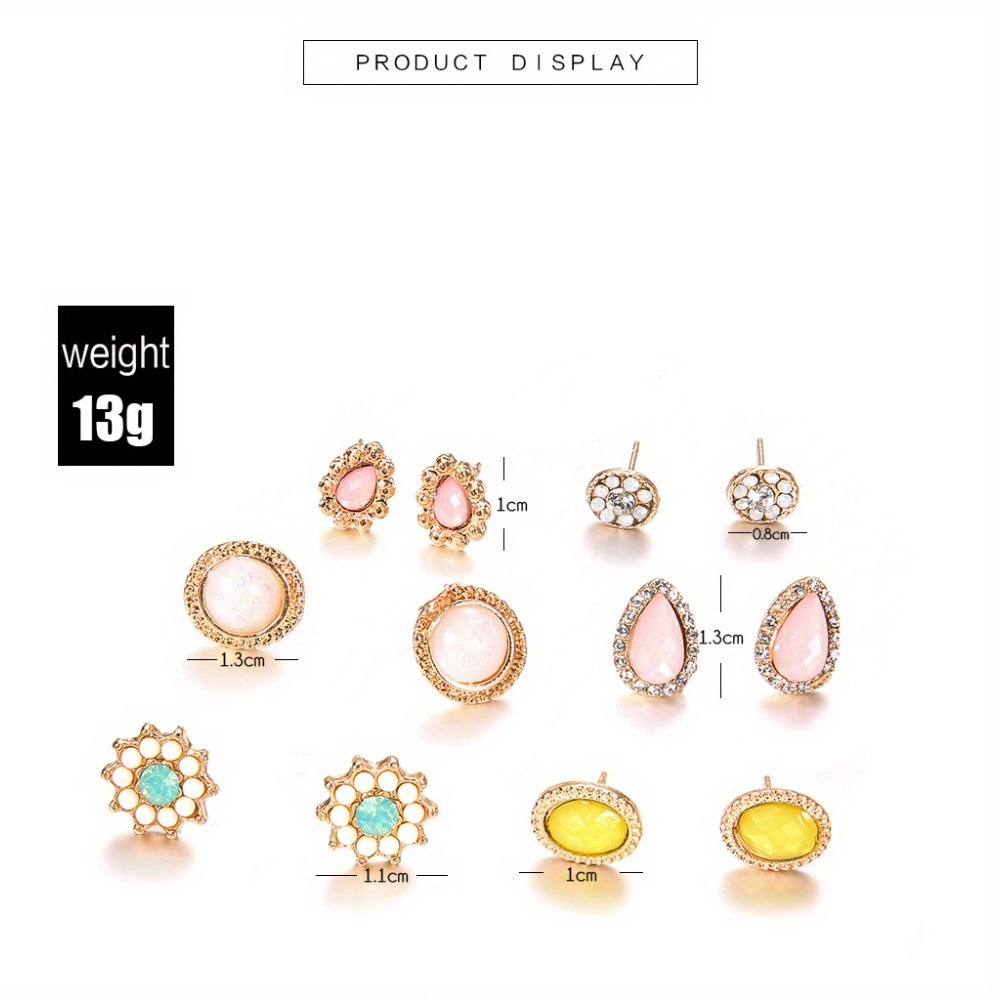Multi-element Water Drop Rhinestone Flower Stud Earrings Opal Earrings Multi-piece Set