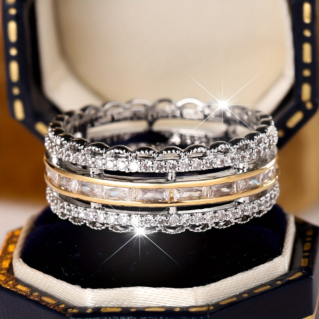 Multi-layer unplated Bohemian timeless ring set, sparkling cut synthetic cubic Zirconia, copper base, perfect gift for her, sparkling accessories for Casual Attire and parties