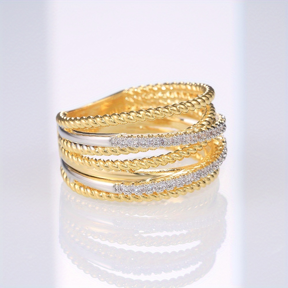Multilayer Cross Ring Silver Plated Multi-Row Zirconia Ring Hip Hop Style Ring