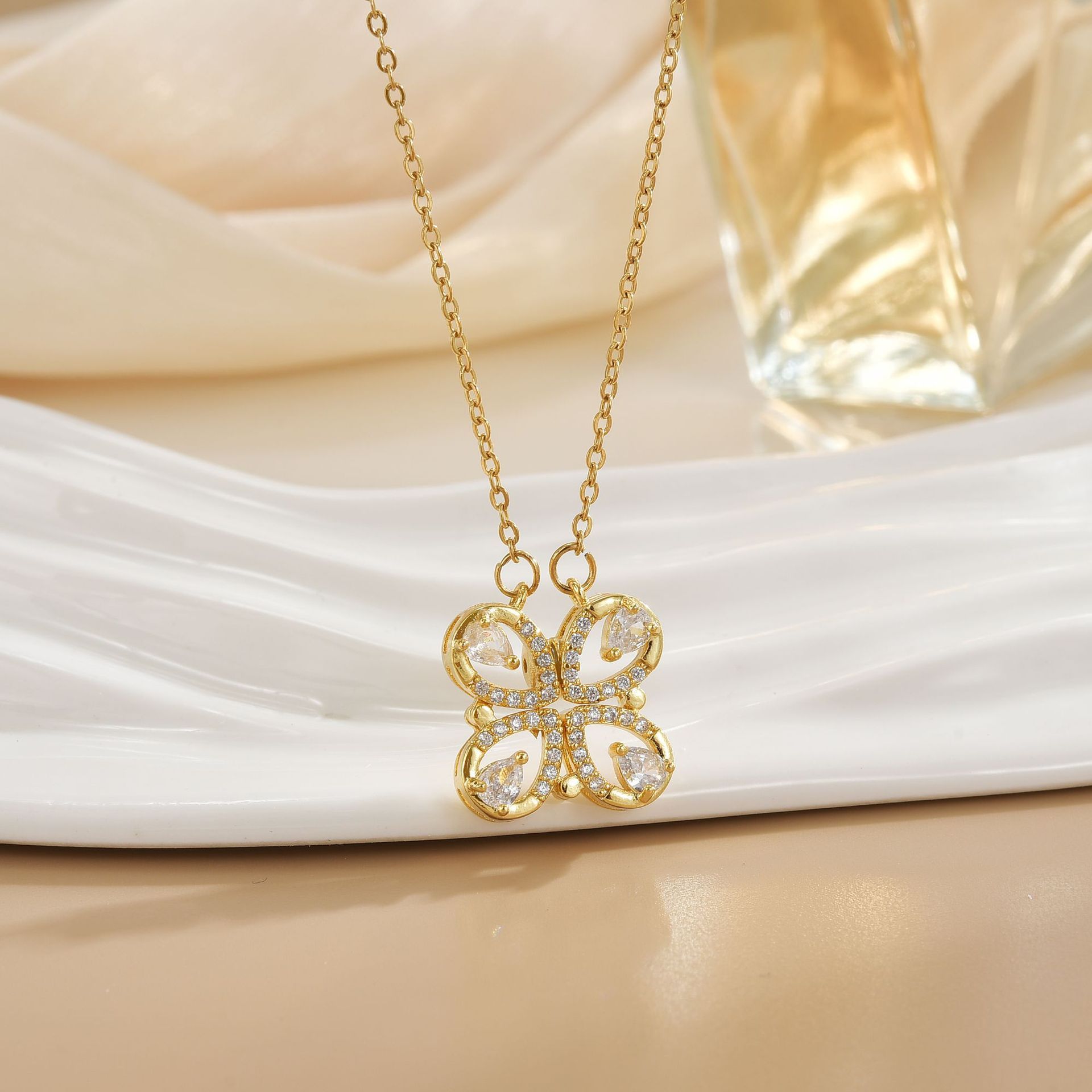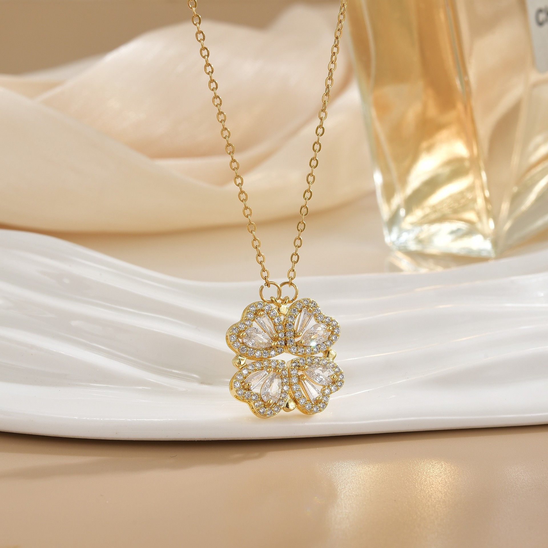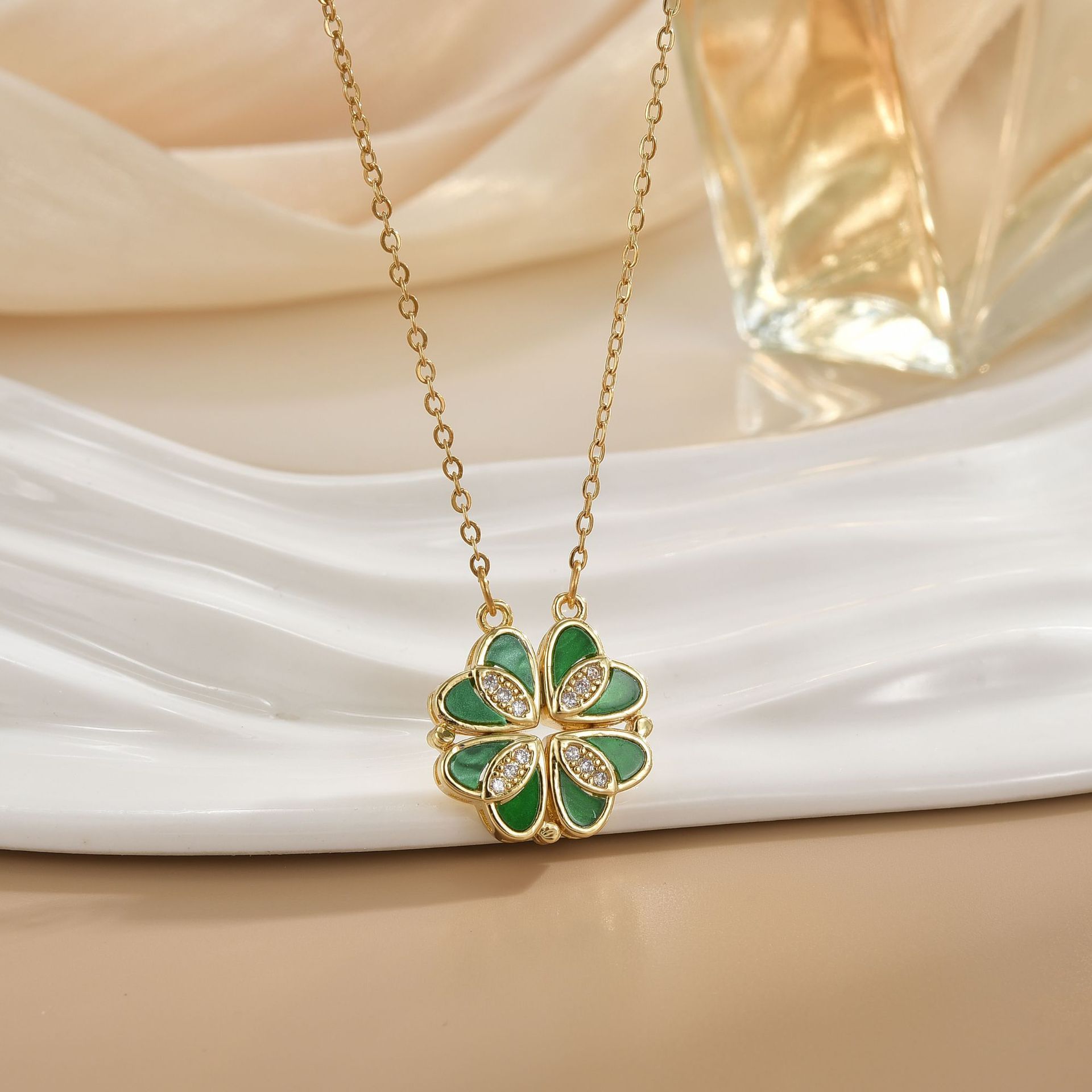 Closed four-leaf flower necklace 1607926198275_4F4A