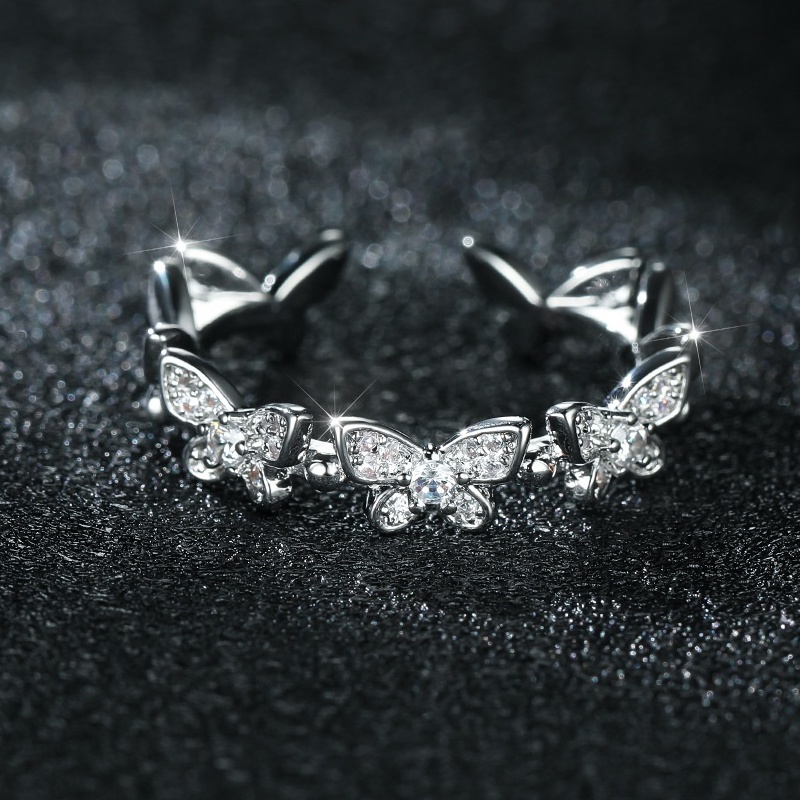 New 18K gold-plated butterfly ring, shiny cubic zirconia adjustable ring, simple and exquisite jewelry gift for girls