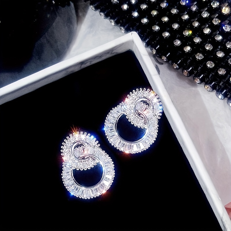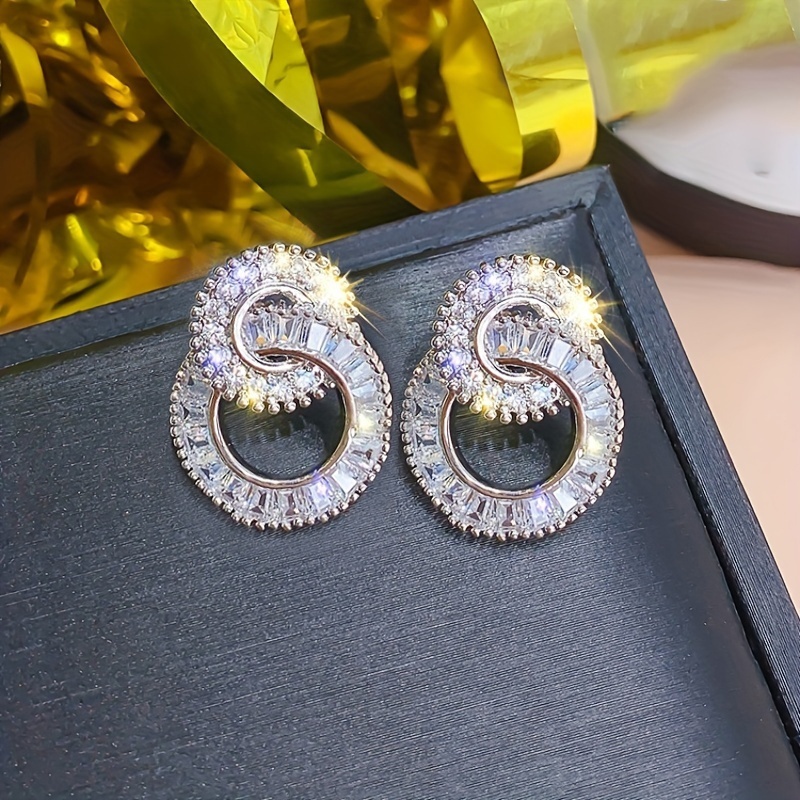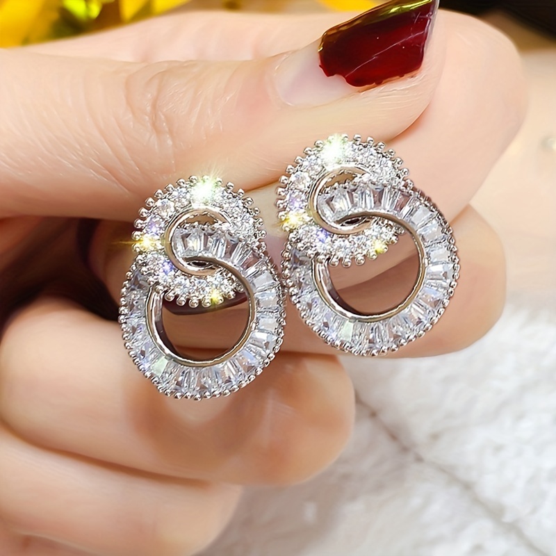 New 925 Silver-plated Exquisite Round Cute Bling Zircon Stud Earrings Women's Fashion Jewelry