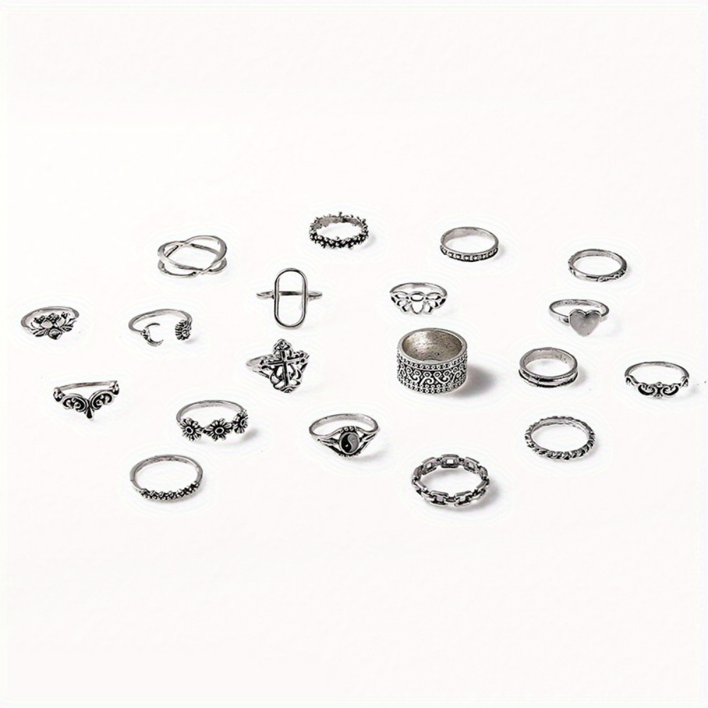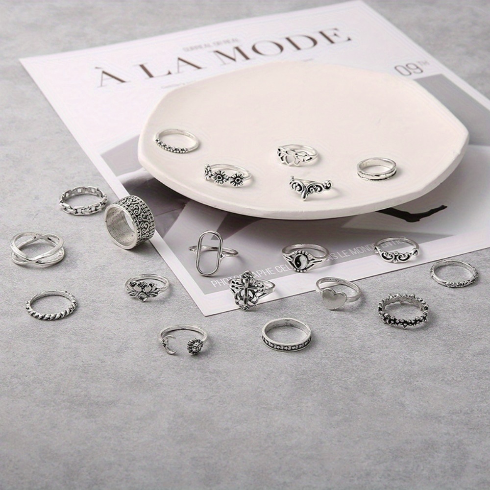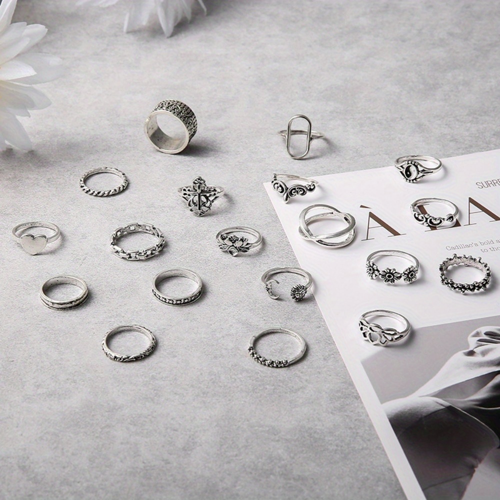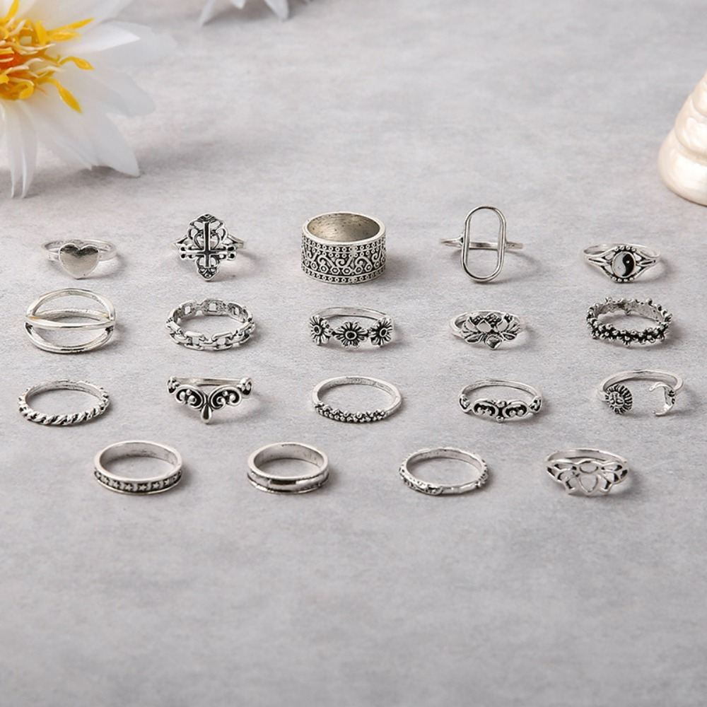 New dripping oil gossip hollow engraving lotus love ring 19-piece ring set