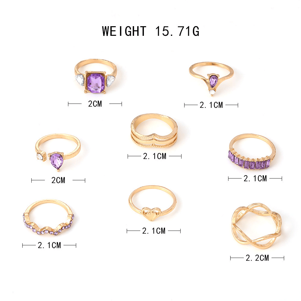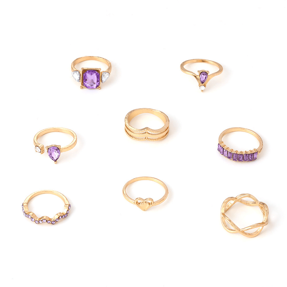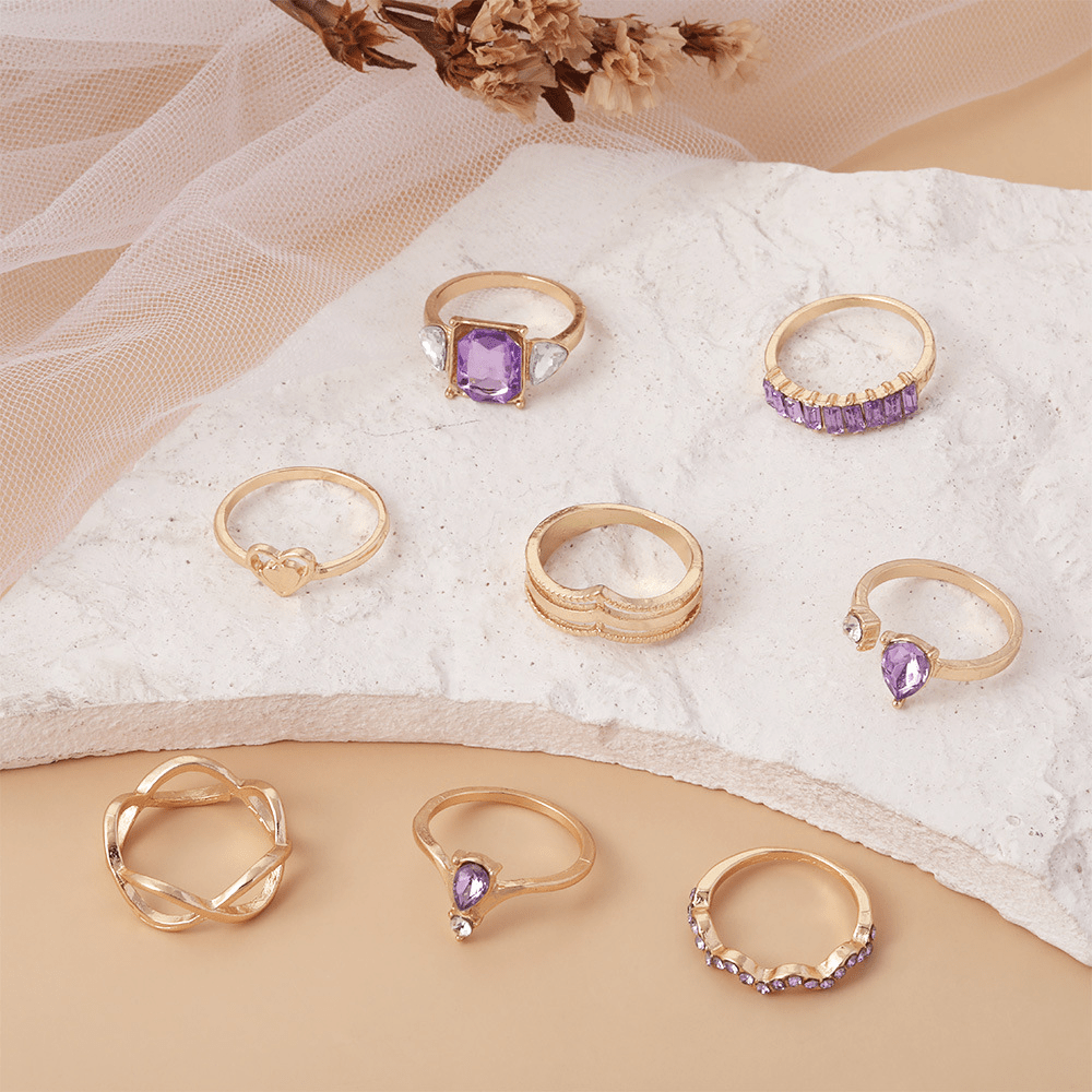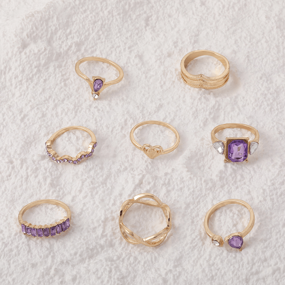 New Gold Ring, Fashionable Love Cross Point Diamond 8-piece Set Ring Jewelry
