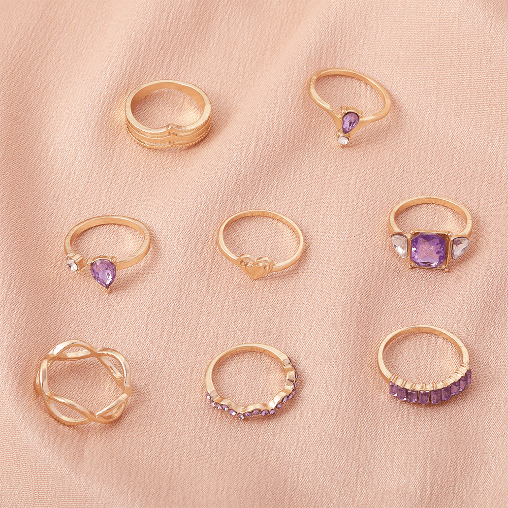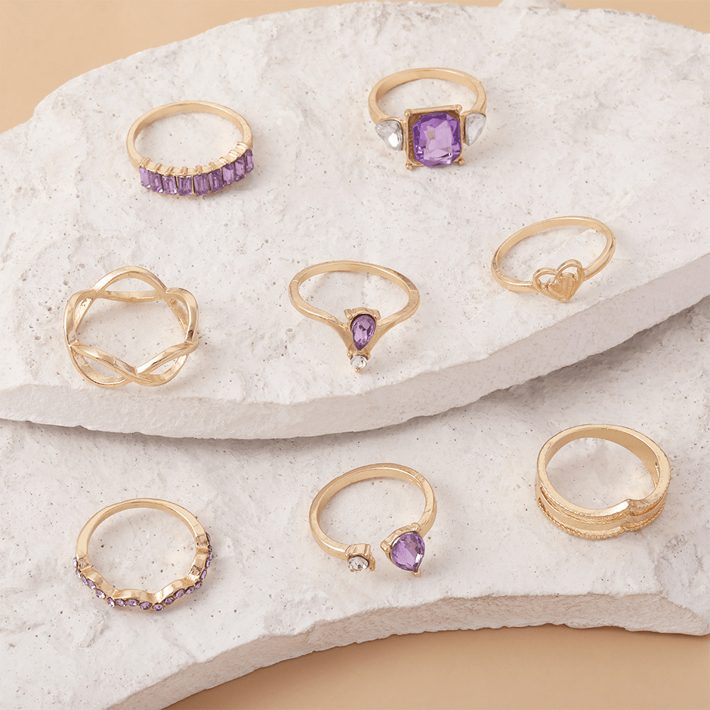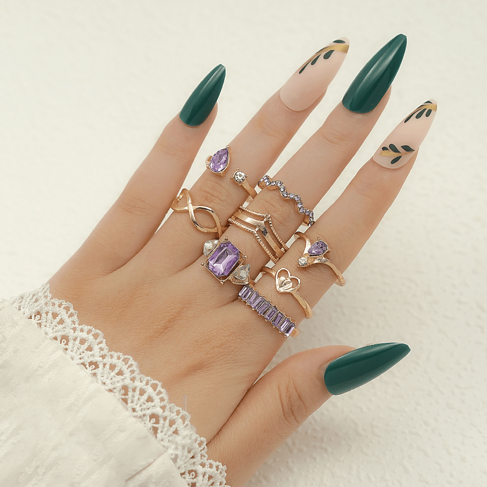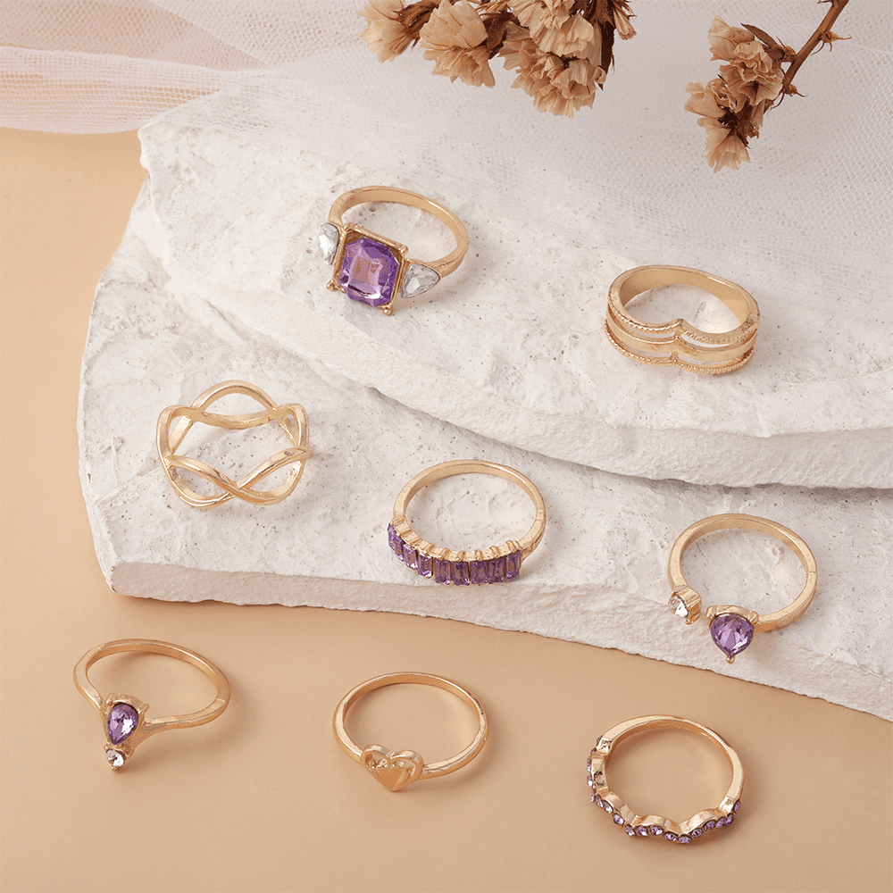 New Gold Ring, Fashionable Love Cross Point Diamond 8-piece Set Ring Jewelry
