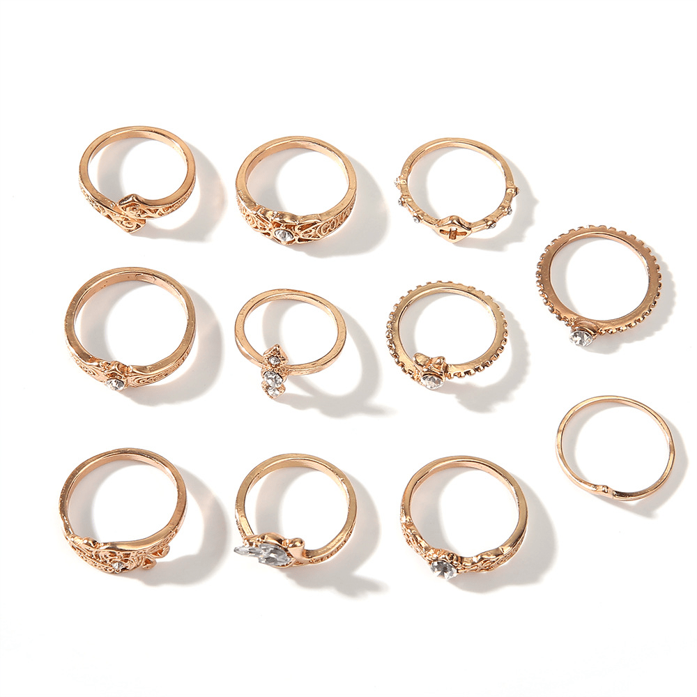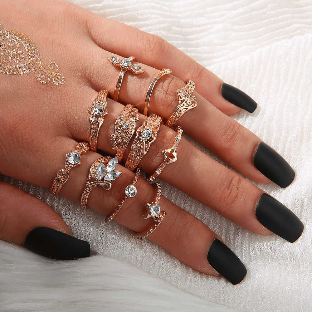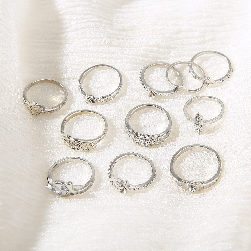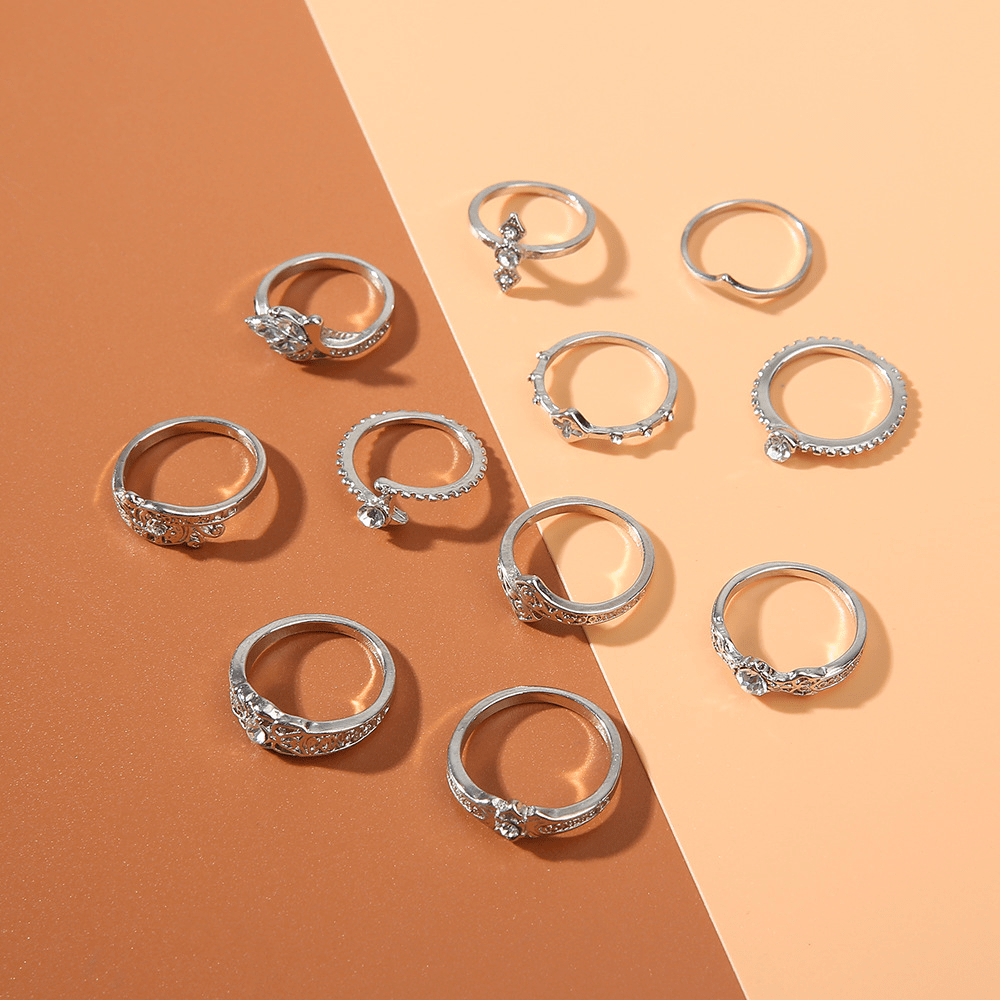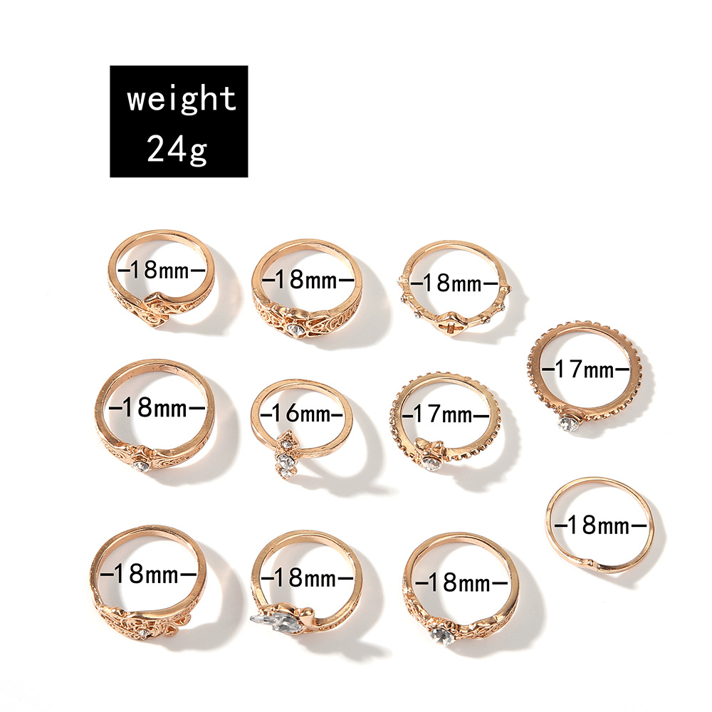 New Hip-hop Personality Joint Ring Rose Flower Diamond Wave Snake Ring Ring 11 Piece Set Ring