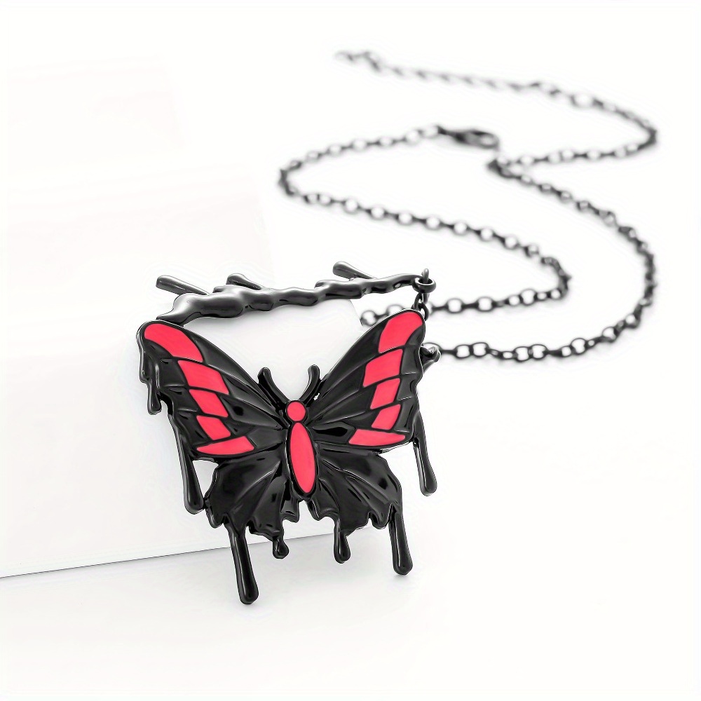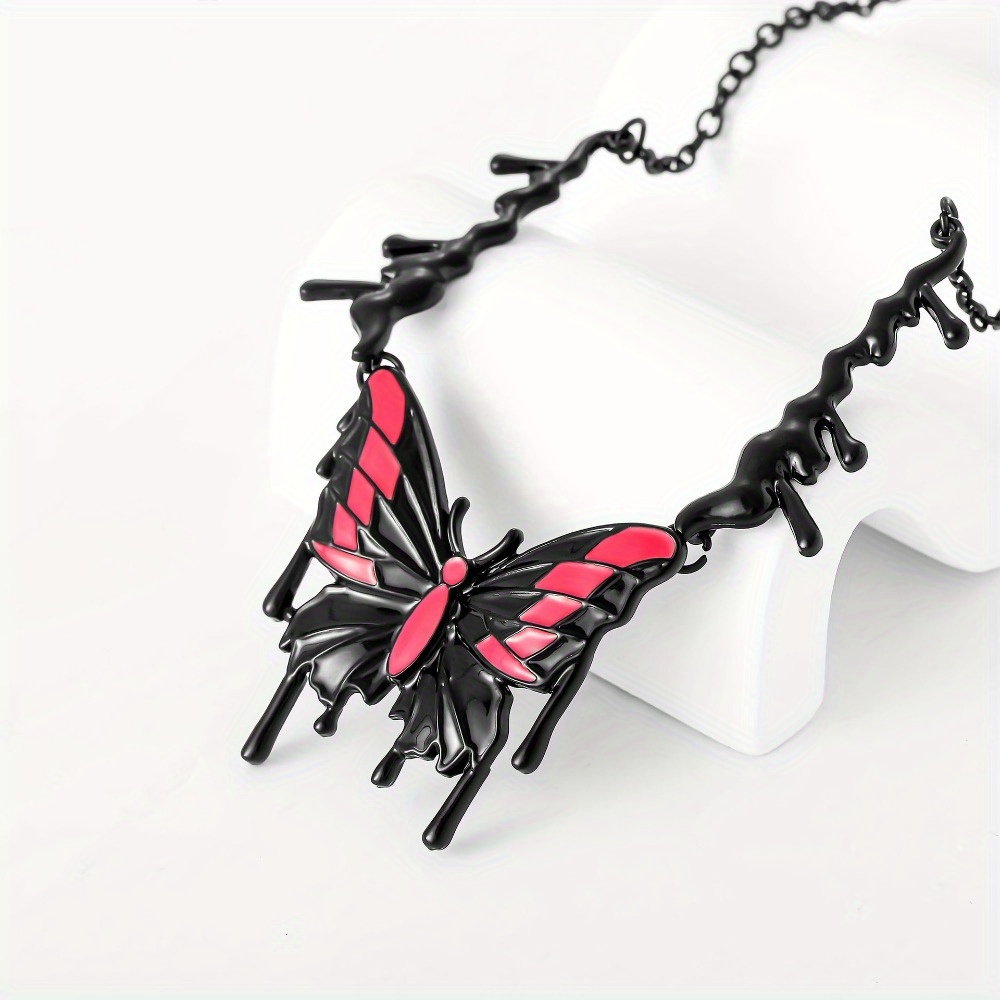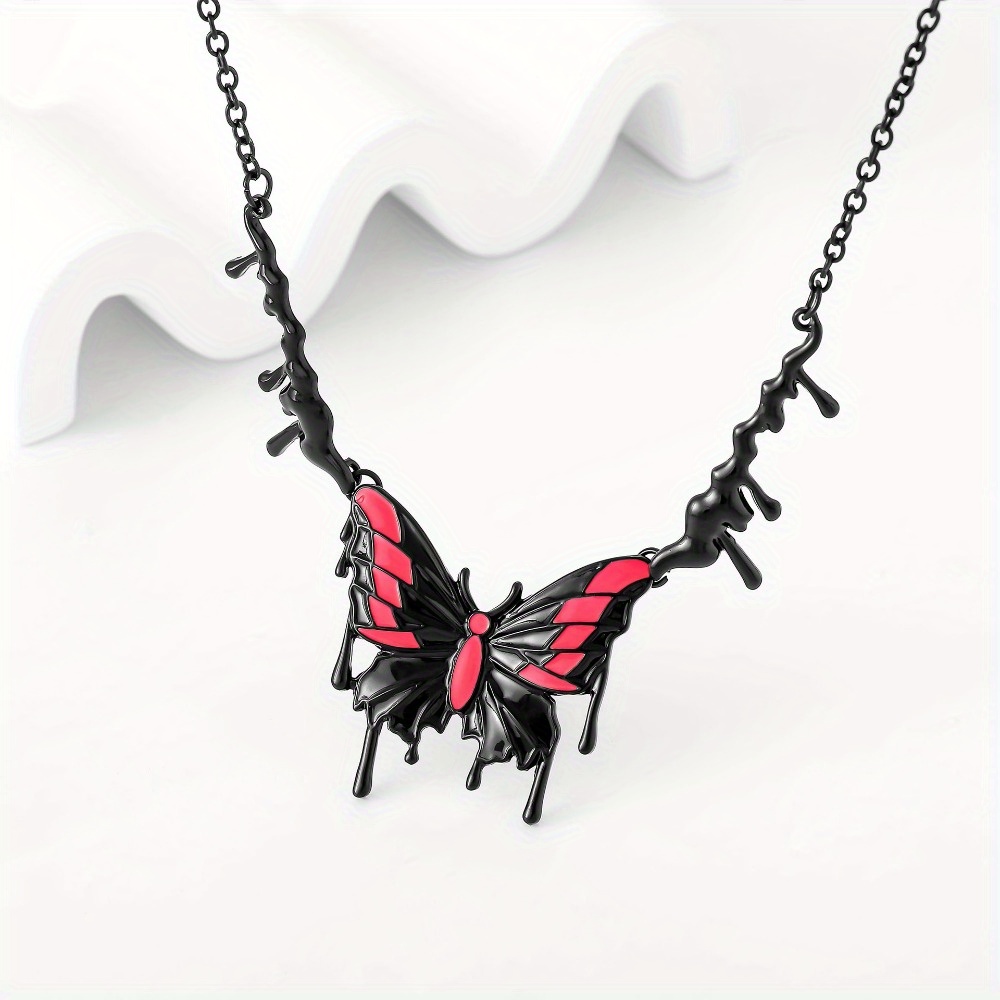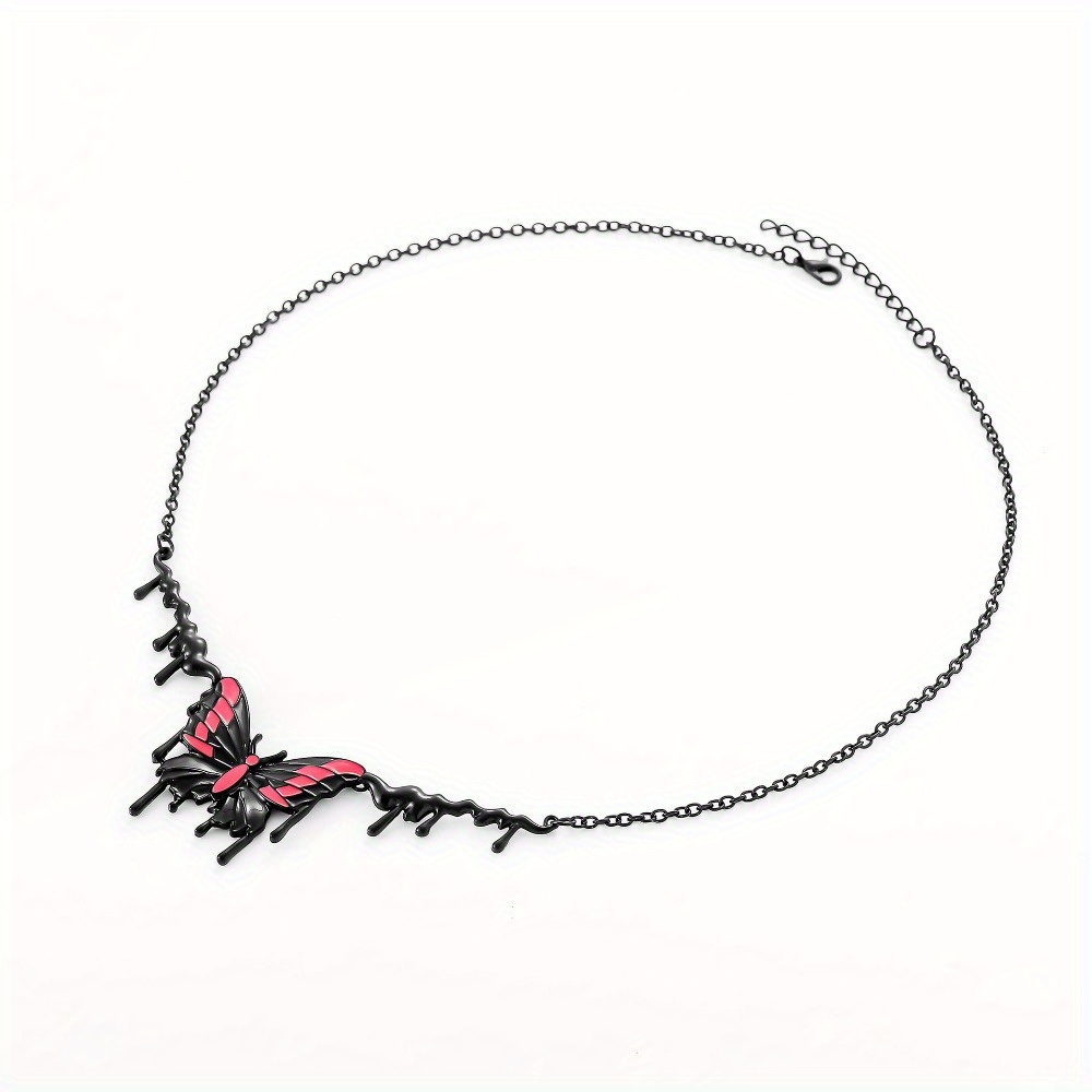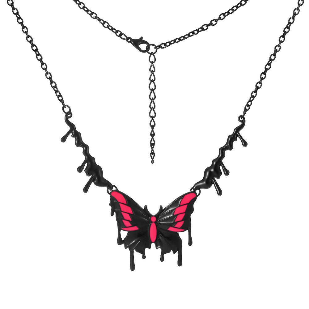 New necklace, personalized sexy electrophoresis, black dripping oil powder, butterfly pendant, collarbone chain, foreign trade necklace, women