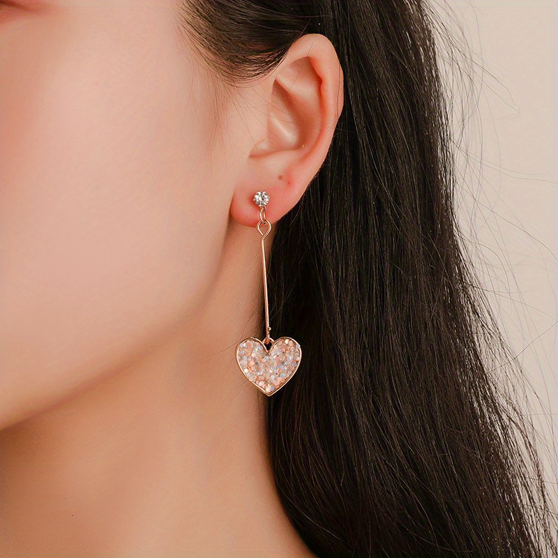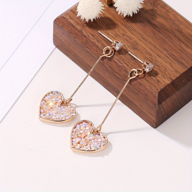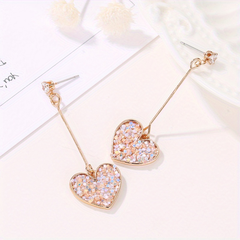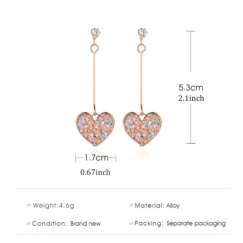 New pendant heart earrings, sparkling colorful love pendant, extra long fringed earrings, suitable for girls, ideal for gift giving