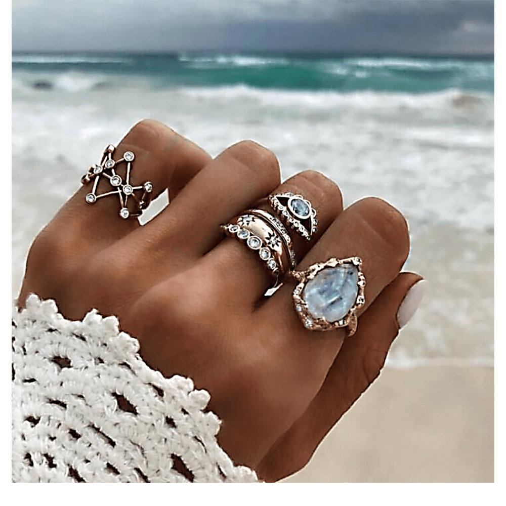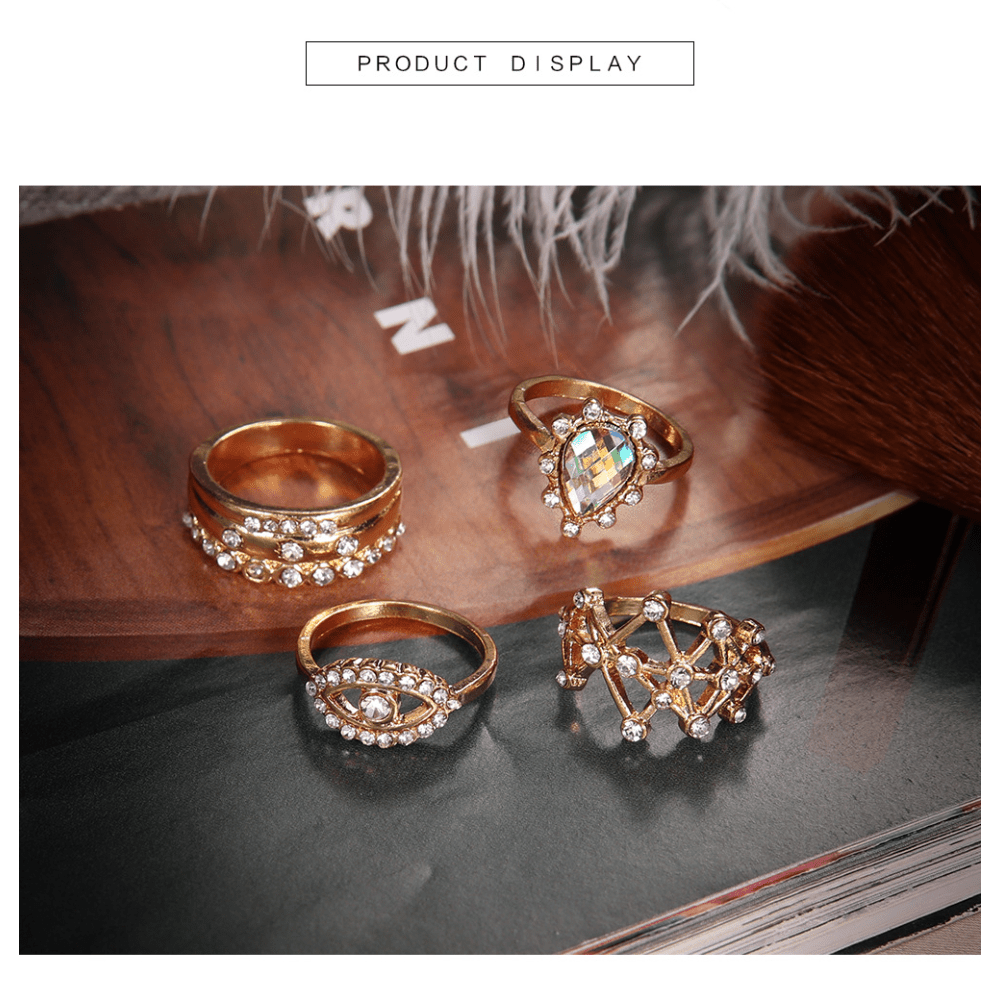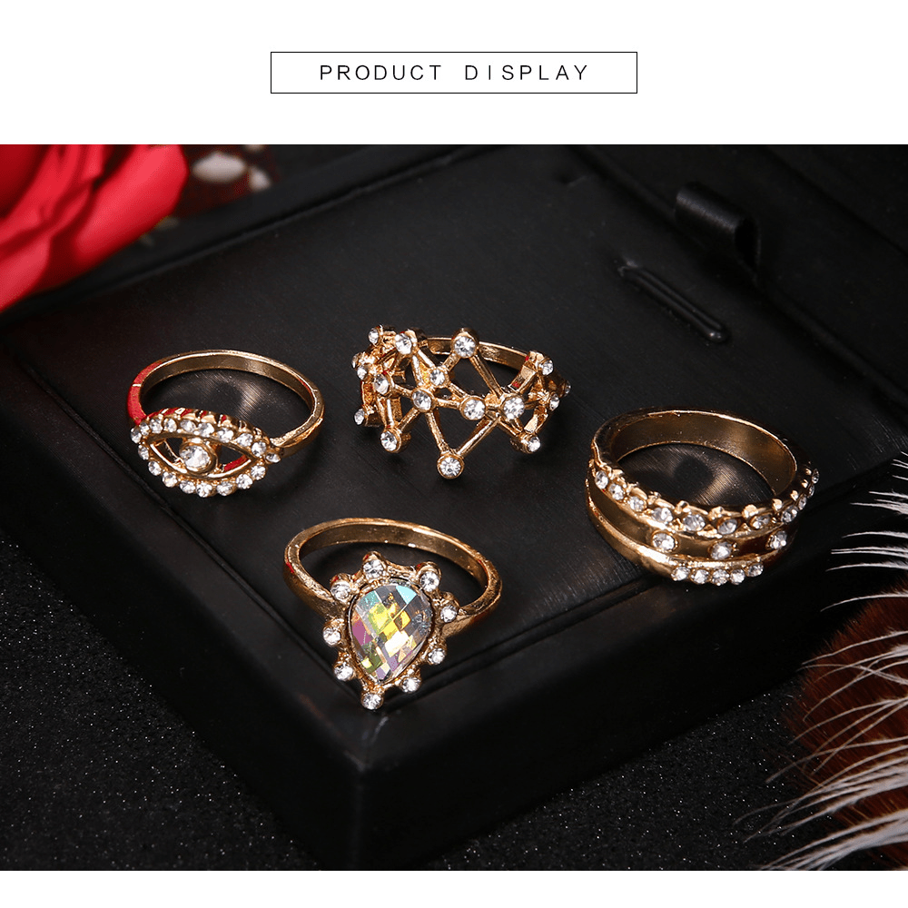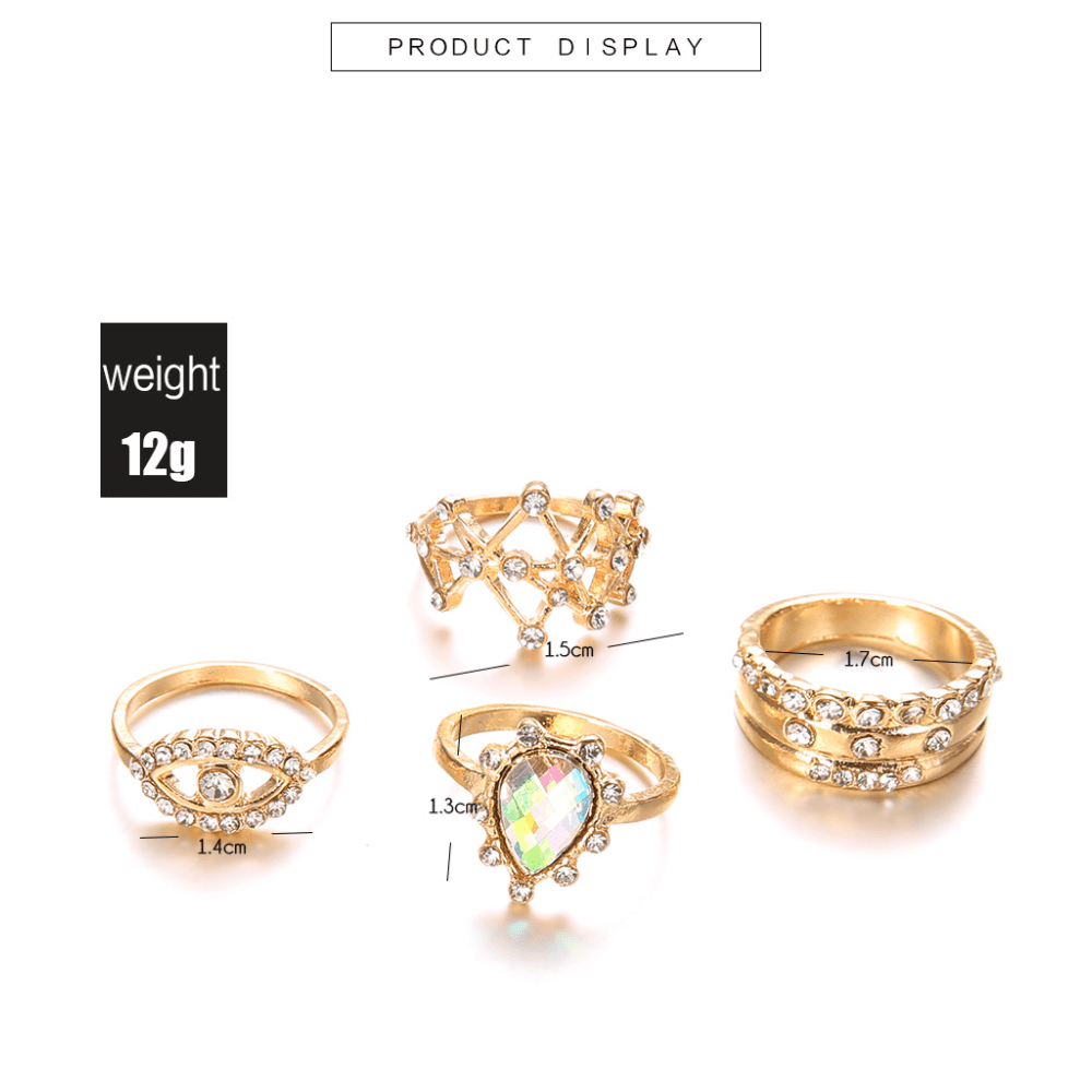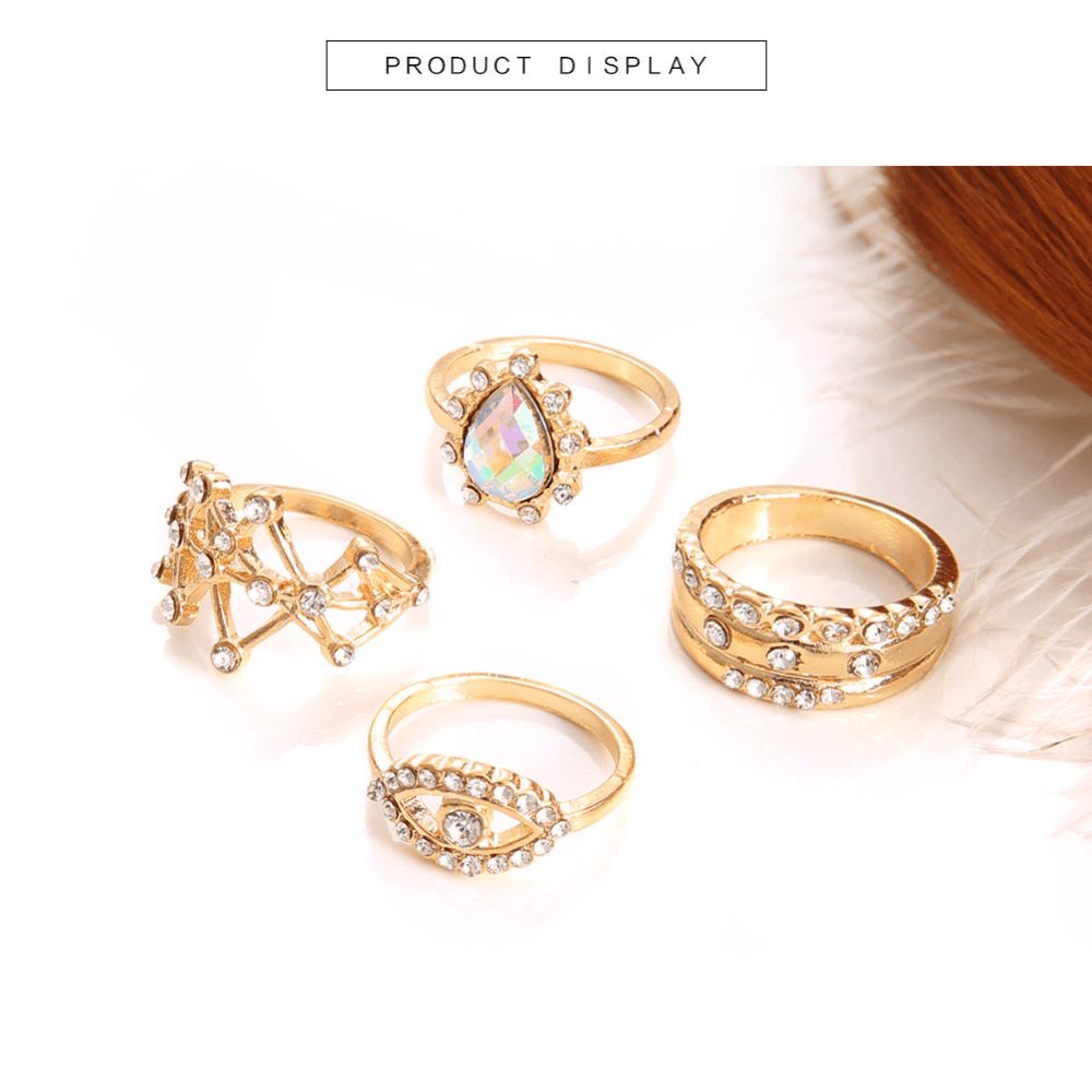 New Personalized Fashion Gold Devil's Eye Star Water Drop Ring 4-piece Set Women's Ring