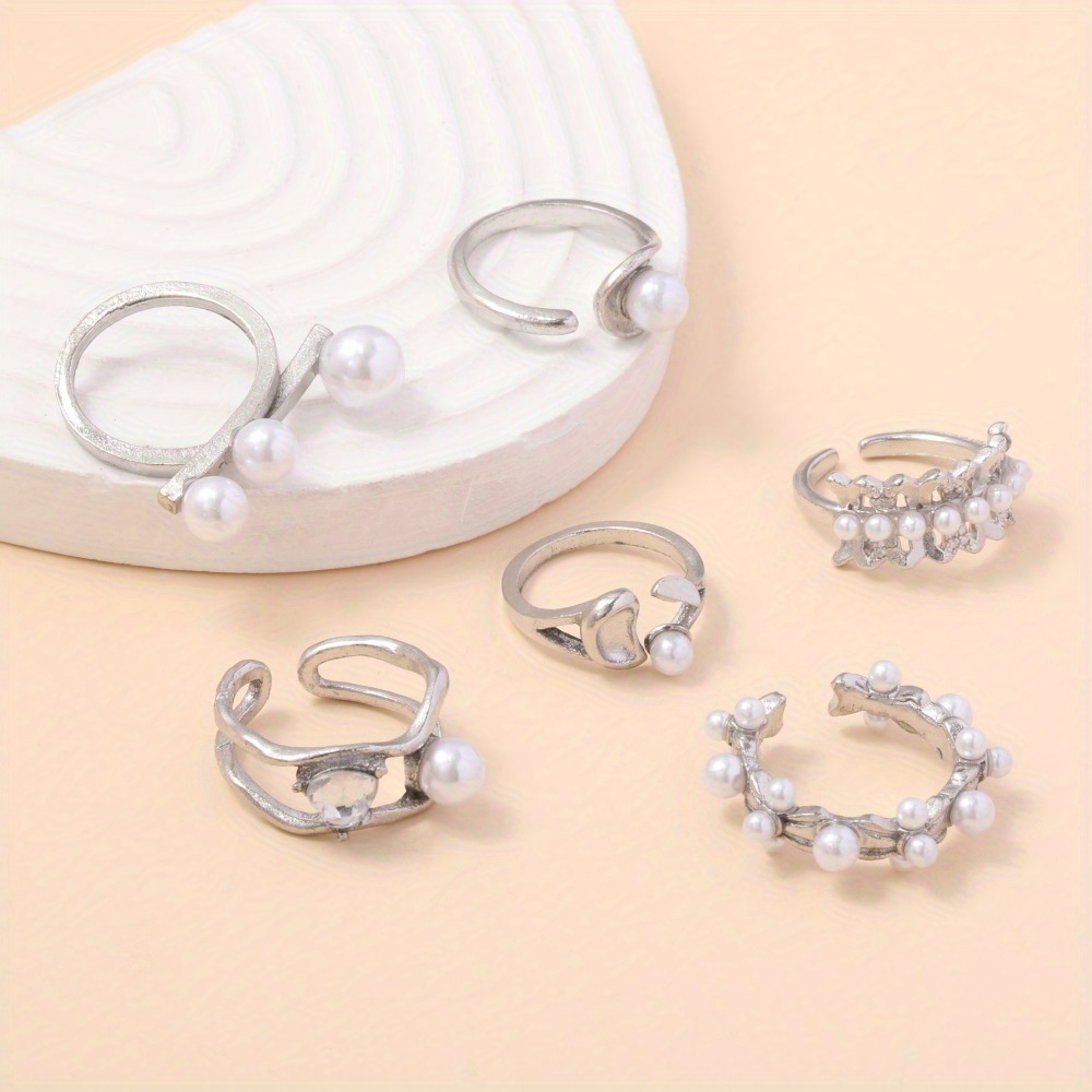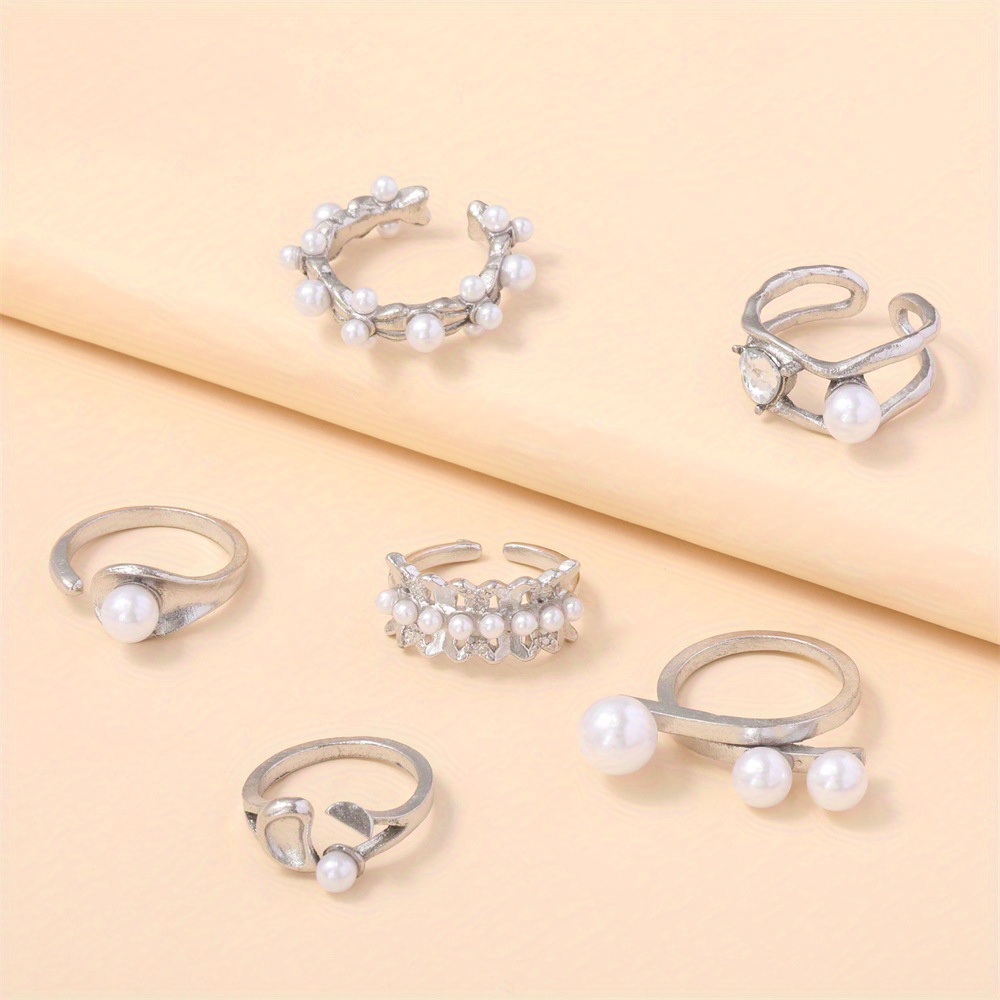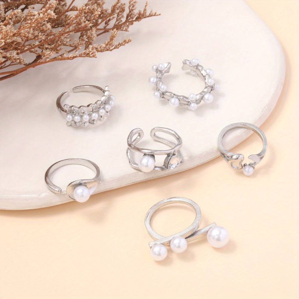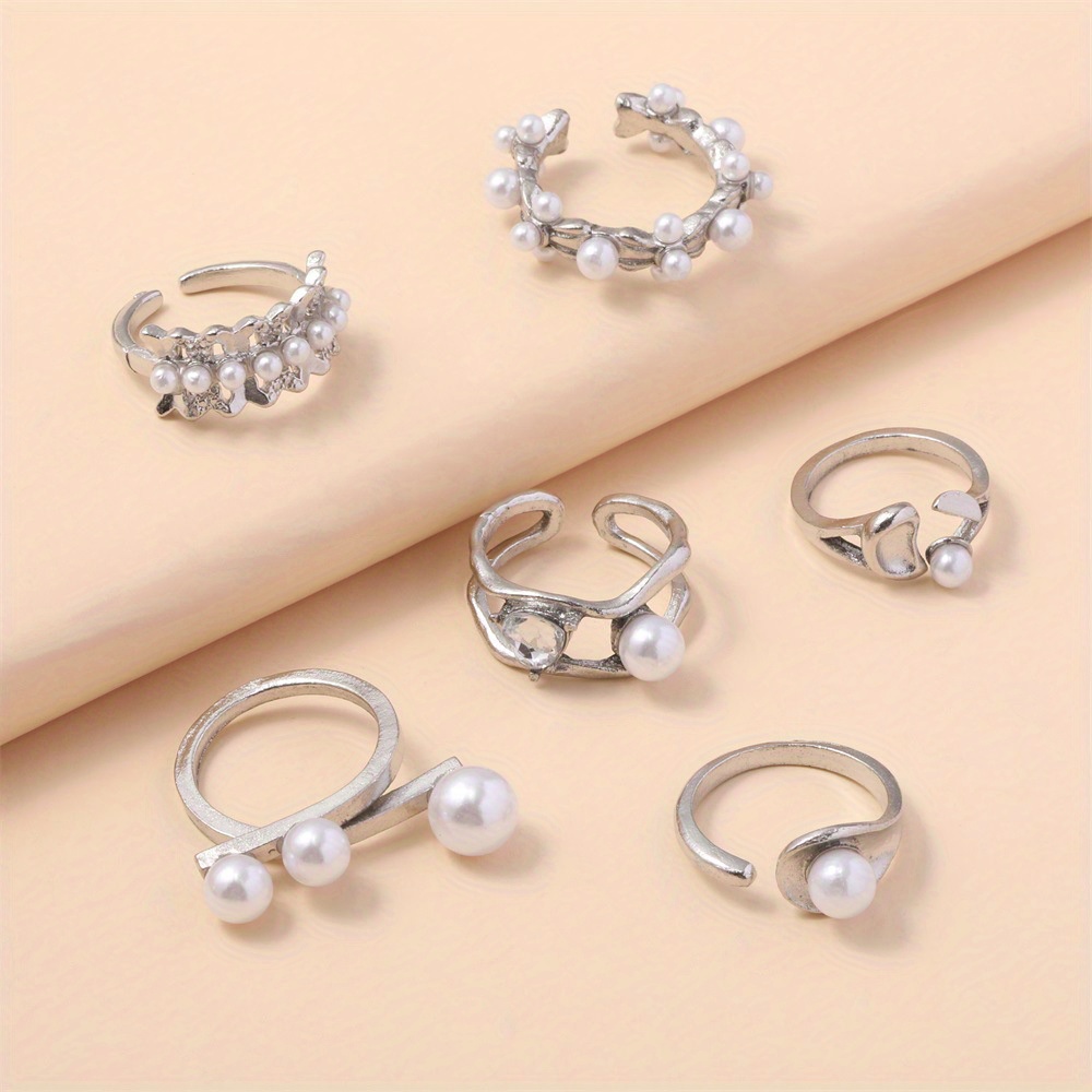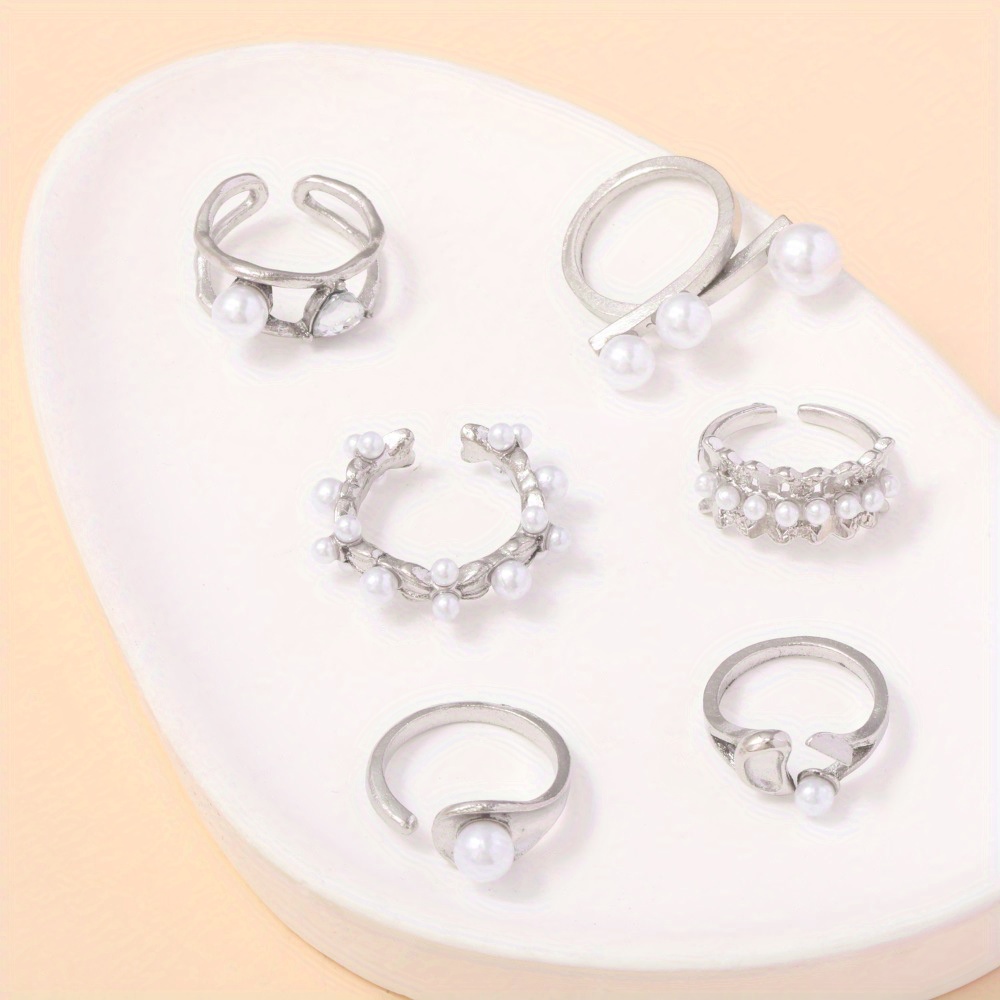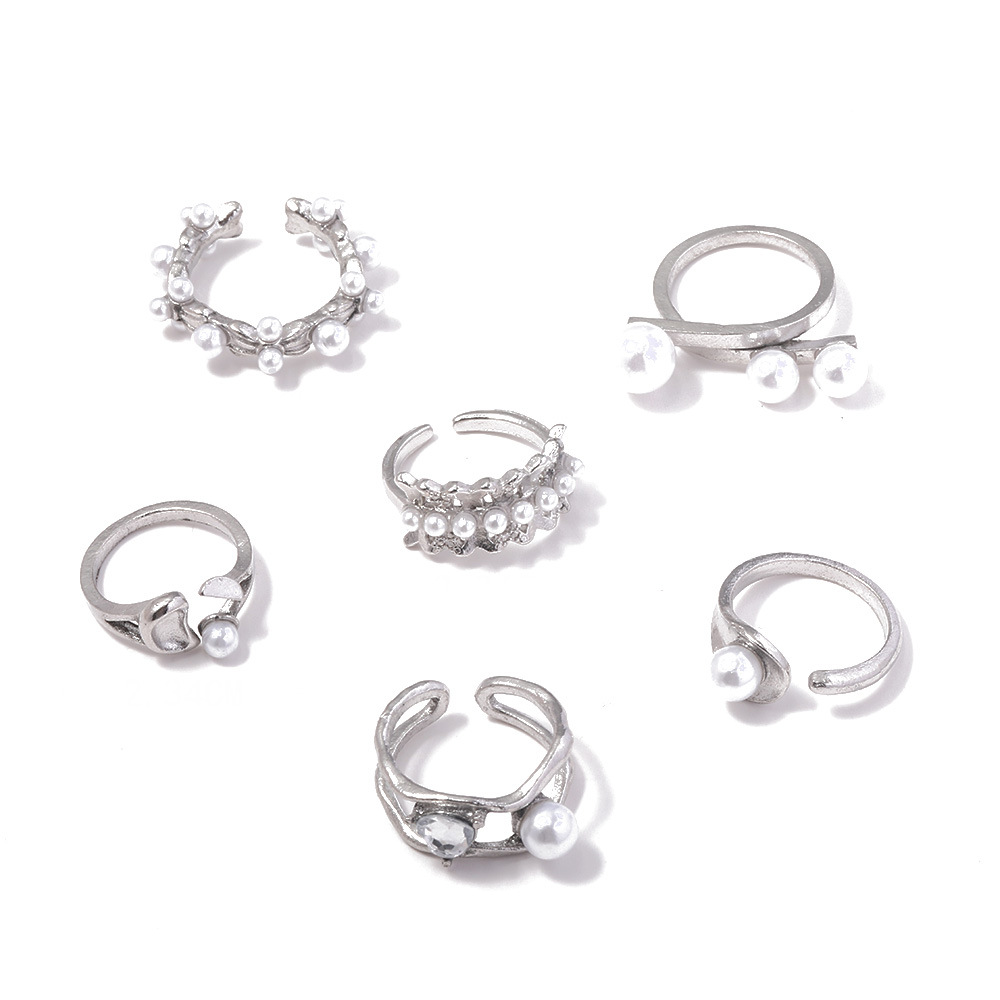 New Personalized Ring, Fashionable Pearl Opening 6-piece Set Alloy Ring.
