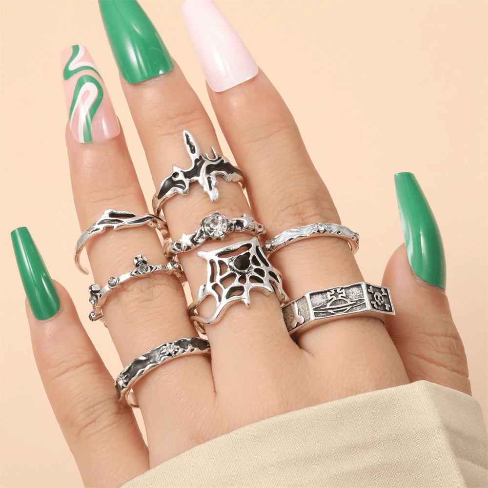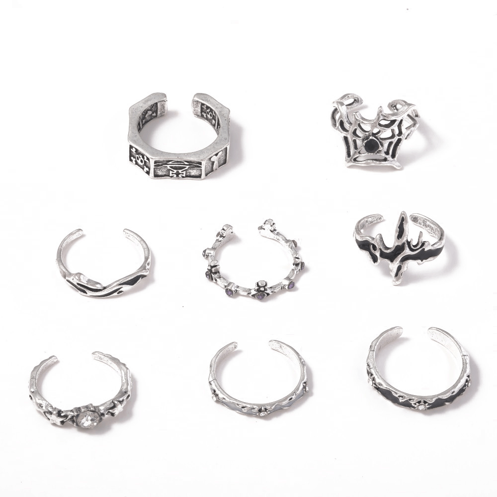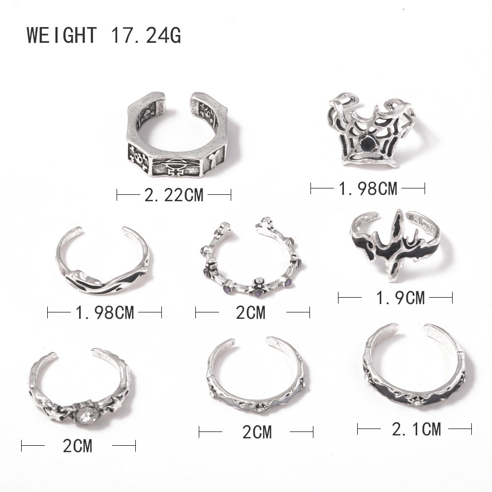New Retro Ring, Personalized Oil Drip Point Diamond Skull Spider Web Opening 8-piece Set Ring Jewelry