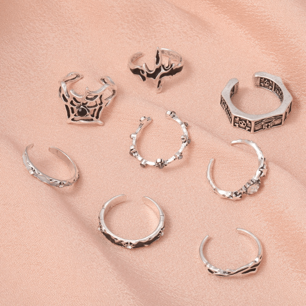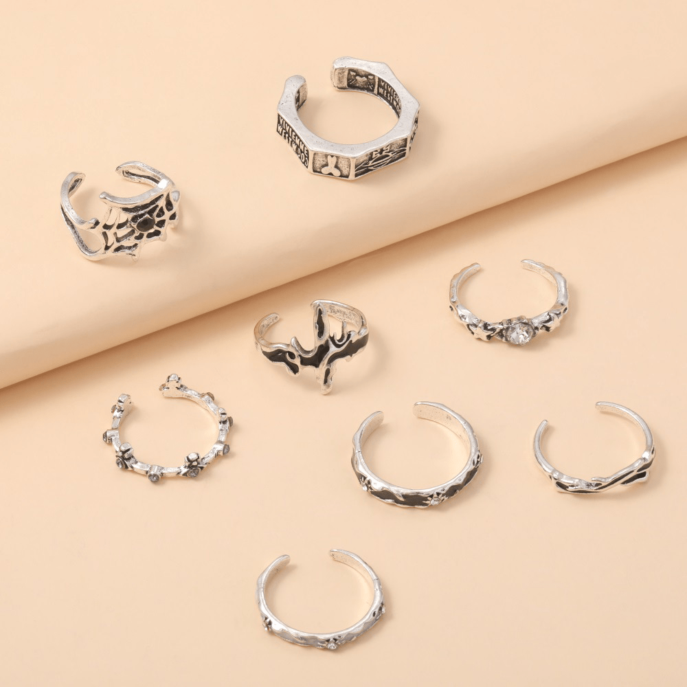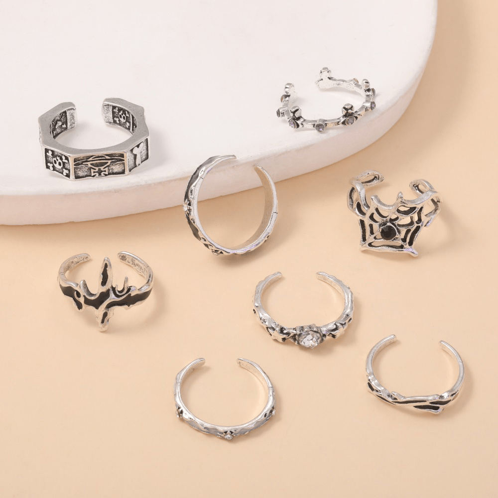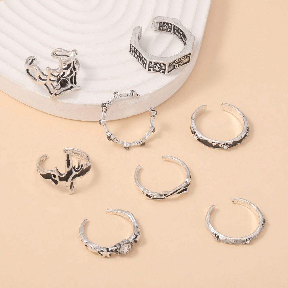 New Retro Ring, Personalized Oil Drip Point Diamond Skull Spider Web Opening 8-piece Set Ring Jewelry