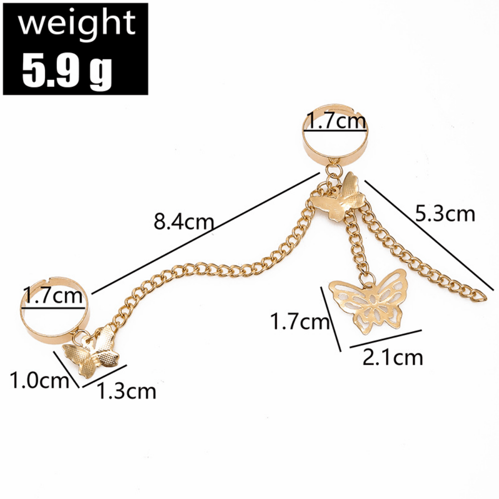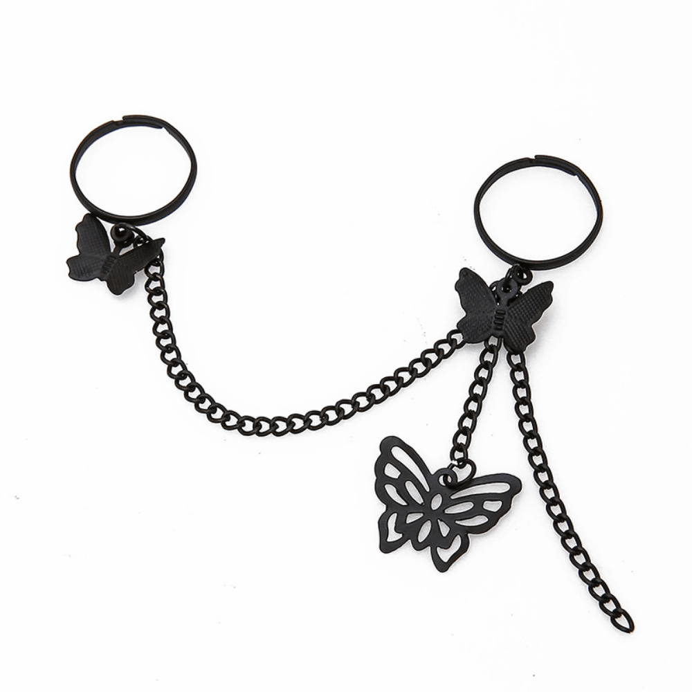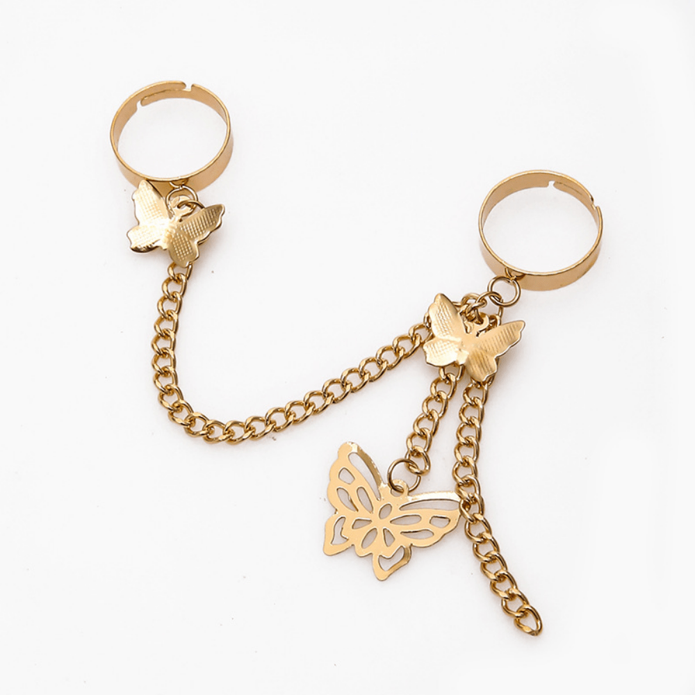 New Tassel with Finger Plain Ring Butterfly Pendant Chain Opening Adjustable Ring Women