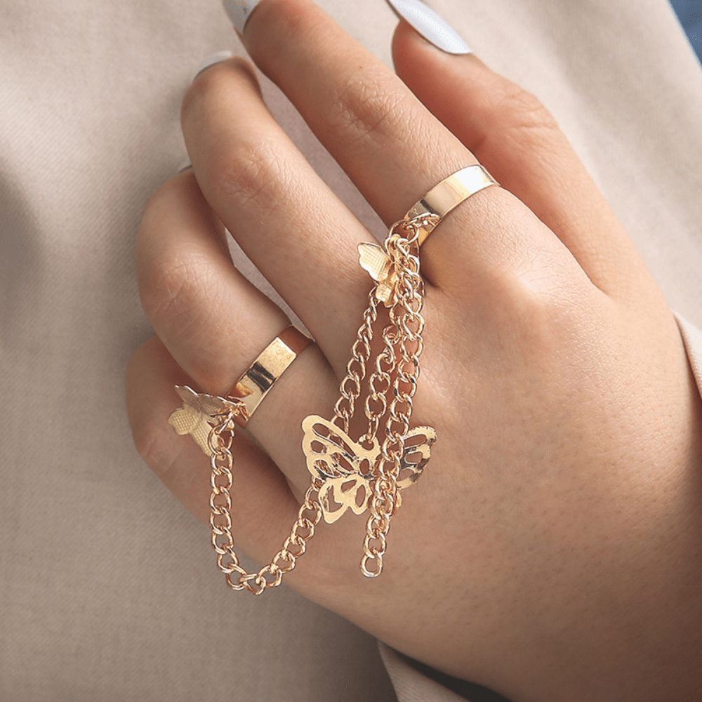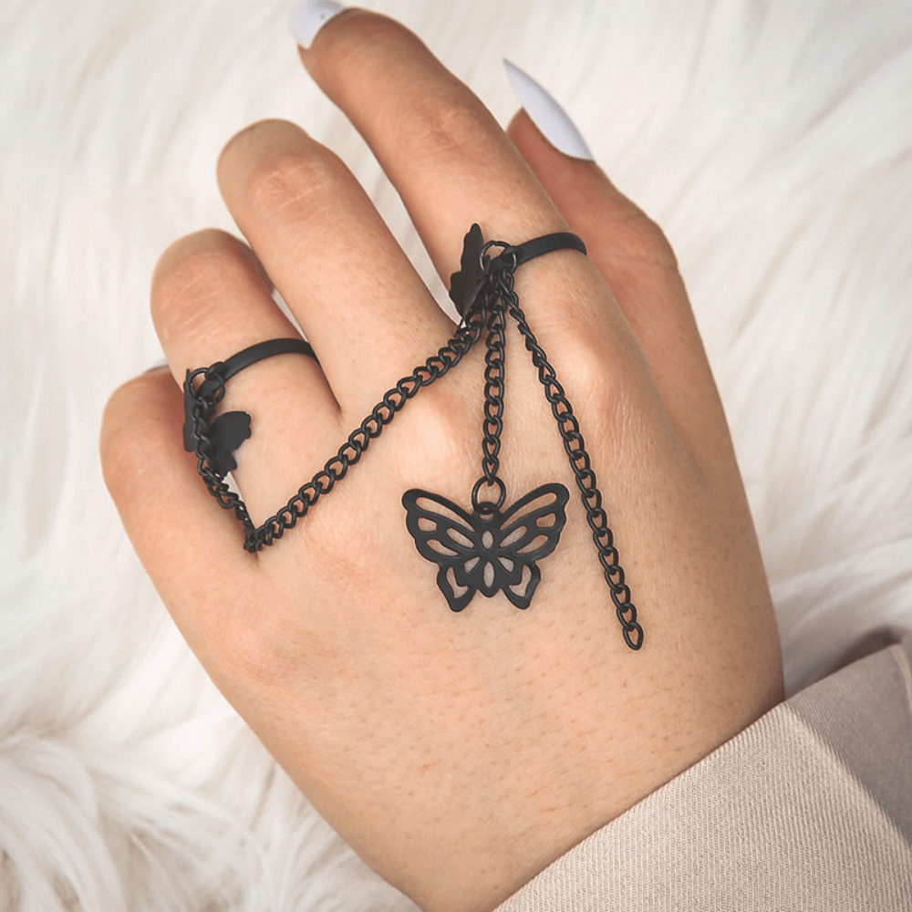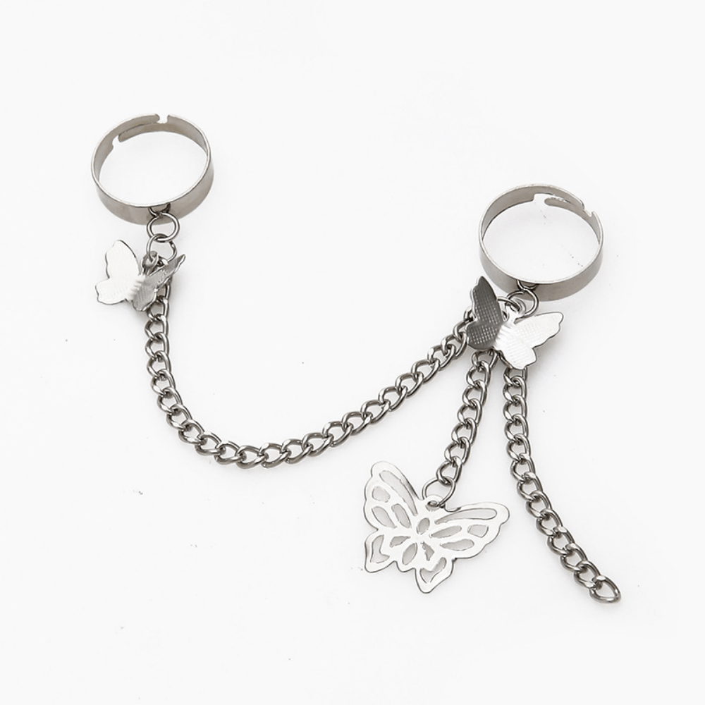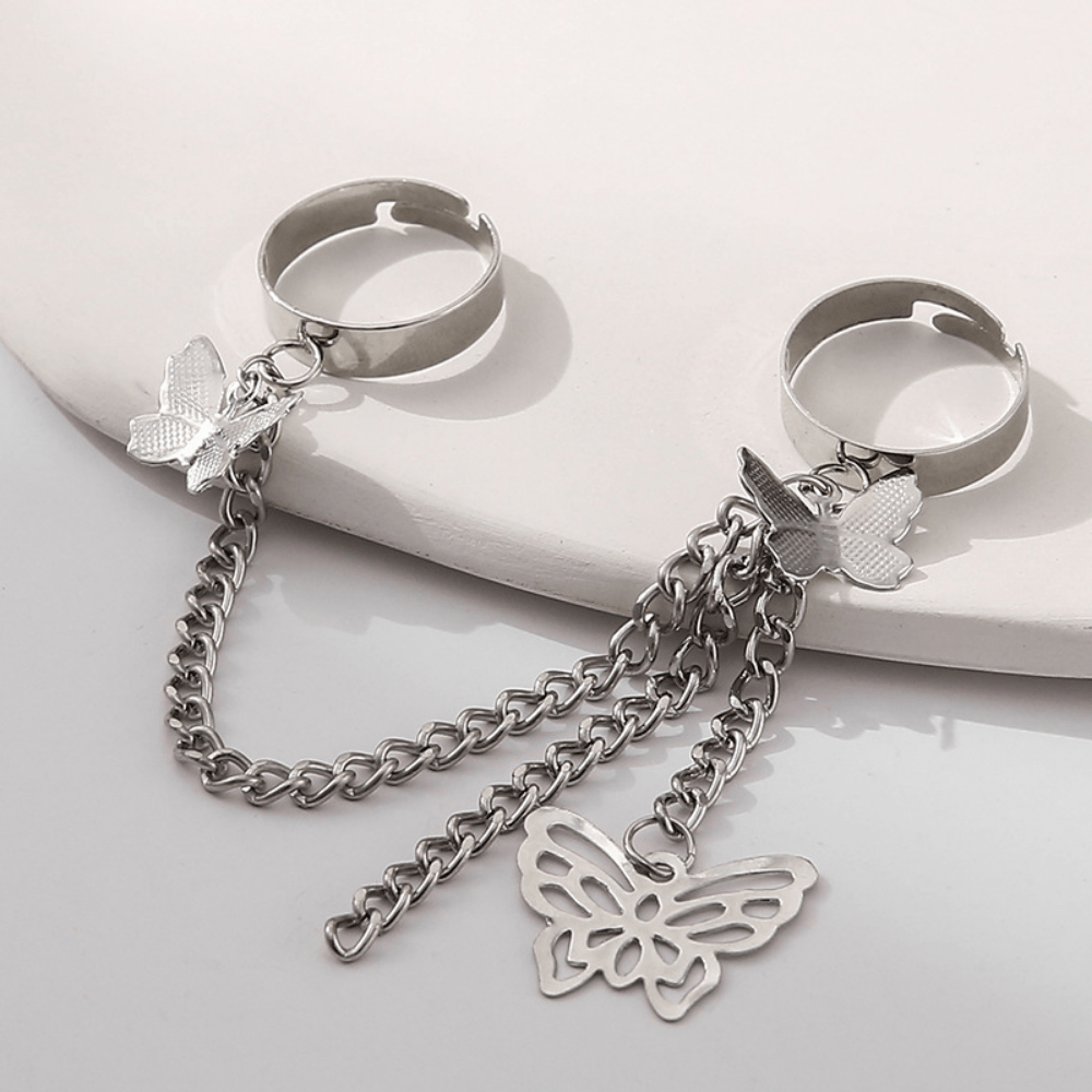 New Tassel with Finger Plain Ring Butterfly Pendant Chain Opening Adjustable Ring Women