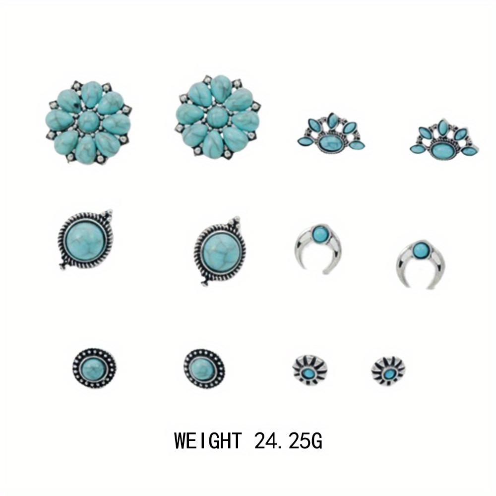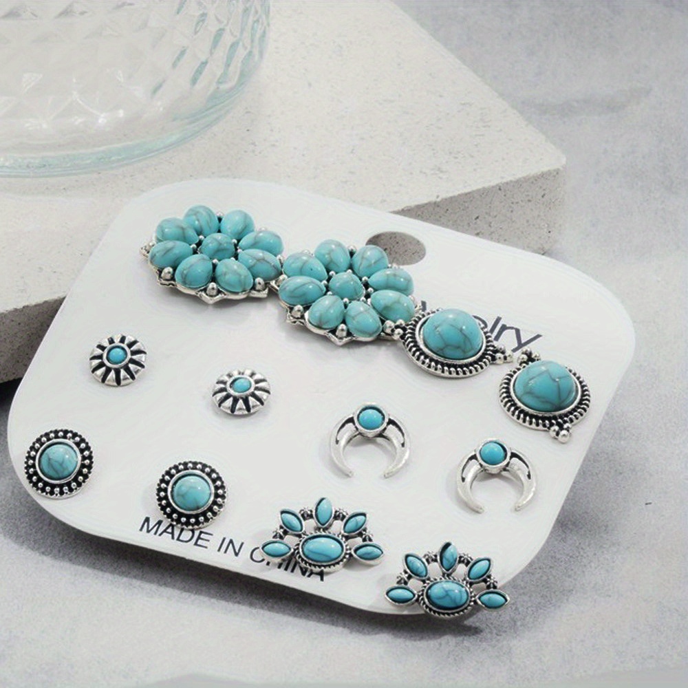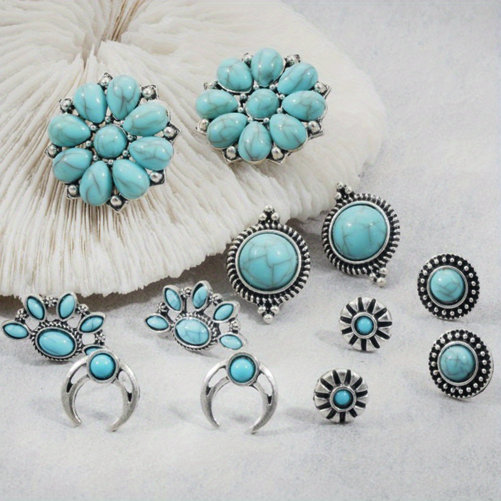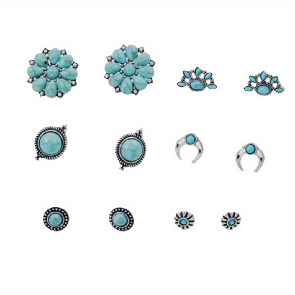 New, Vintage Bohemian Turquoise Floral Geometric Round Earrings 6 Pairs Suit Women