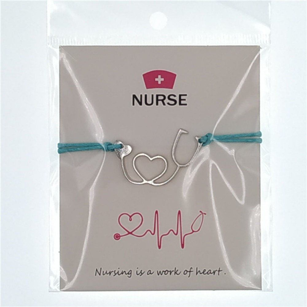 NURSE Card Bracelet, Stethoscope Pendant Doctor Nurse Wax Rope Wish Bracelet Customer Couple Bracelet