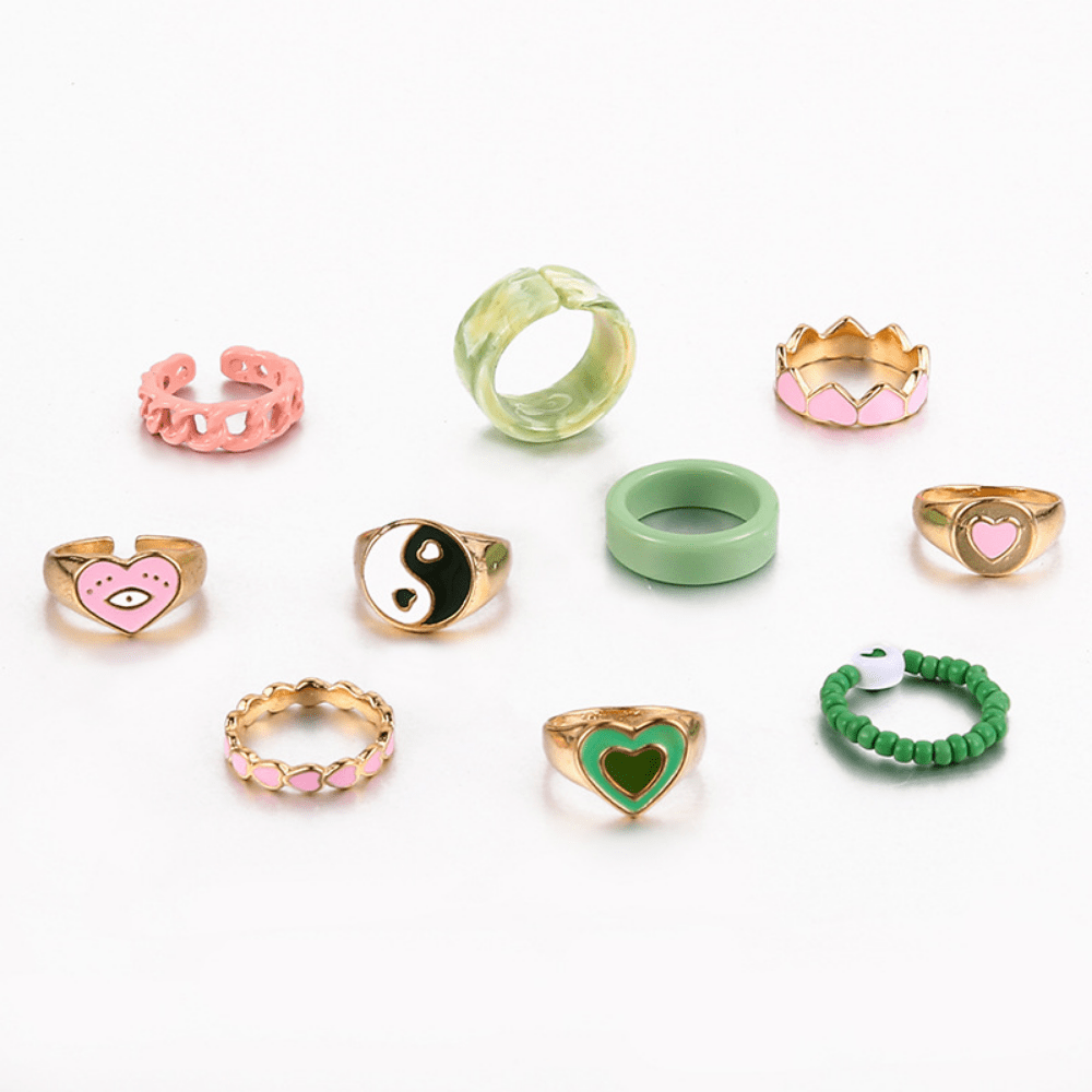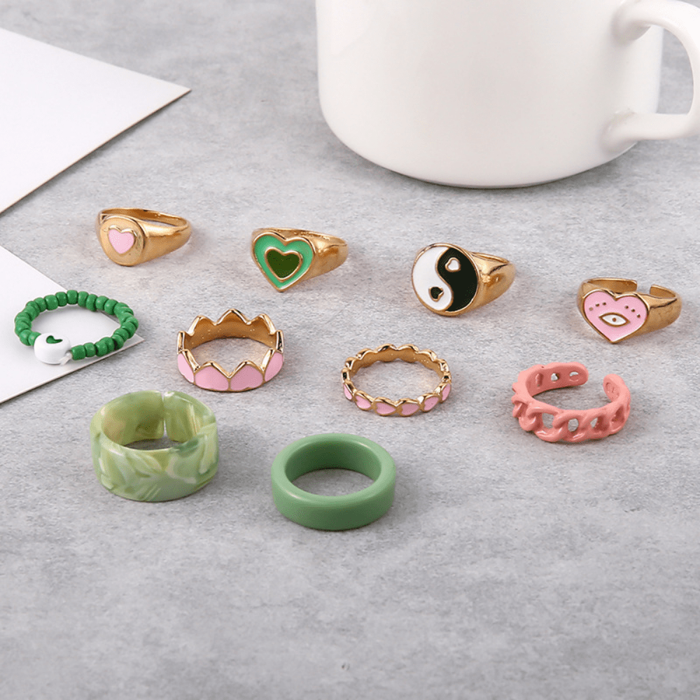 Oil Drop Ring Fashion Love Mixed Color Oil Drop Tai Chi Gossip Temperament Open Finger Ring