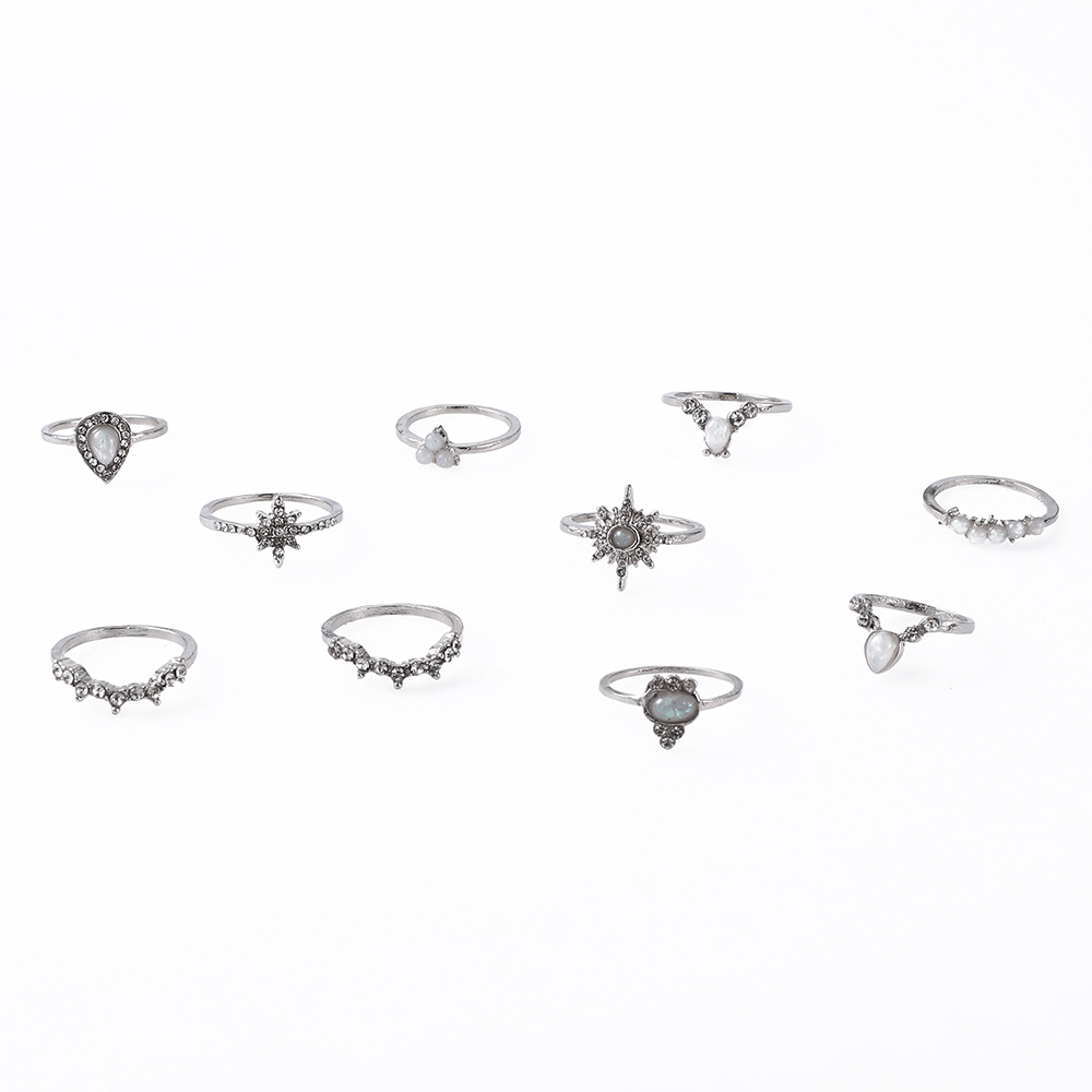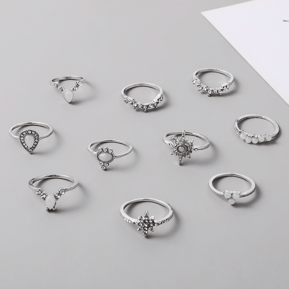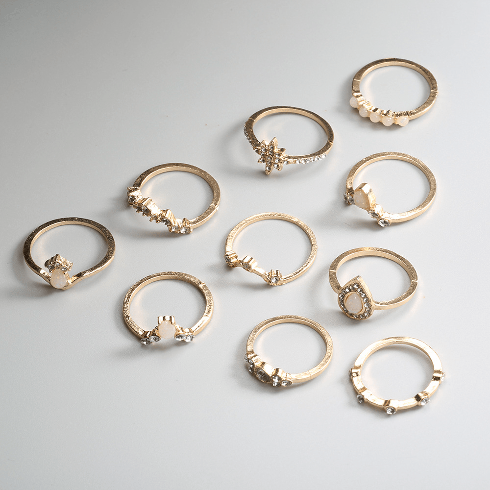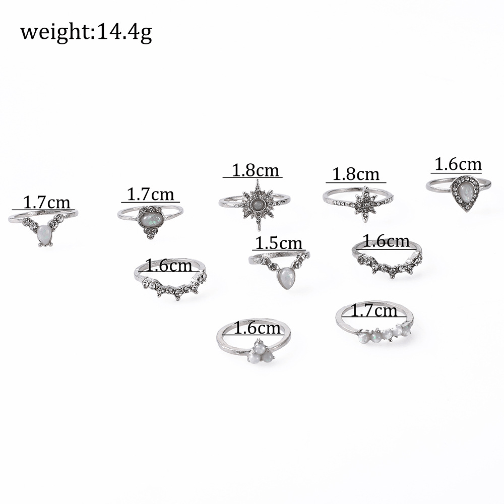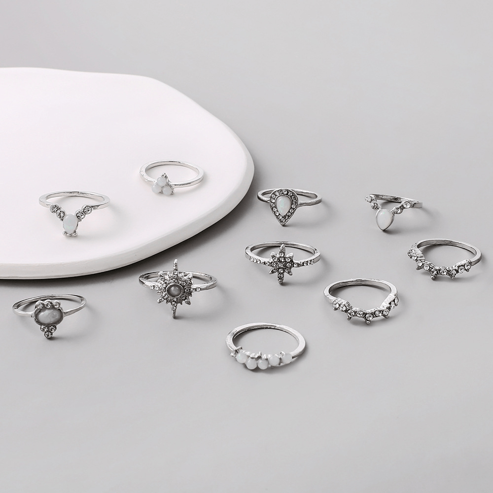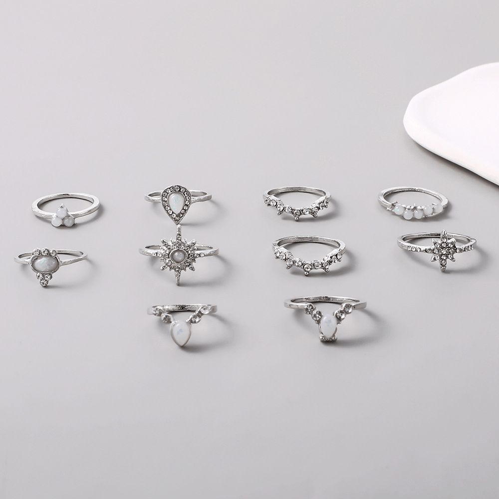 Opal Style Ring with Diamond Crown Combination Joint Ring 10 Pieces Set Ring