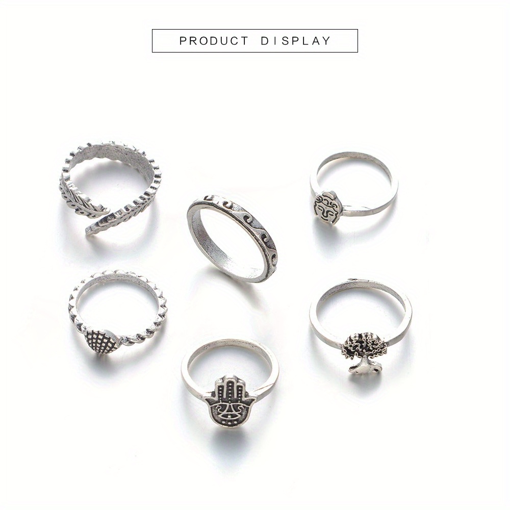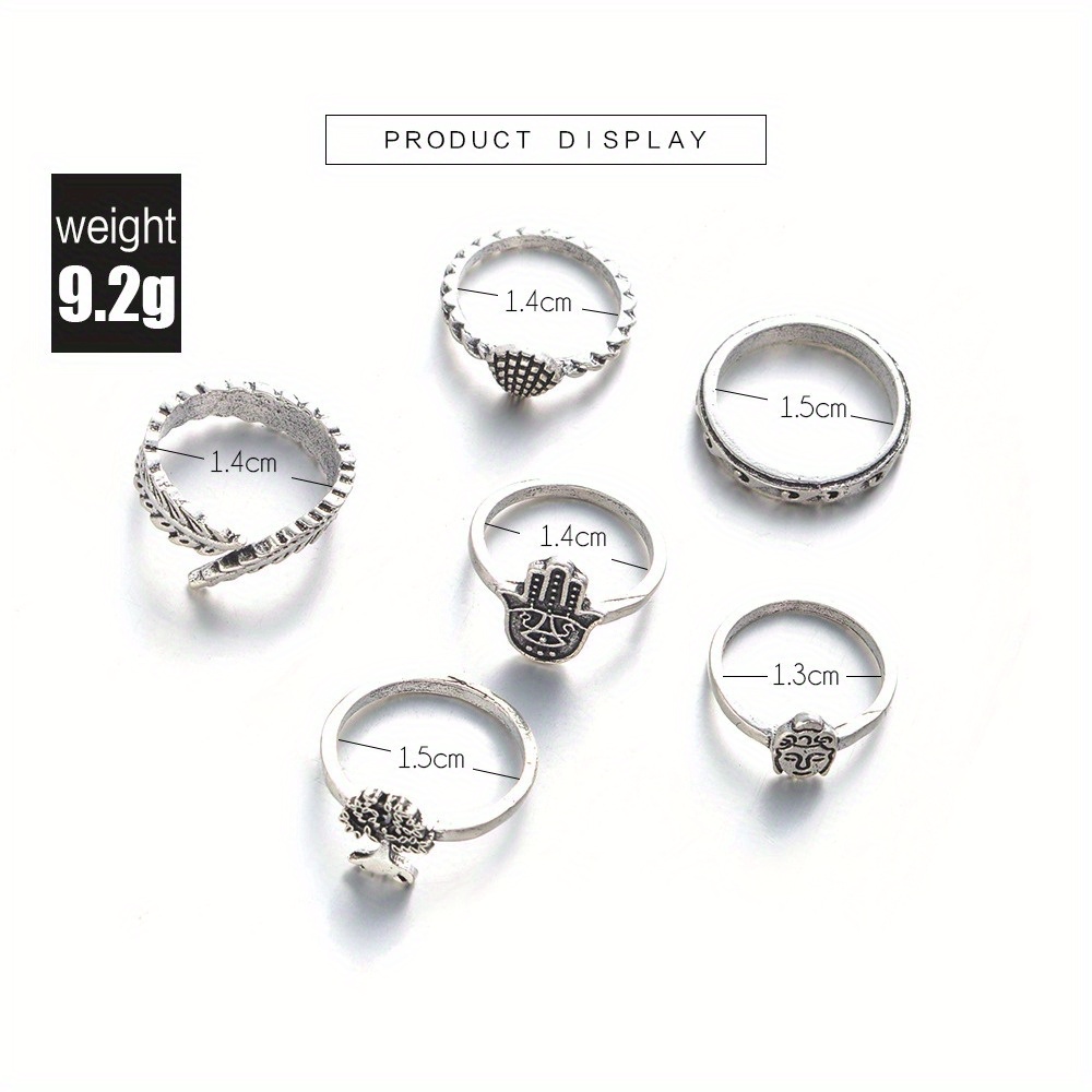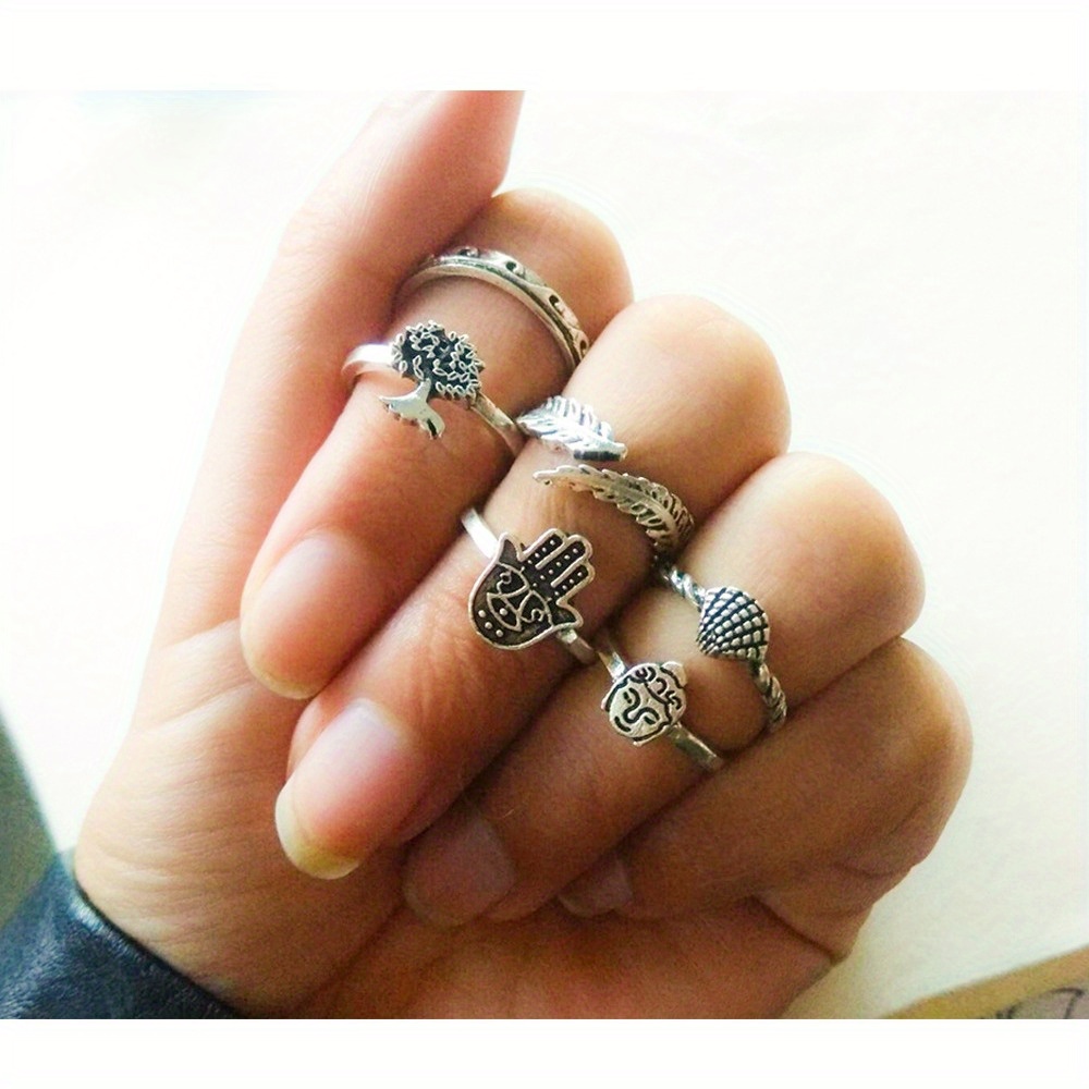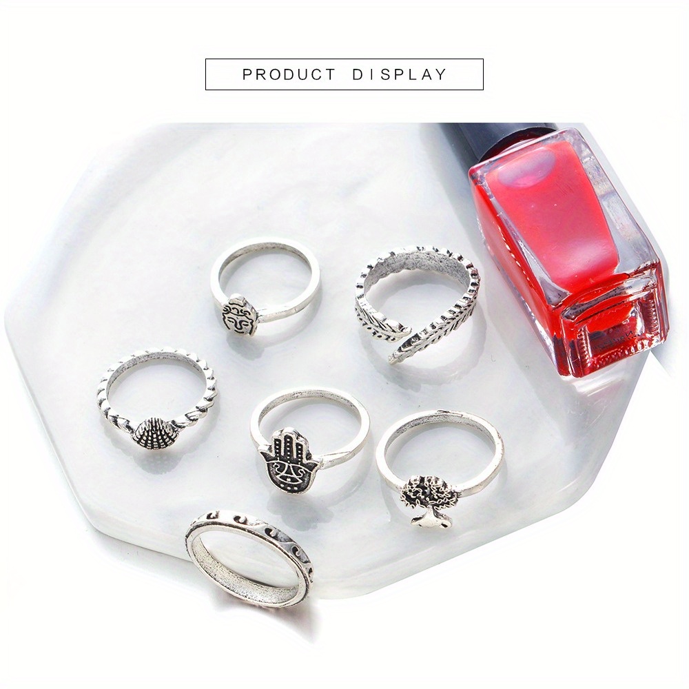 Palm 6-piece ring set, Buddha head scallop explosive ring