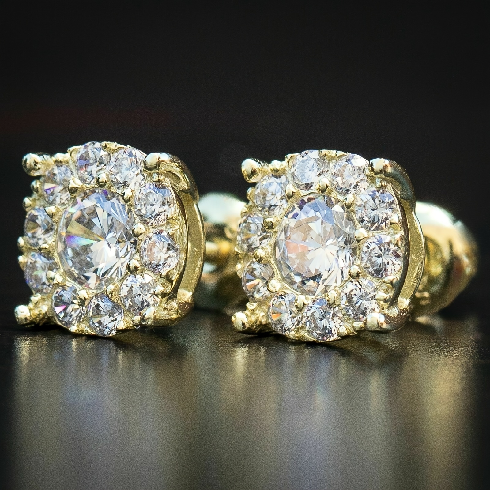 Party Ready, Elegant 18K Gold Plated Round Zirconia Earrings - Sparkling Halo Design, Nickel Free Copper for Casual Attire and Parties