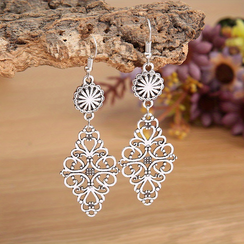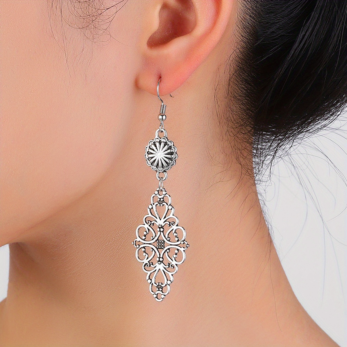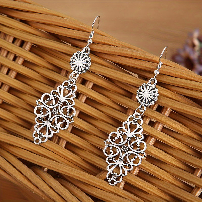 Pattern Hollow Totem Design Vintage Bohemian Pendant Earrings Zinc Alloy Silver Plated Jewelry Fashion Women's Gifts